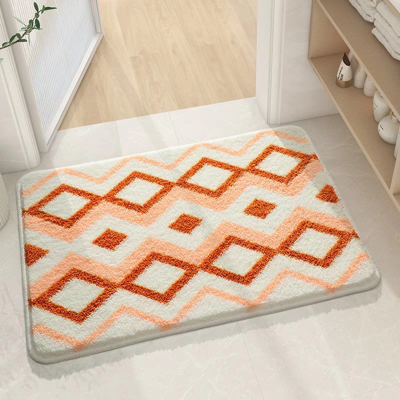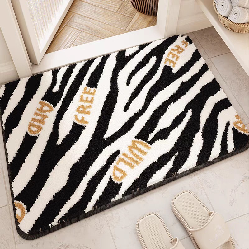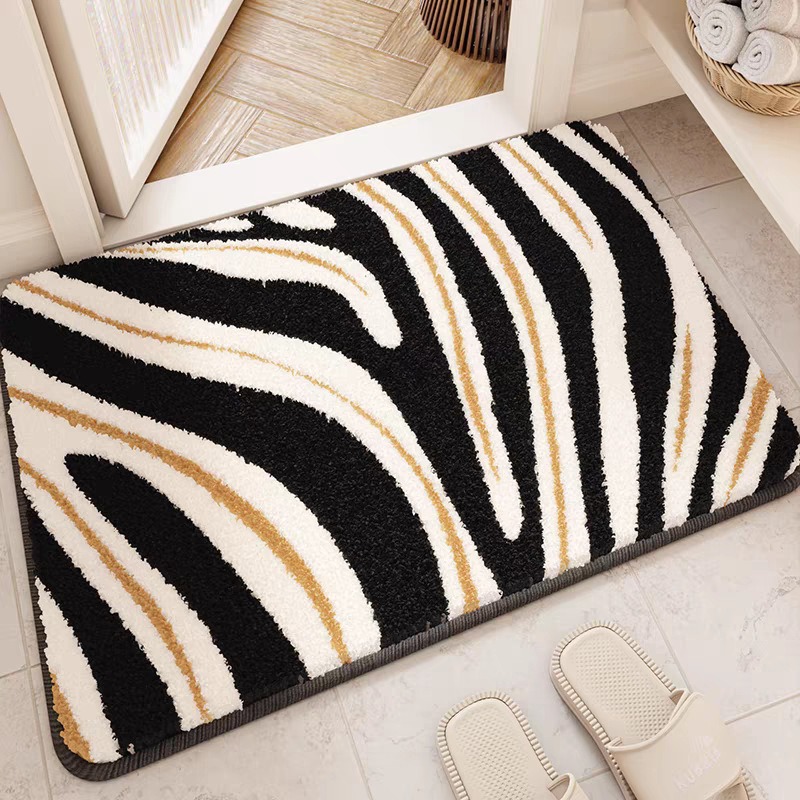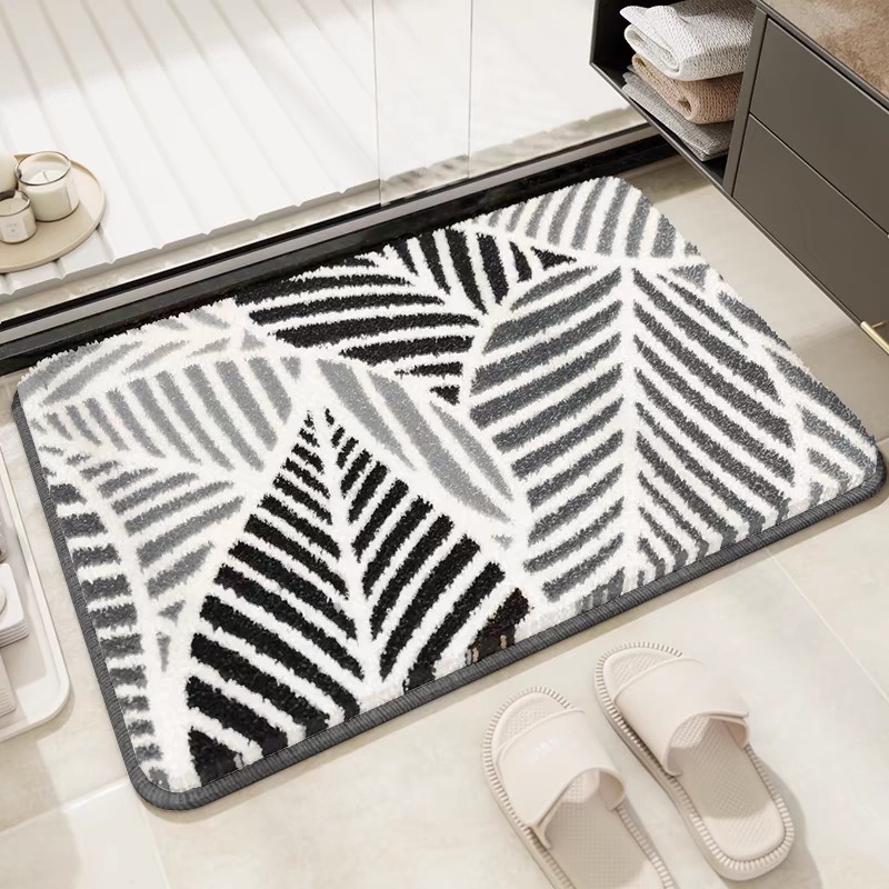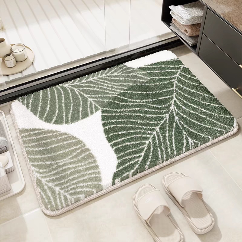 침실 및 화장실용 북유럽 스타일 모조 캐시미어 카펫, 얼룩 방지 및 관리가 쉬운 바닥 매트, 나뭇잎 줄무늬, 두껍고 내마모성 및 미끄럼 방지