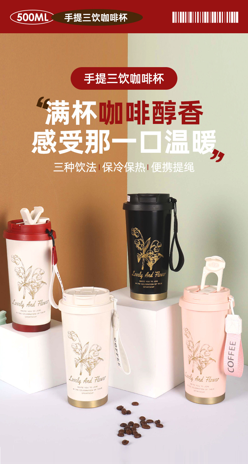 스즈키 난초 휴대용 3 음료 커피 컵 야외 높은 색상 가치 스테인레스 스틸 열 보존 차가운 컵 비즈니스 사무실 선물 컵