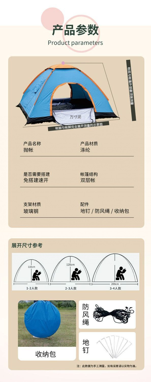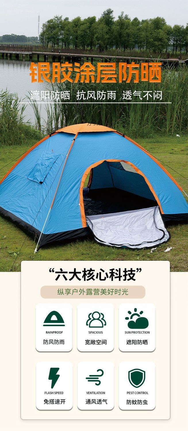 야외 여행 텐트 피크닉 휴대용 접이식 빠른 개방형 단일 두꺼운 어린이 야외 캠핑 텐트 이중 도어