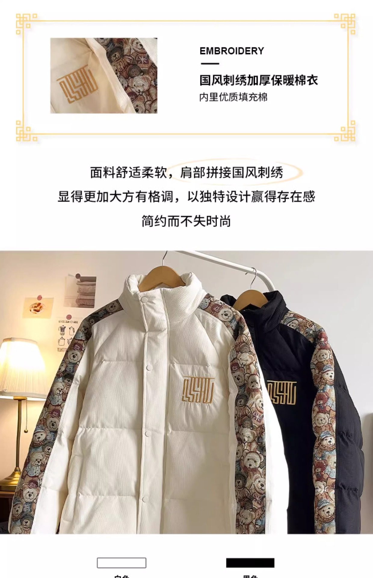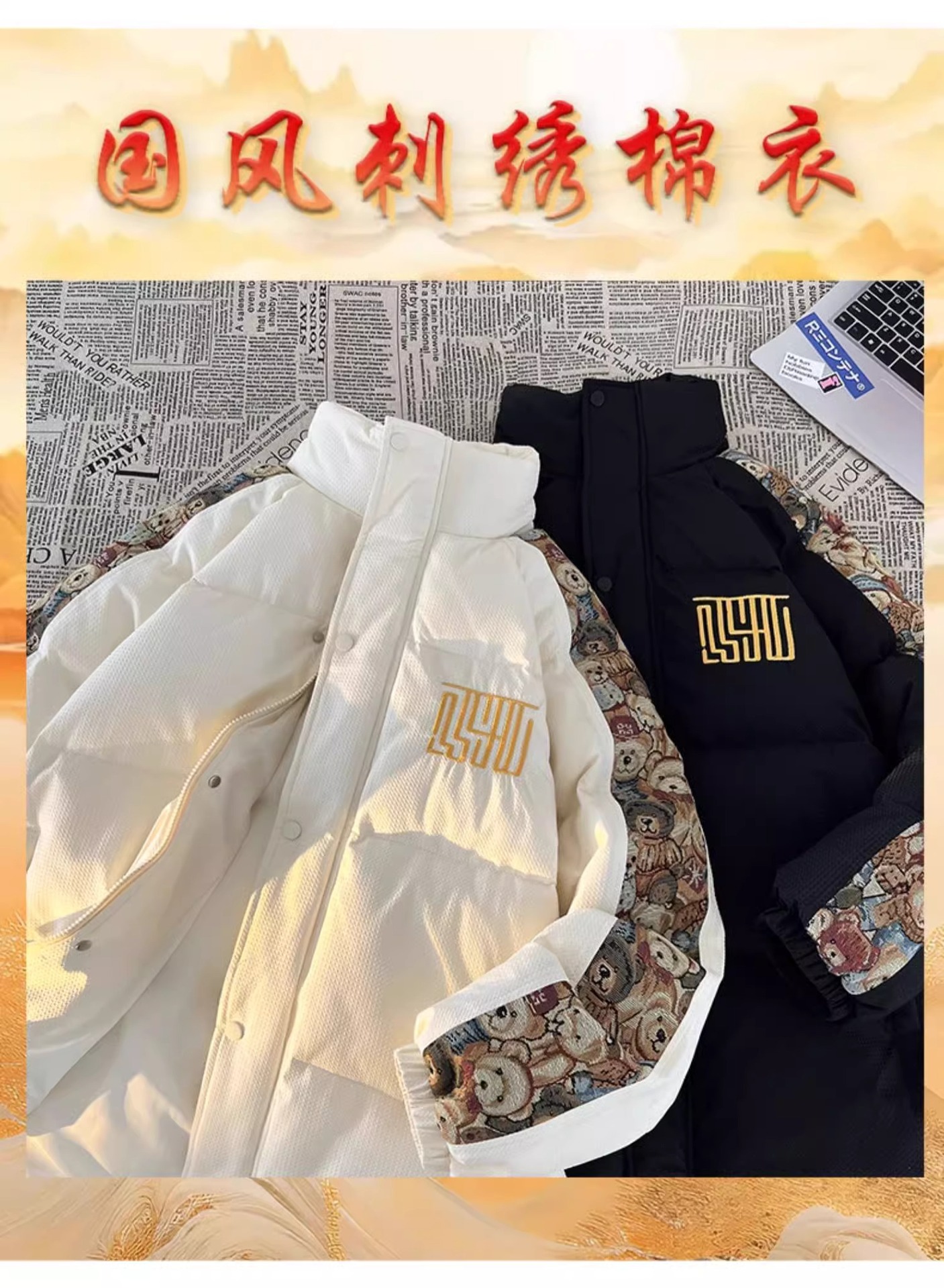 NASA Guofeng 자수 코튼 패딩 재킷 남자 겨울 두꺼운 코튼 패딩 재킷 아메리칸 스타일 패션 브랜드 플러스 사이즈 커플의 겨울 코튼 패딩 재킷스토어 가기