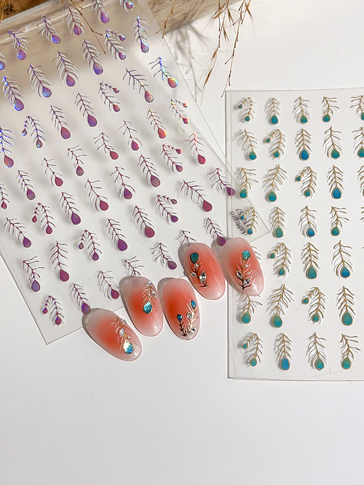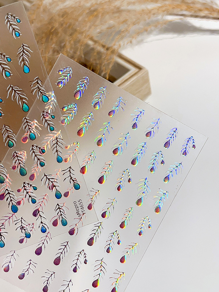 YITU 핫 스탬핑 레이저 공작 깃털 네일 아트 스티커 절묘하고 간단한 플래시 장식 스티커 YT4655스토어 가기