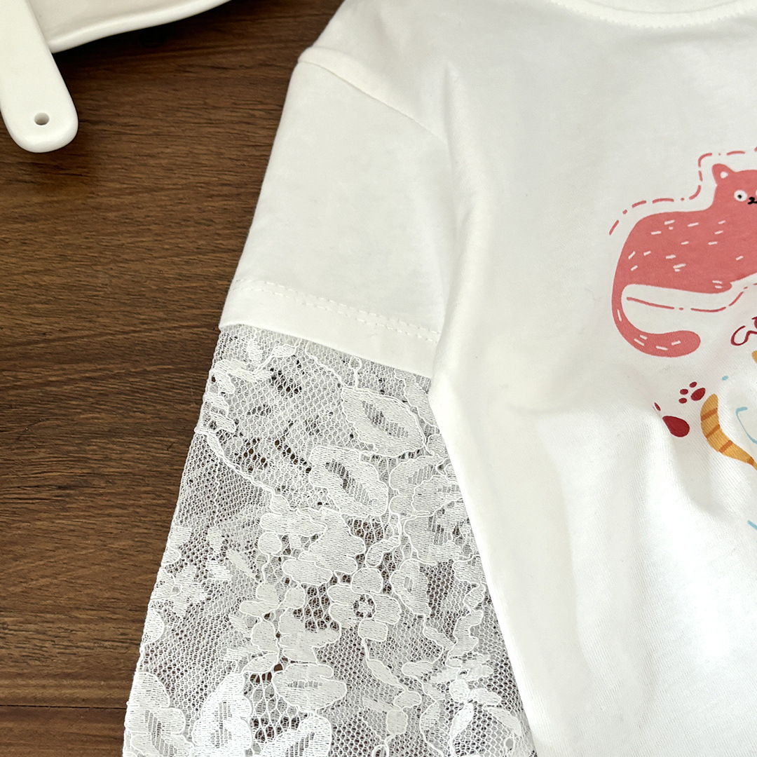 어린이 레이스 반팔 티셔츠 코튼 소녀 탑 바닥 단일 조각 아기 소녀 클래스 의류 만화 유행 어린이 도매
