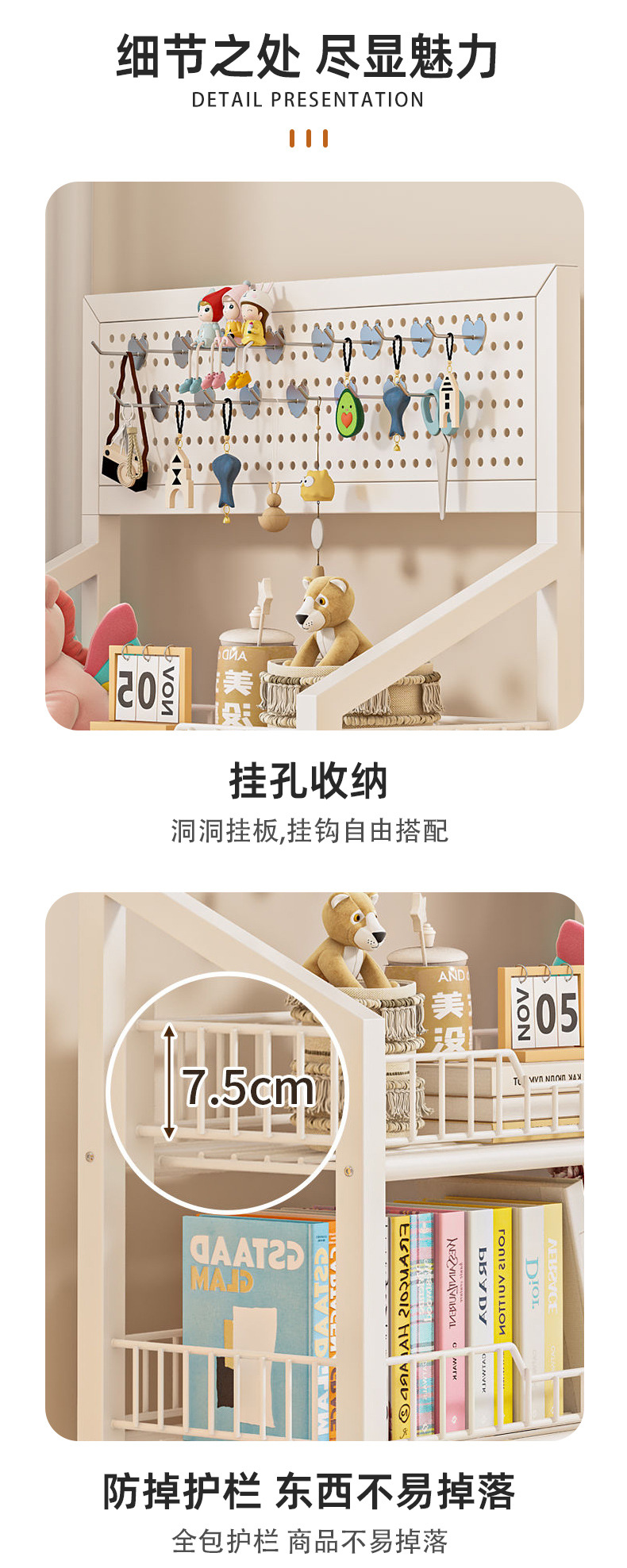 홀이 있는 보드 수납 책장 가정용 이동식 바닥형 선반 거실 다층 학생용 책 간단 조립형 선반