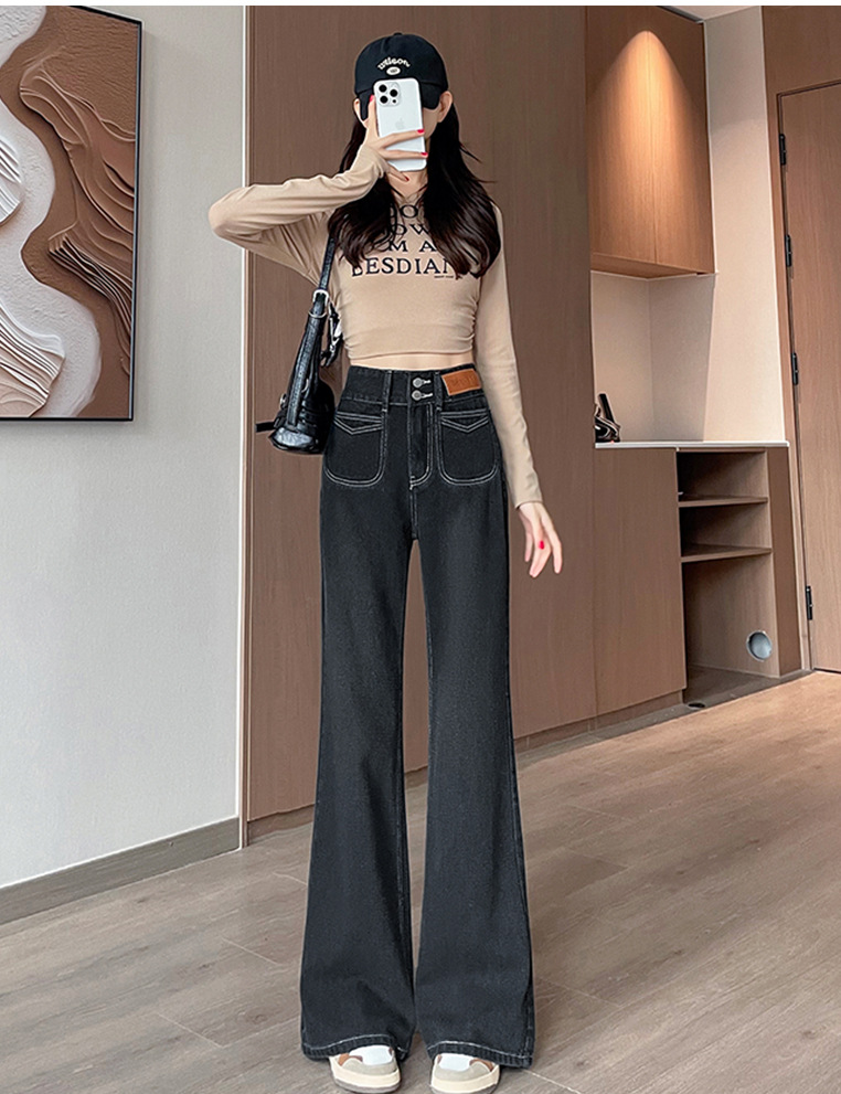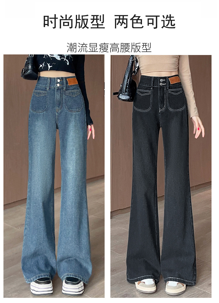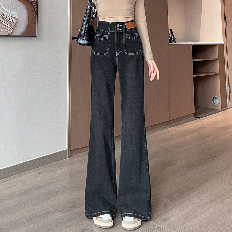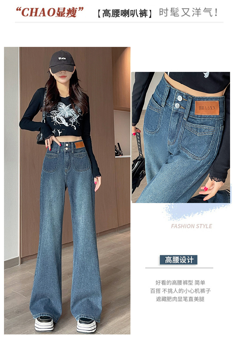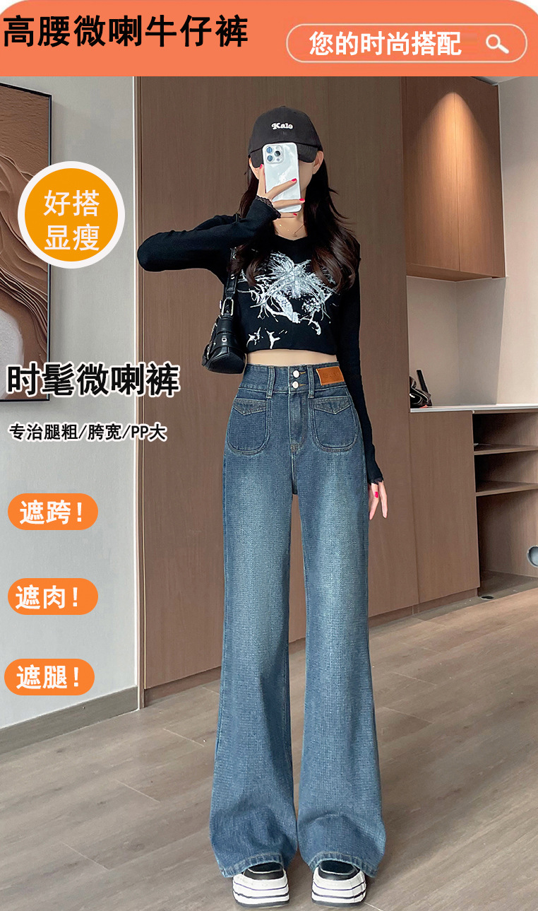 0126 별이 빛나는 하늘 패턴 하이 웨이스트 마이크로 플레어 청바지 여성용 배꼽 조절 및 엉덩이 리프팅 2024 가을 새로운 하이 웨이스트 플레어 청바지