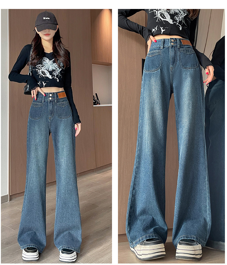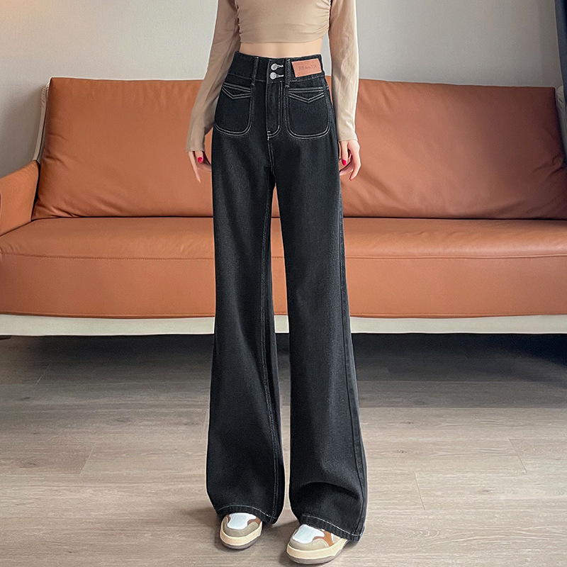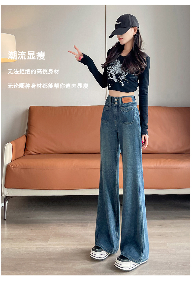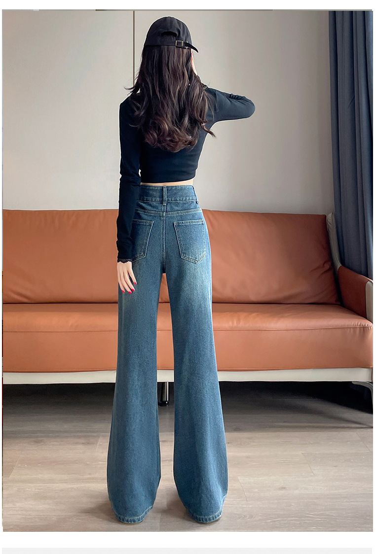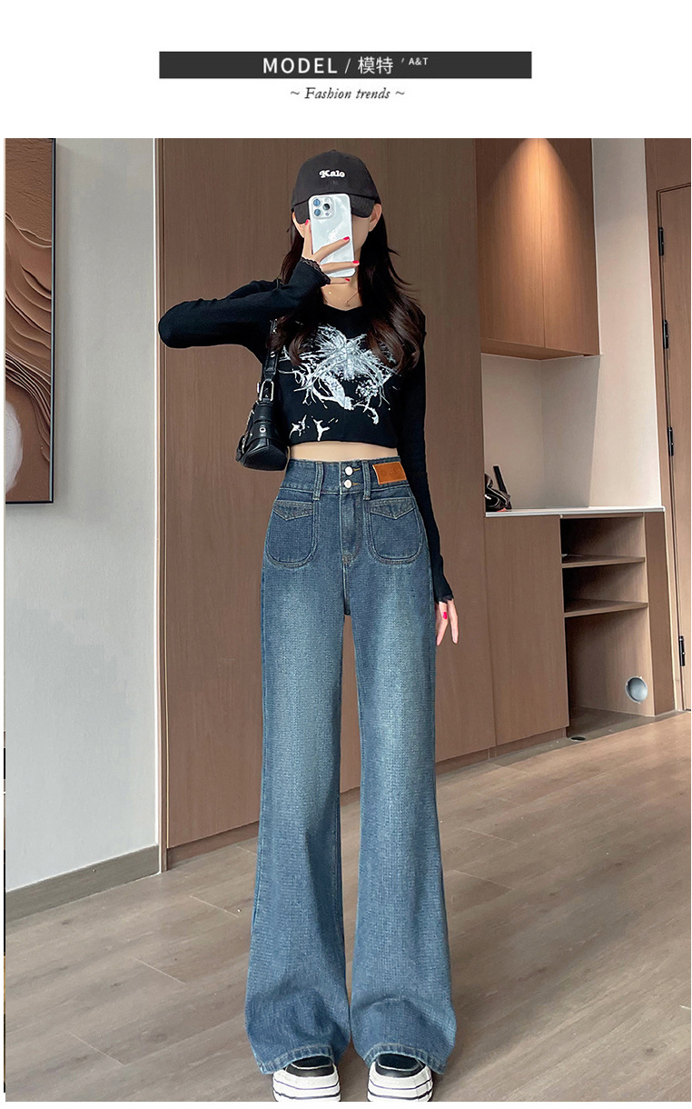 0126 별이 빛나는 하늘 패턴 하이 웨이스트 마이크로 플레어 청바지 여성용 배꼽 조절 및 엉덩이 리프팅 2024 가을 새로운 하이 웨이스트 플레어 청바지