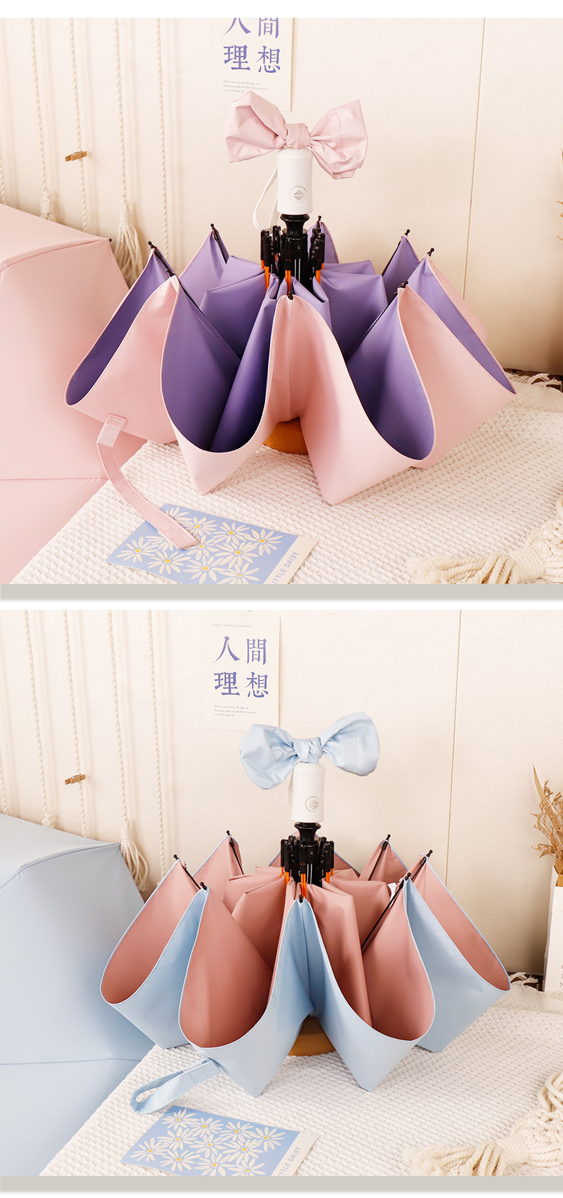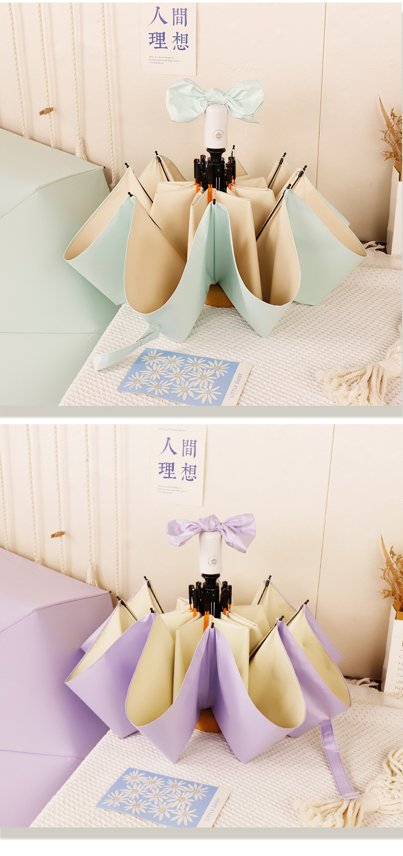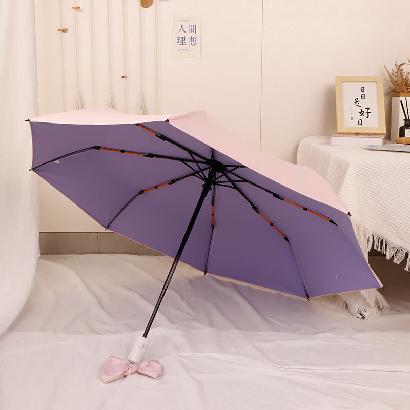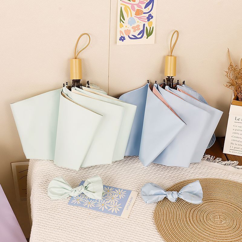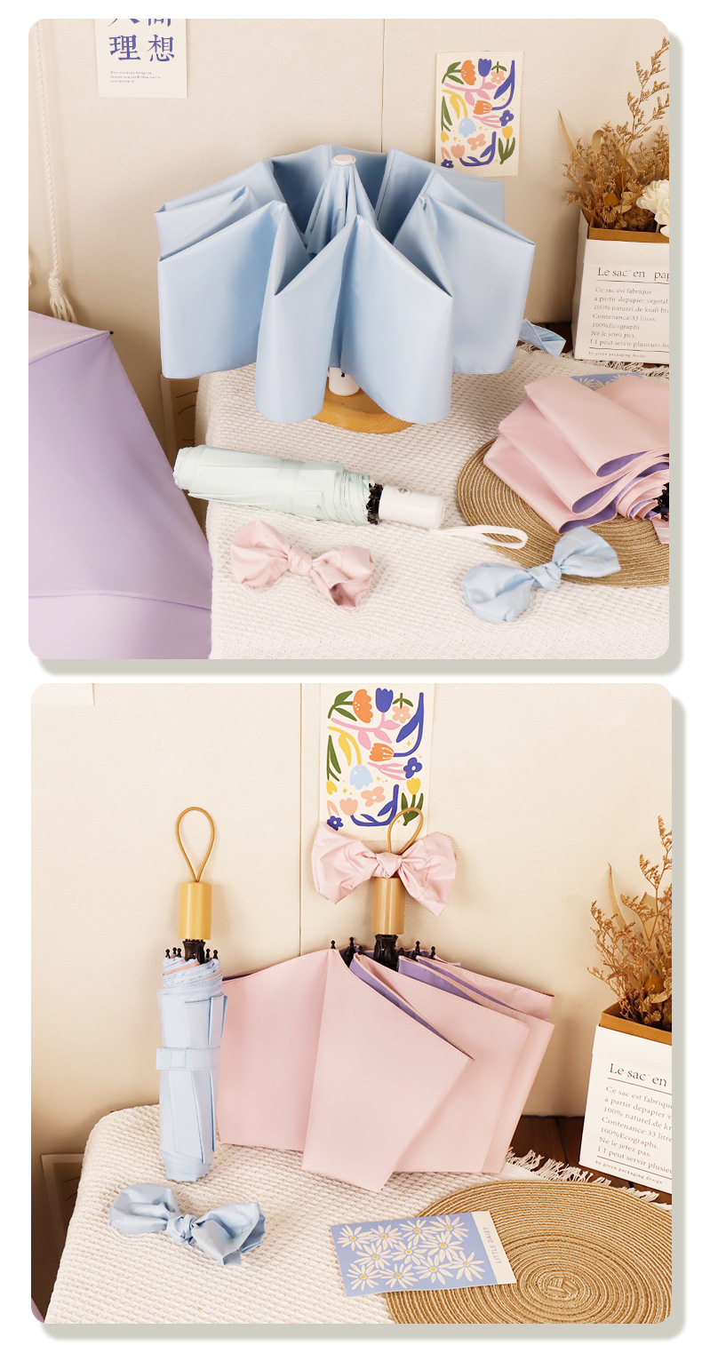컬러 접착제 자동 우산 맞춤형 고급 감각 여성의 작은 신선한 치료 접을 수있는 태양 우산 햇빛 선크림 우산스토어 가기