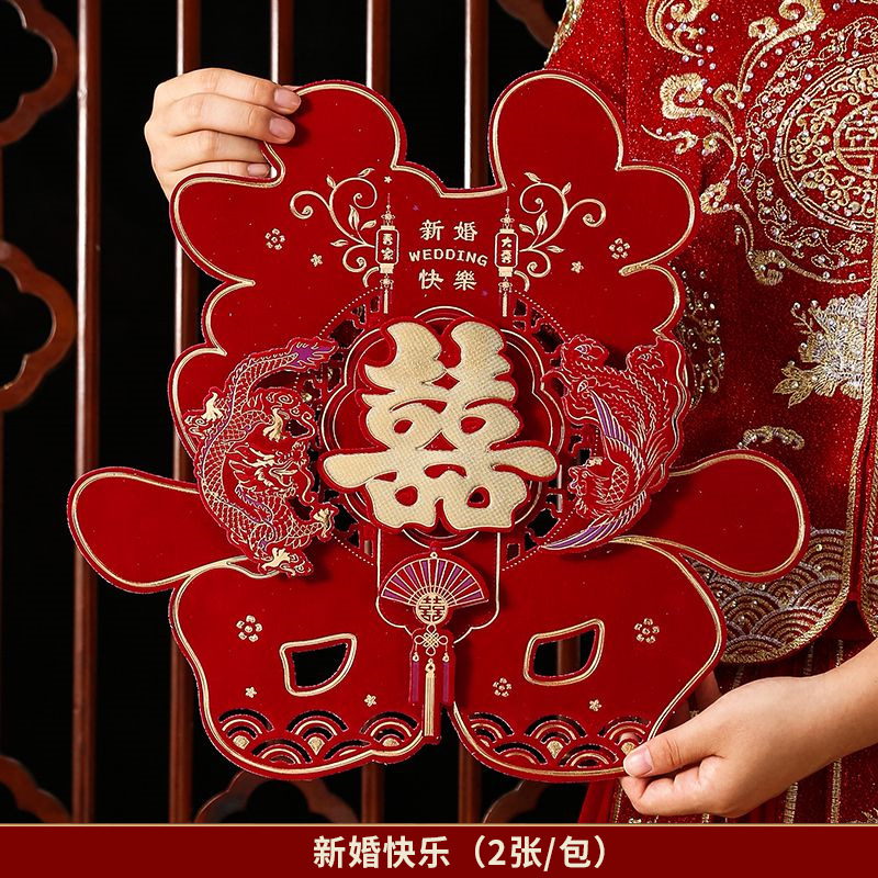 웨딩 웨딩 용품 행복한 단어 스티커 웨딩 룸 레이아웃 행복한 단어 문 스티커 빨간 행복 단어 창 스티커 도매 결혼식
