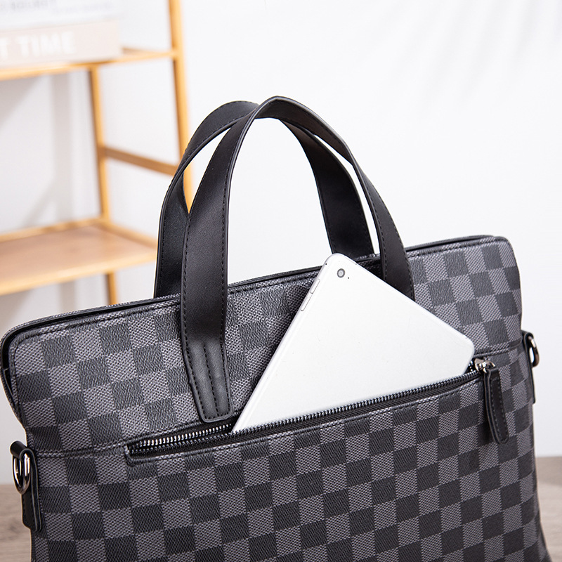 남성 패션 서류 가방 크로스 바디 대용량 비즈니스 격자 무늬 남성용 가방 통근 다기능 남성용 컴퓨터 핸드백