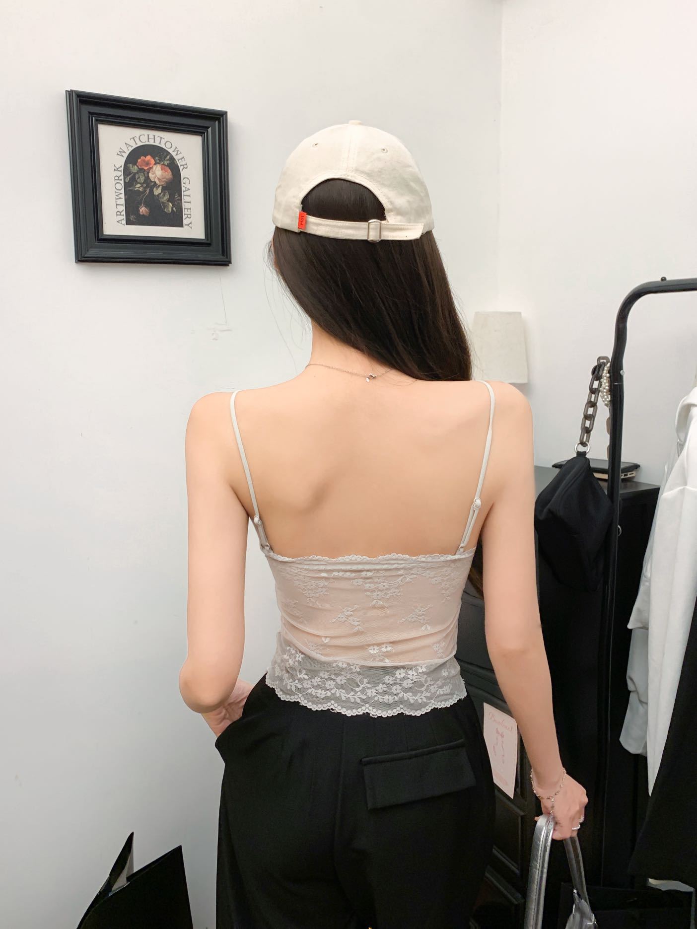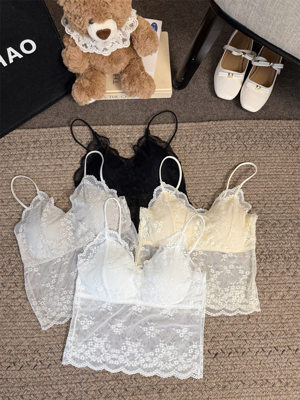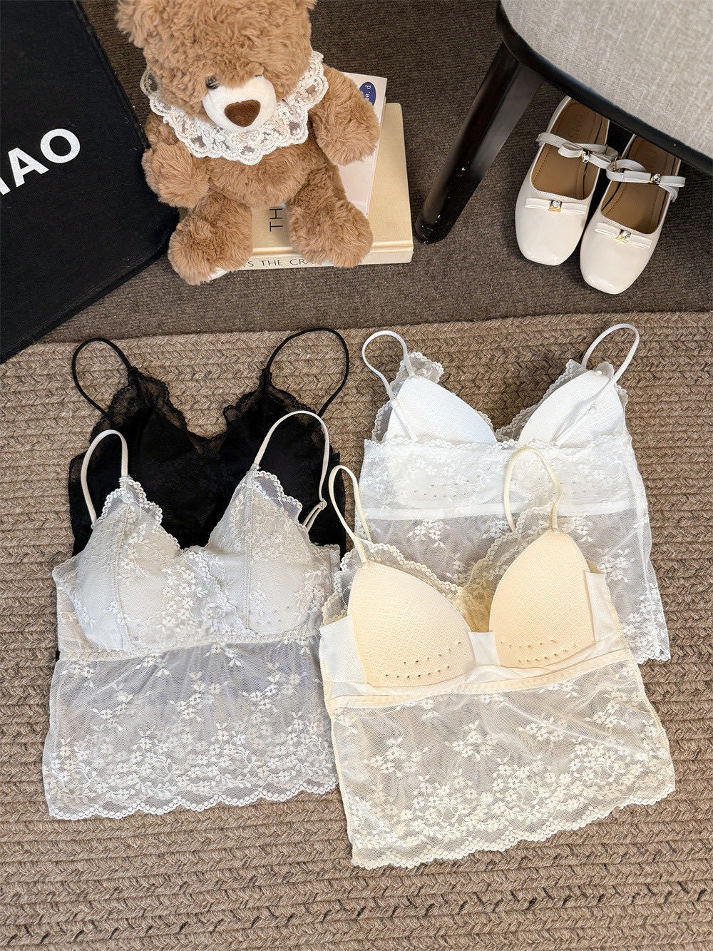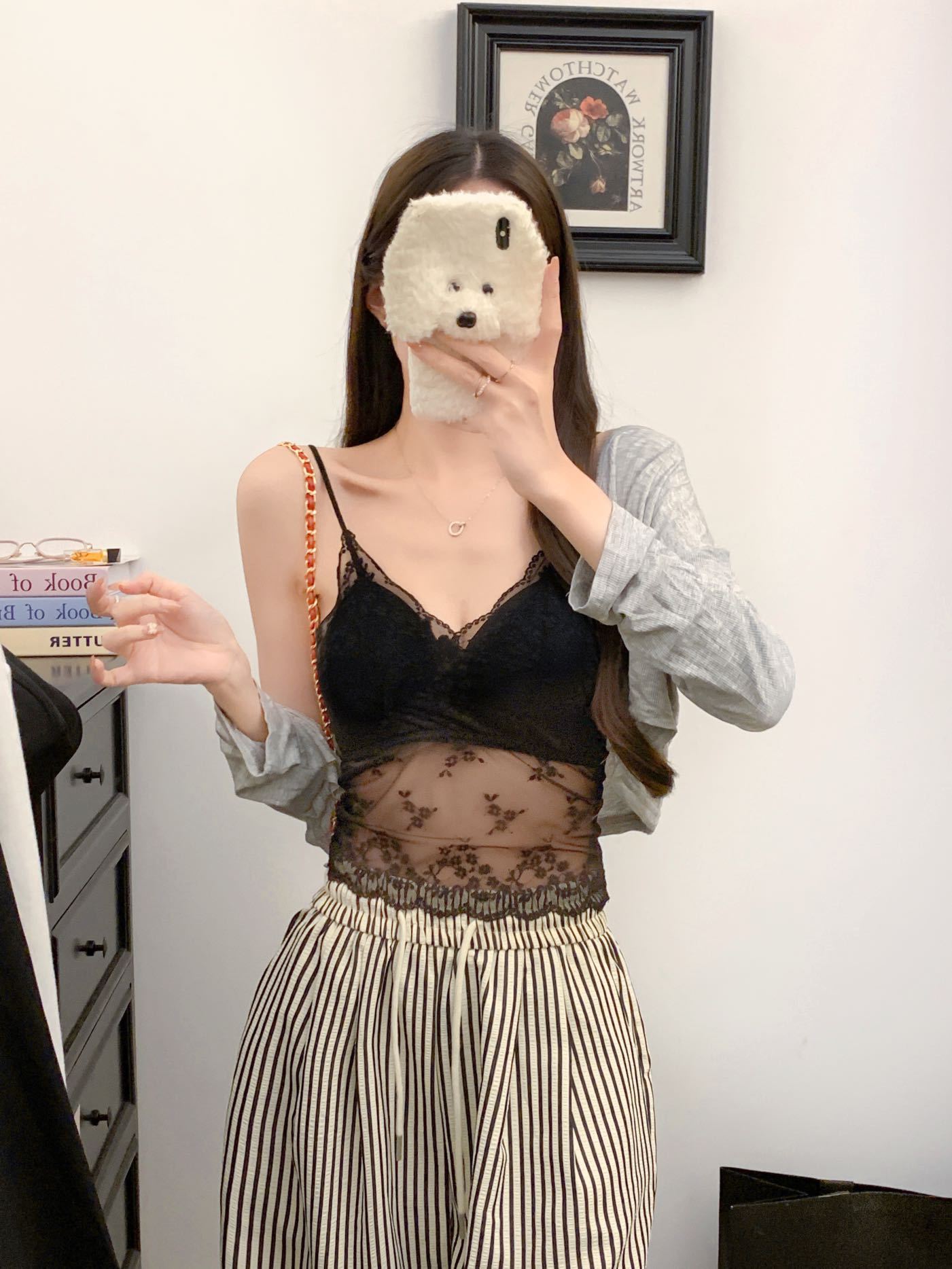 6250 # 브이넥 섹시 할로우 서스펜더 2025 봄 여름 신작 순수한 욕망 스타일 한국 디자인 레이스 가슴 패드 포함스토어 가기