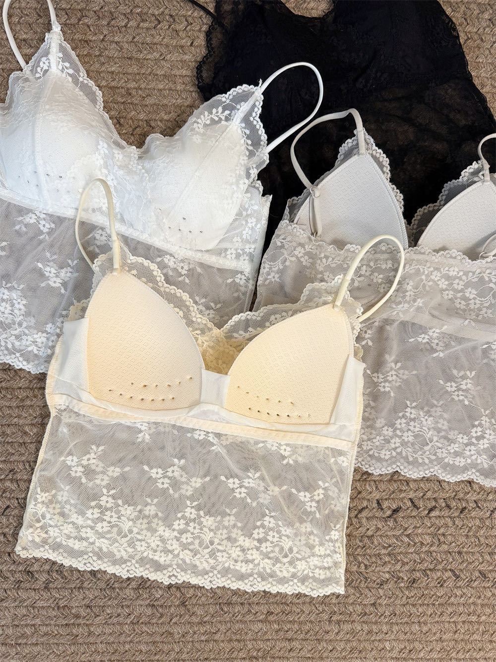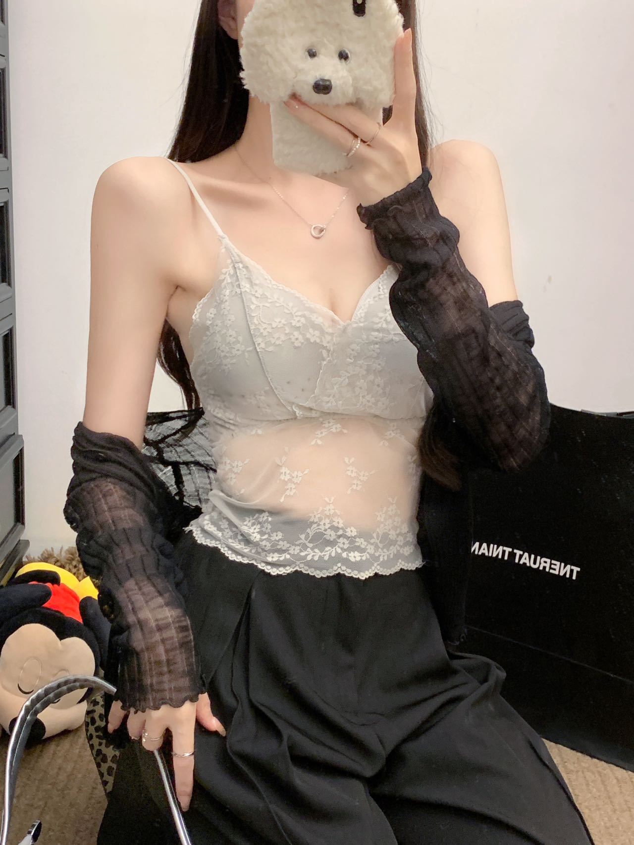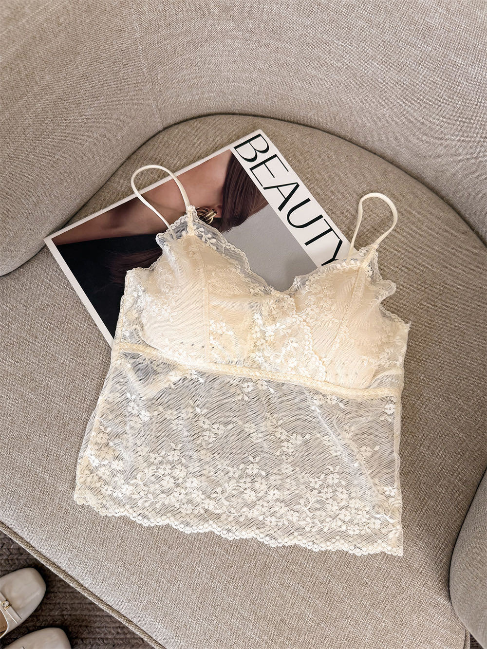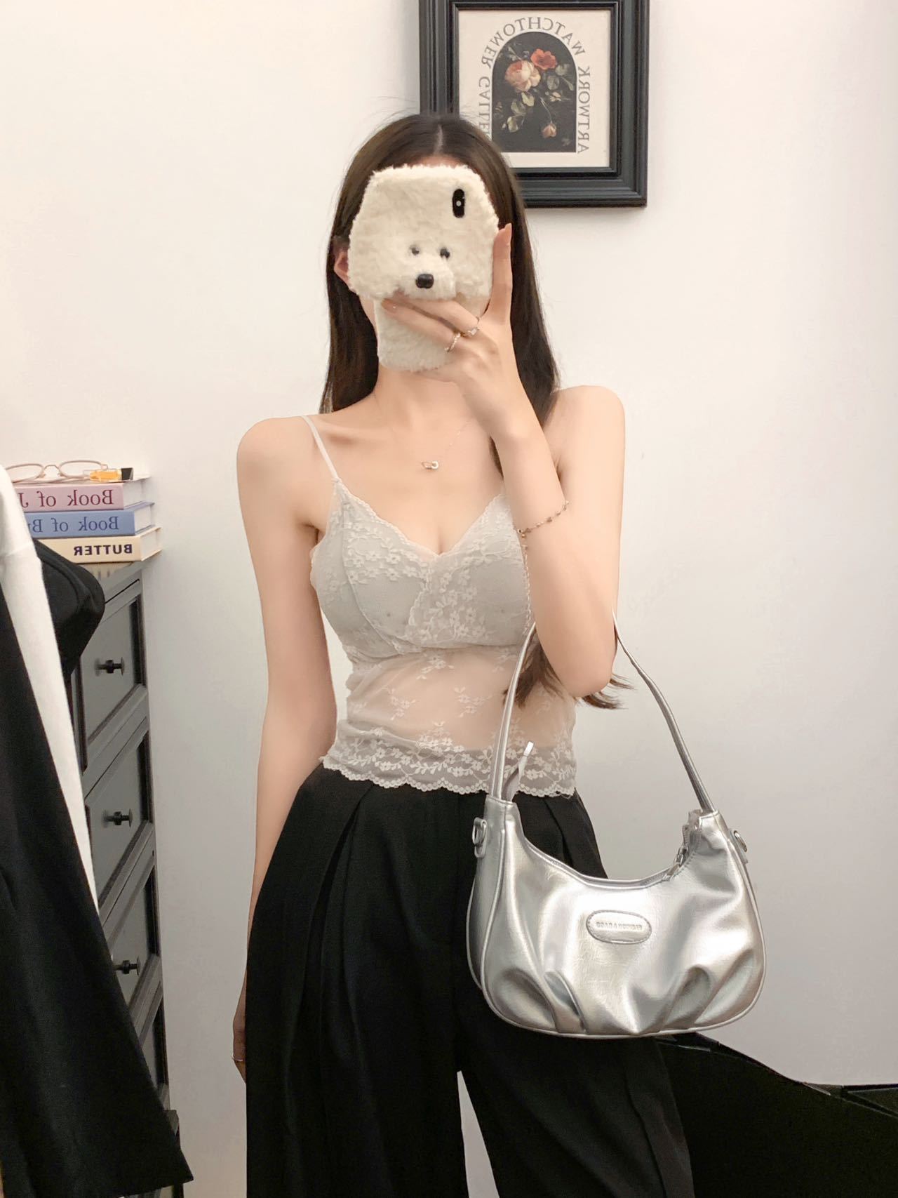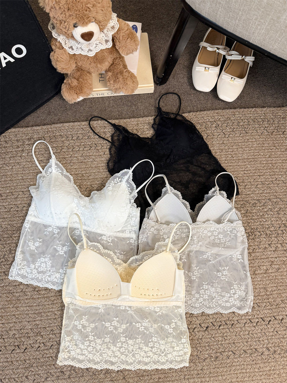 6250 # 브이넥 섹시 할로우 서스펜더 2025 봄 여름 신작 순수한 욕망 스타일 한국 디자인 레이스 가슴 패드 포함스토어 가기