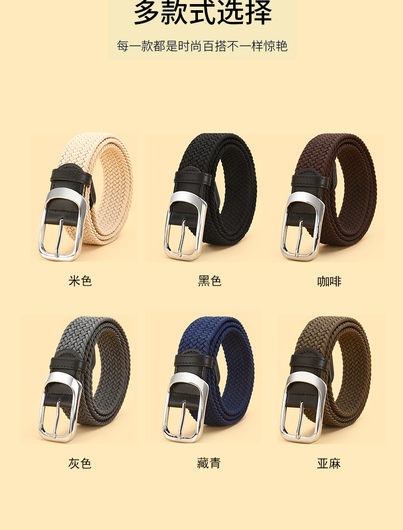 남성용 인기 온라인 펀치 프리 우븐 캔버스 벨트, 캐주얼하고 다재다능한 신축성 있는 벨트 핀 버클 바지 벨트스토어 가기