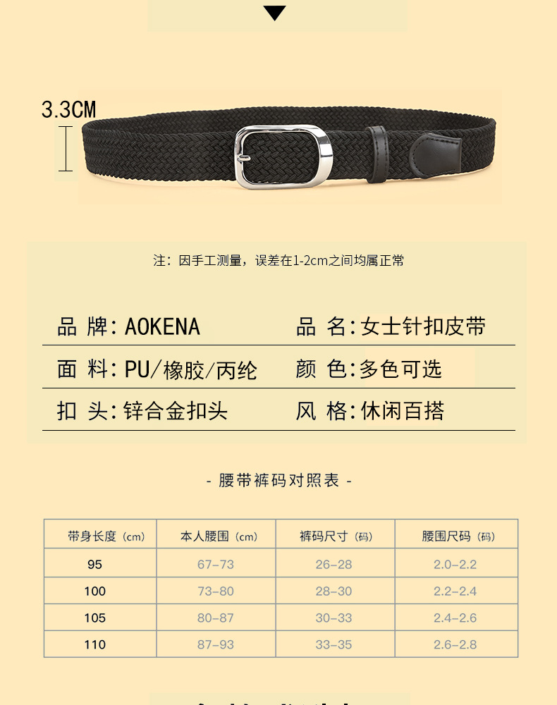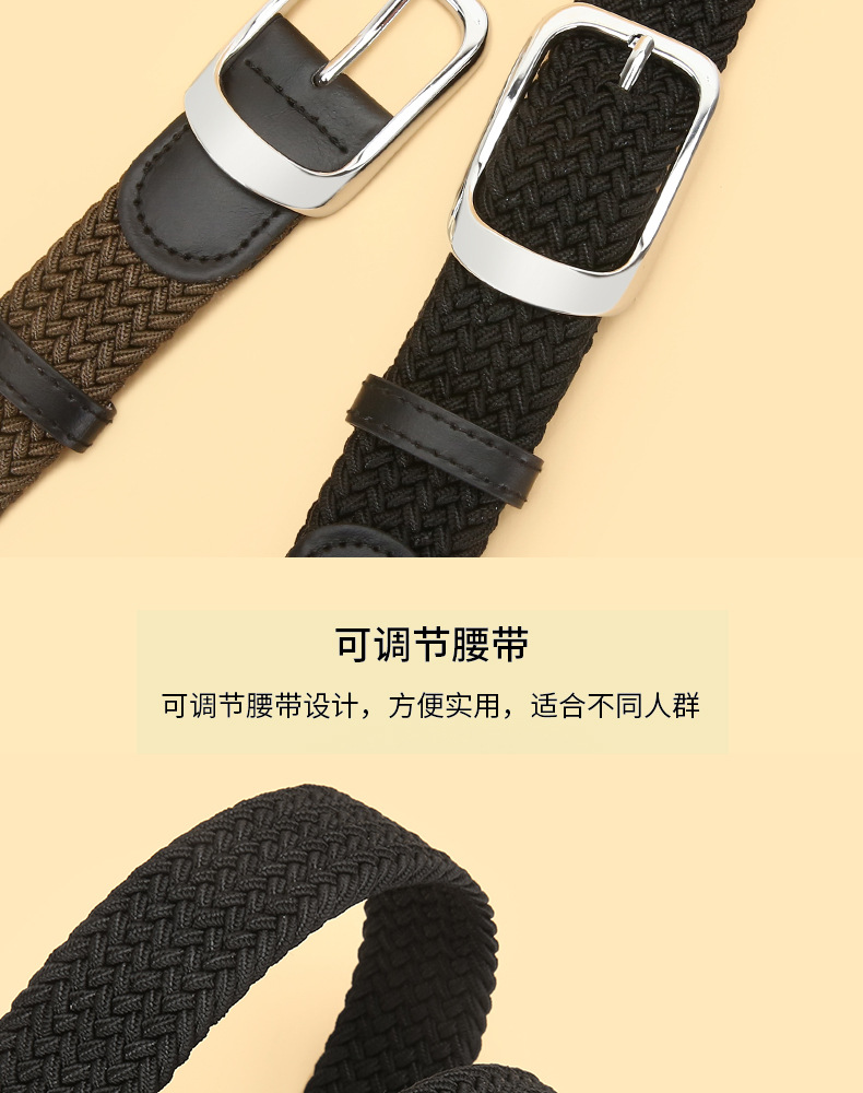 남성용 인기 온라인 펀치 프리 우븐 캔버스 벨트, 캐주얼하고 다재다능한 신축성 있는 벨트 핀 버클 바지 벨트