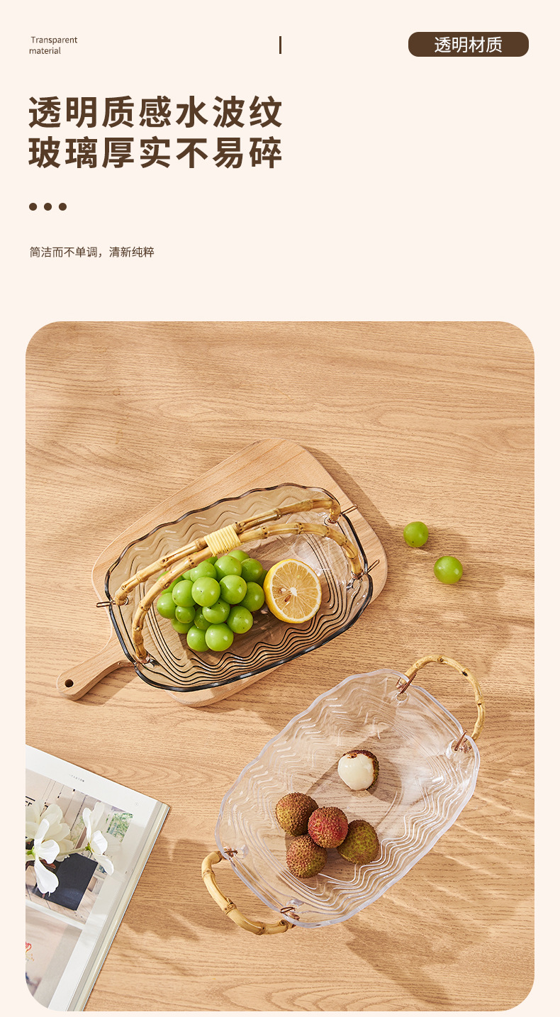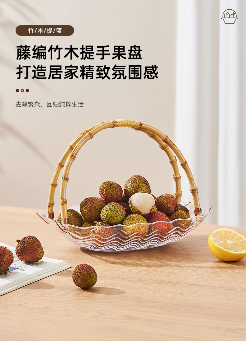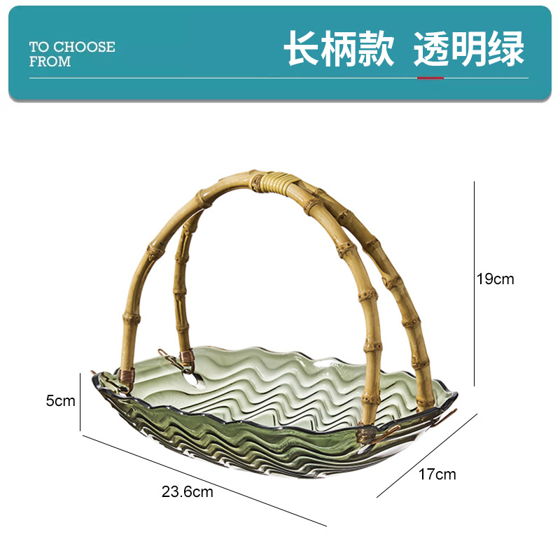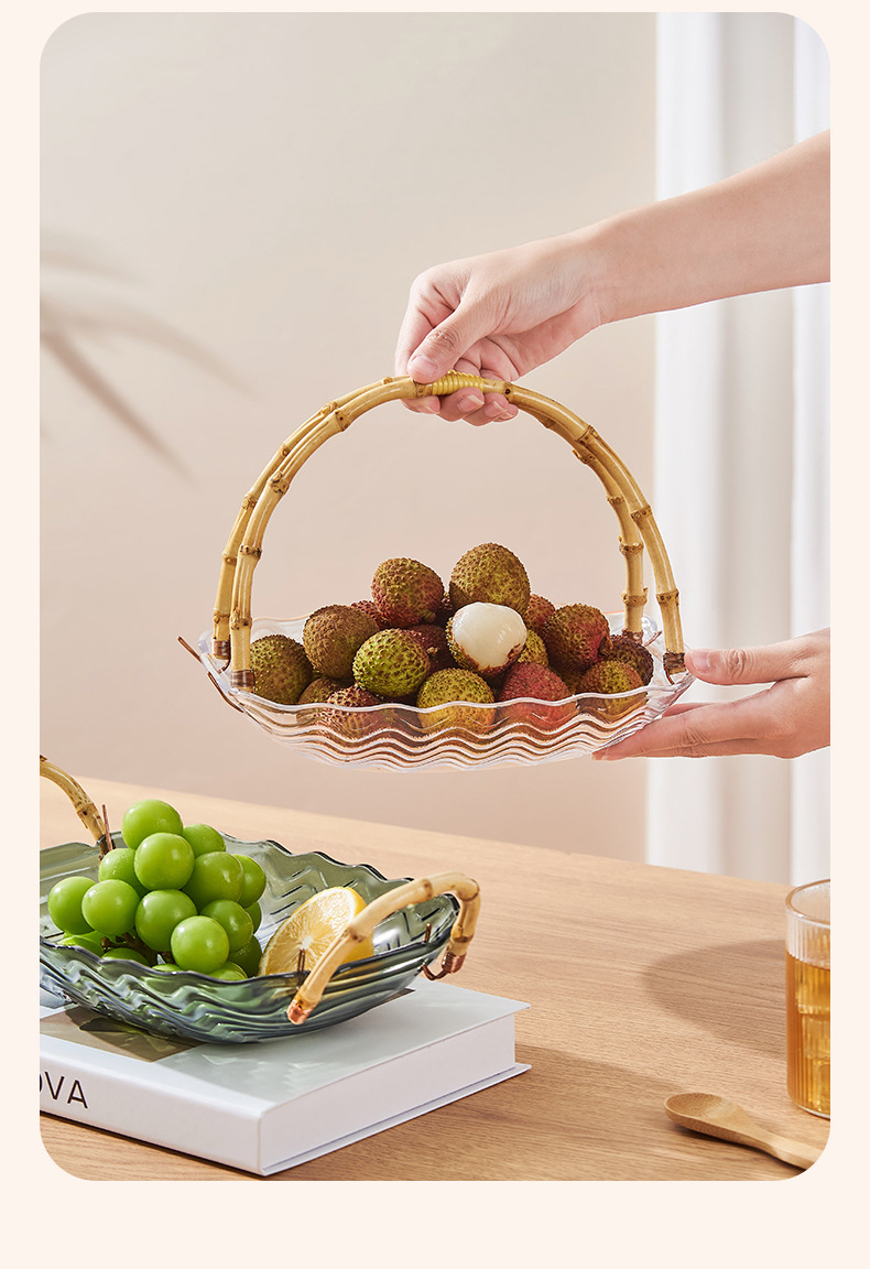 花瓣玻璃藤竹编果篮手提篮客厅水果盆干果盘零食收纳盒家用甜品盘스토어 가기