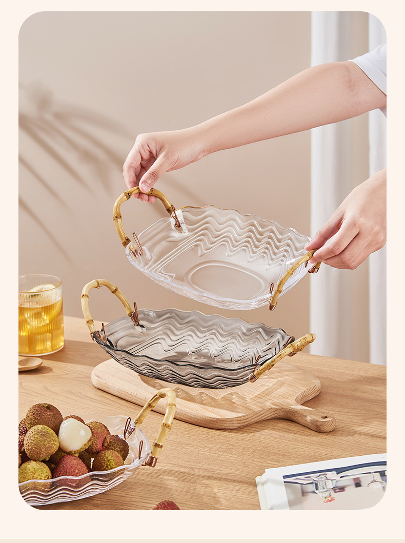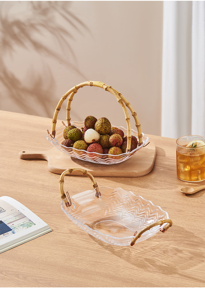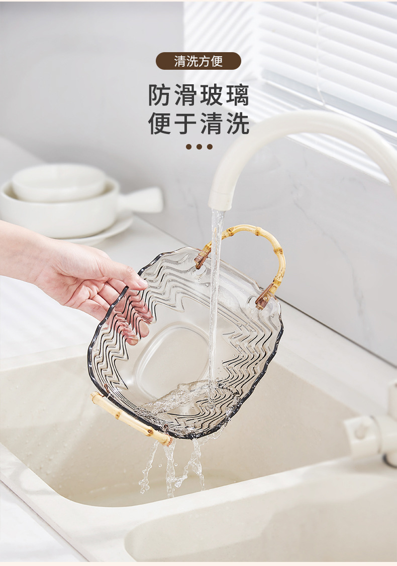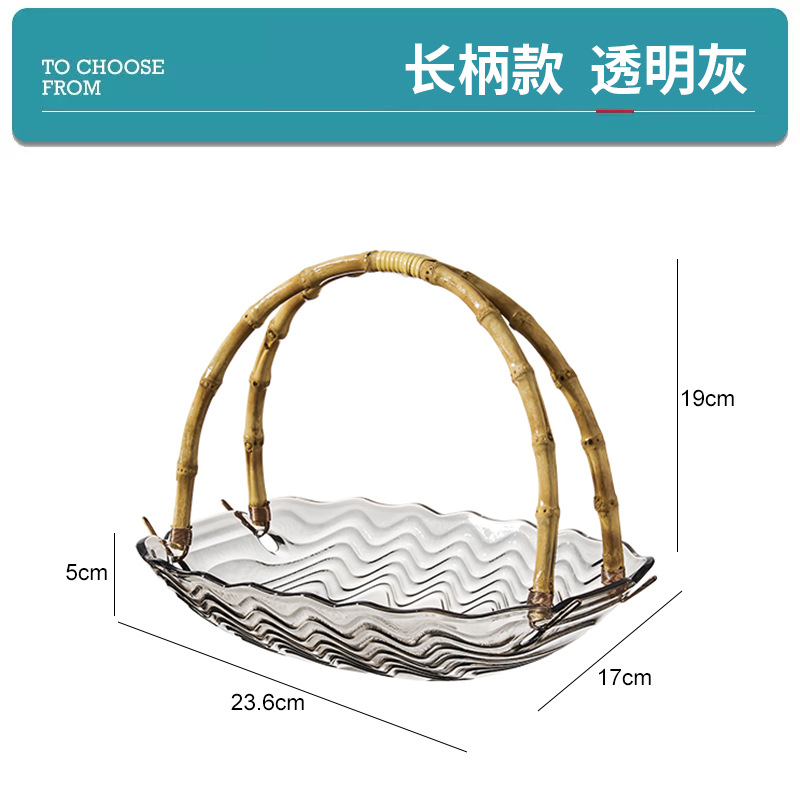 花瓣玻璃藤竹编果篮手提篮客厅水果盆干果盘零食收纳盒家用甜品盘스토어 가기