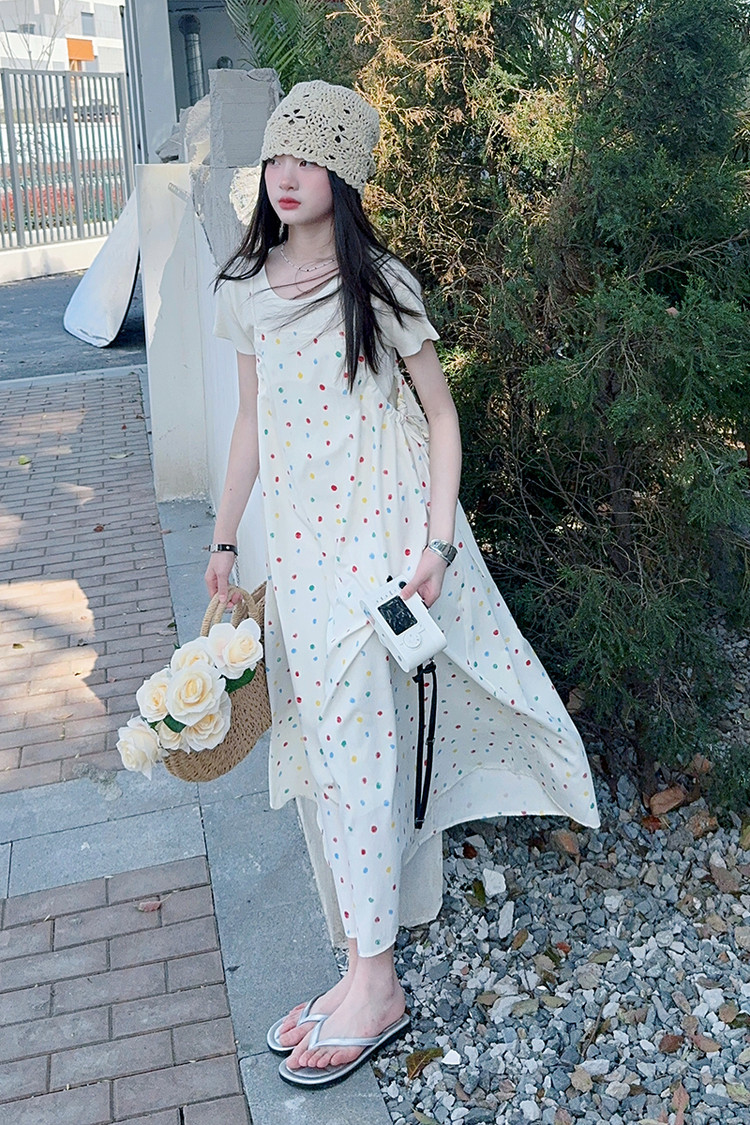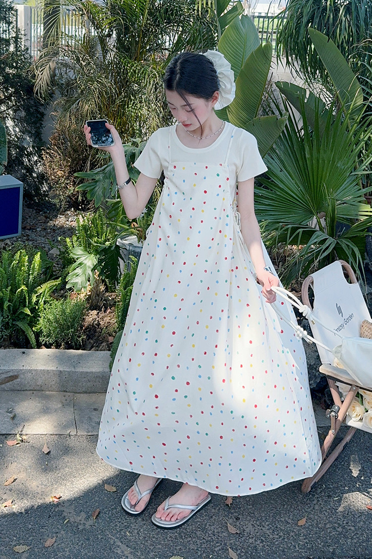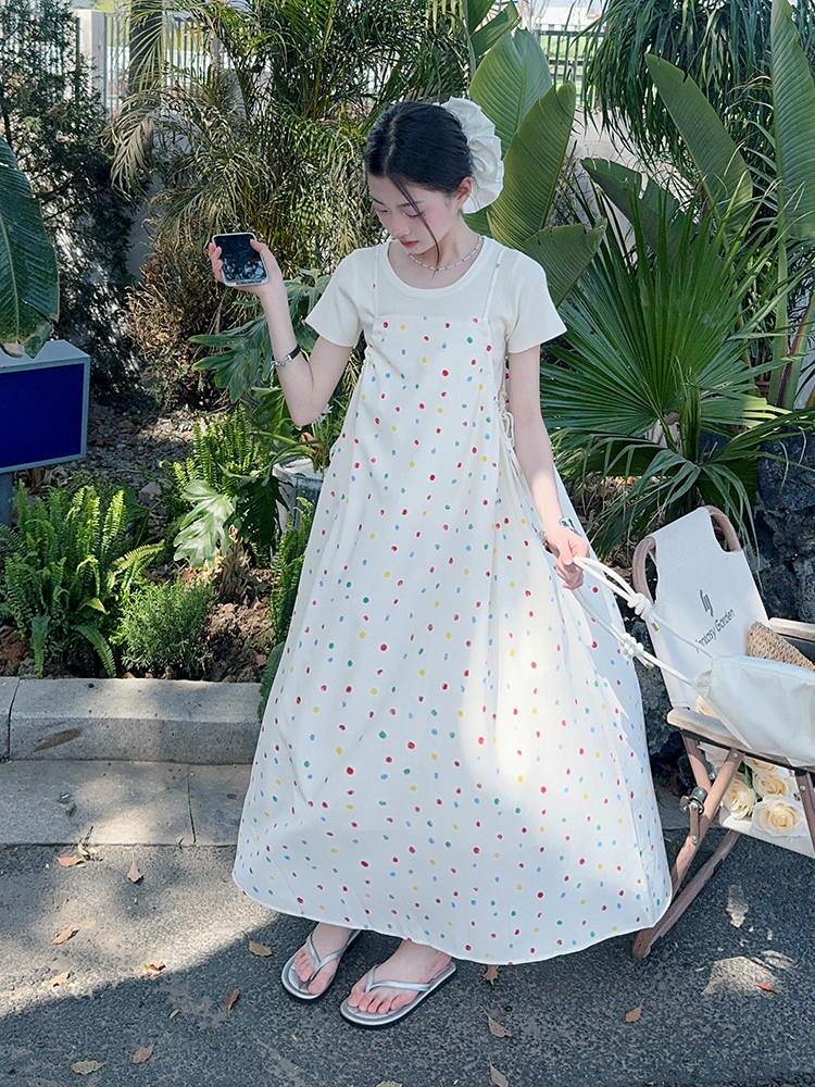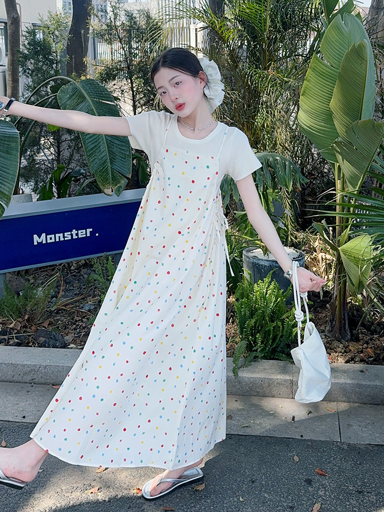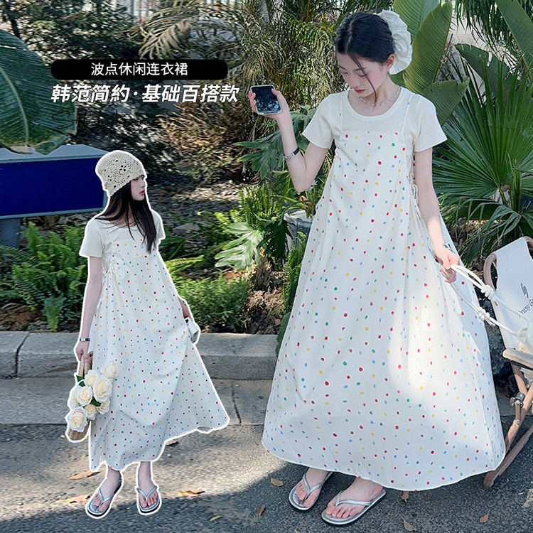 국경 간 소녀 여름 슬립 스커트 어린이 한국 반팔 티셔츠 원피스 투피스 홀리데이 스타일 원피스 세트