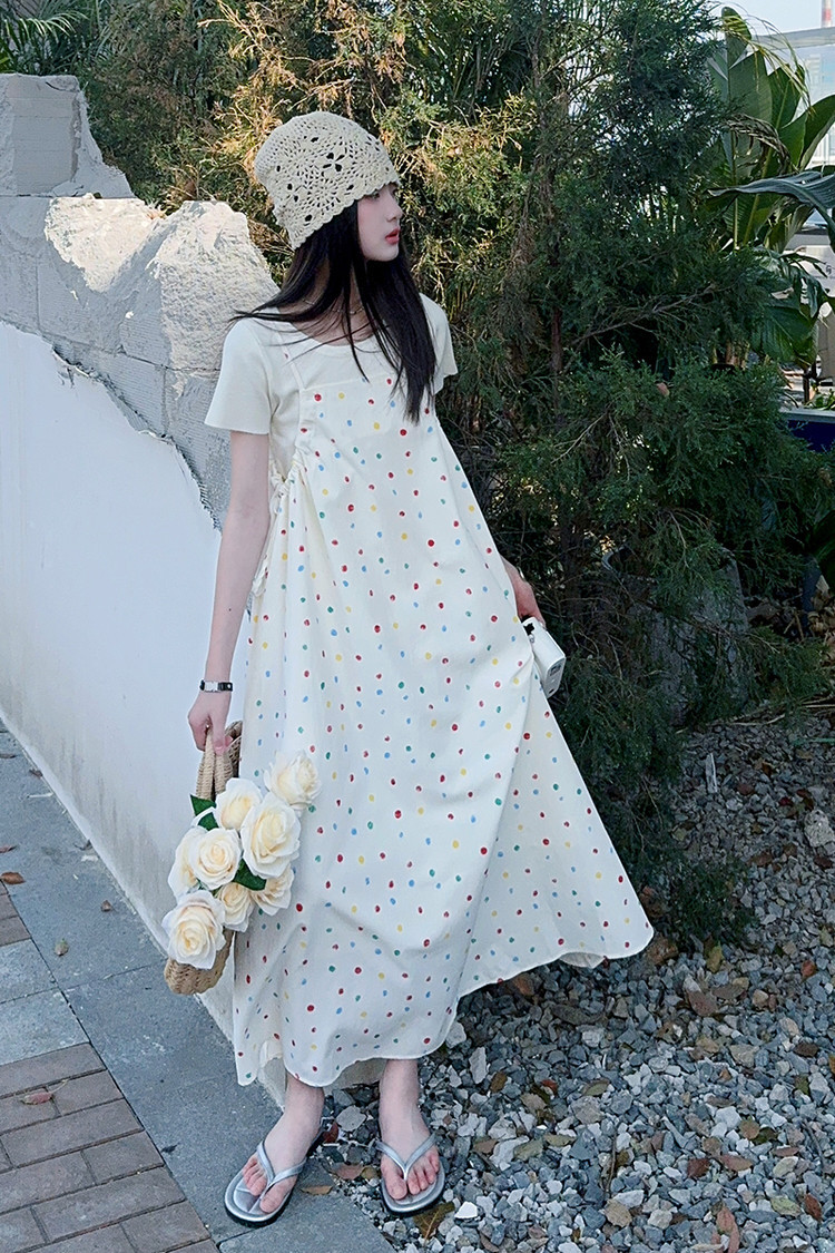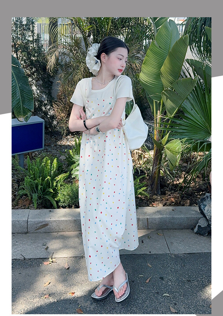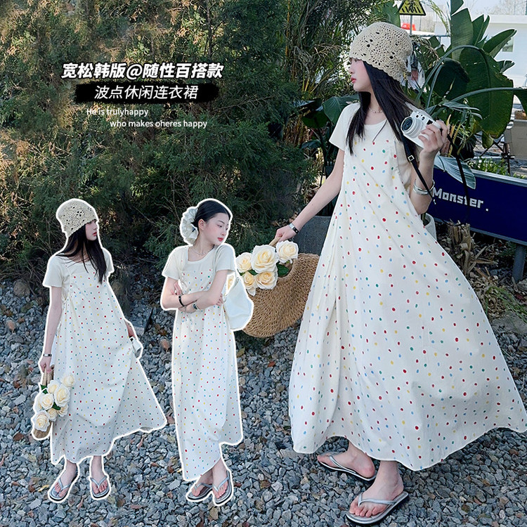 국경 간 소녀 여름 슬립 스커트 어린이 한국 반팔 티셔츠 원피스 투피스 홀리데이 스타일 원피스 세트스토어 가기