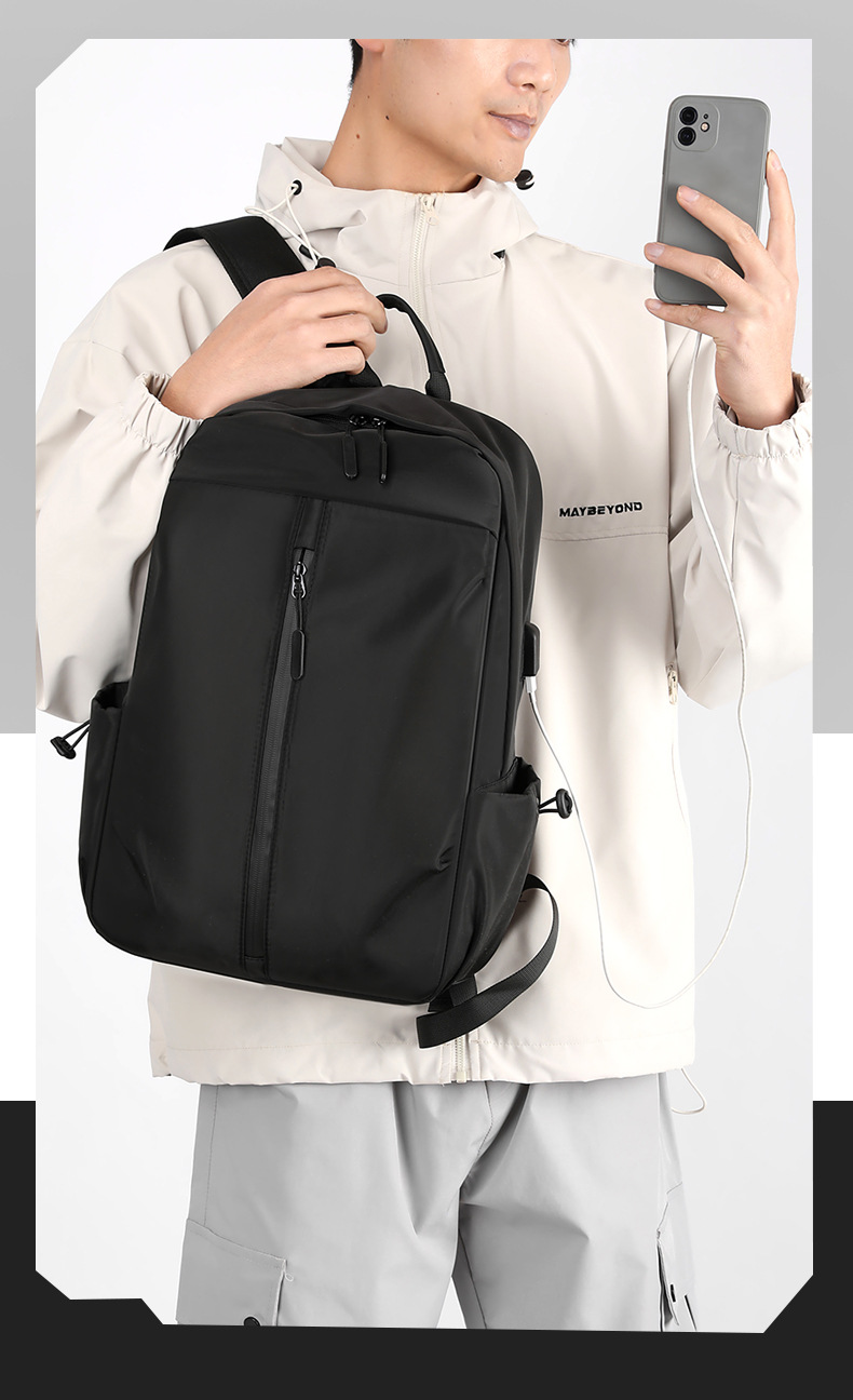 학교 가방 피부 필름 단색 질감 캐주얼 비즈니스 배낭 대용량 남성용 노트북 배낭 도매스토어 가기