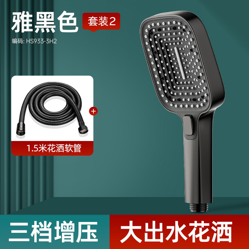 • [블랙] 사각 세로홀 3단 샤워기 + 블랙 1.5m호스 + 블랙 펀치프리 베이스