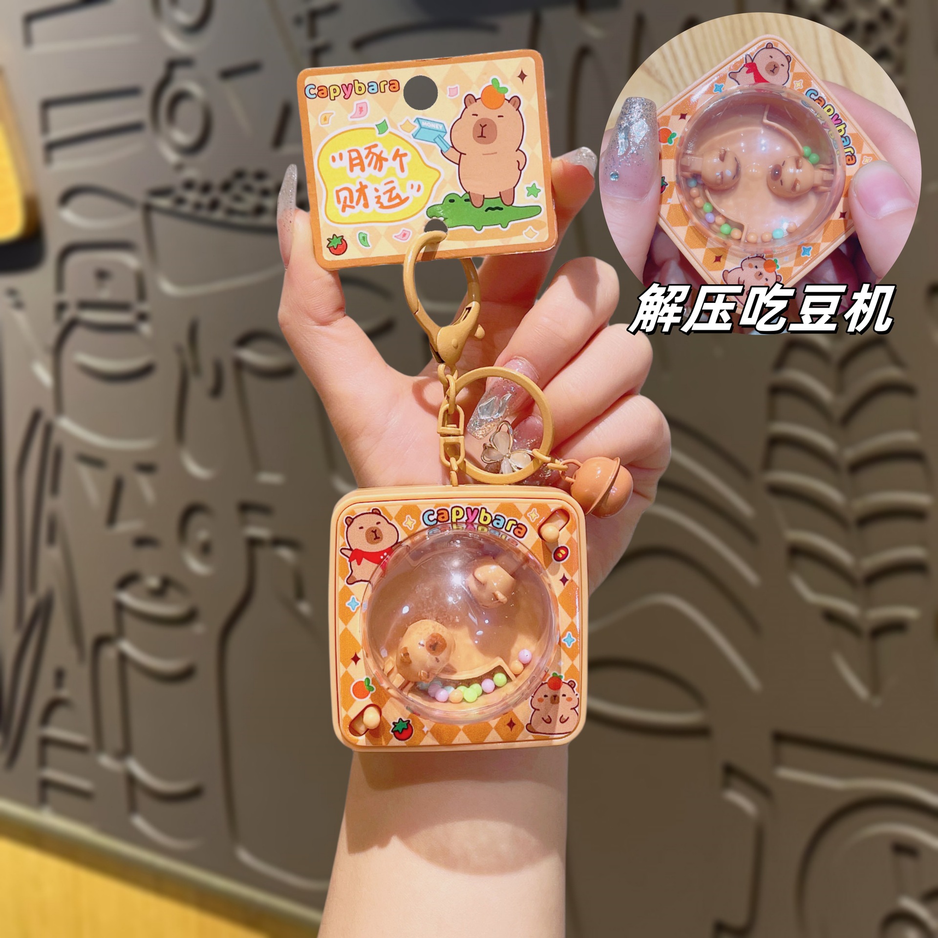 카피발라 콩 기계 창조적 인 키 체인 감압 작은 장난감 소년과 소녀 가방 펜던트 키 체인 작은 선물스토어 가기
