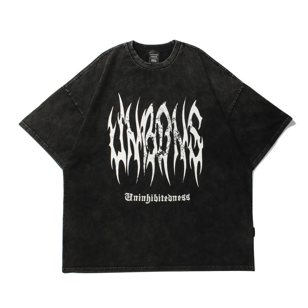 디아블로 스타일 추상 인쇄 반팔 티셔츠 남성용 빨래식 느슨한 패셔너블 반소매 여름 둥근 목 반소매스토어 가기