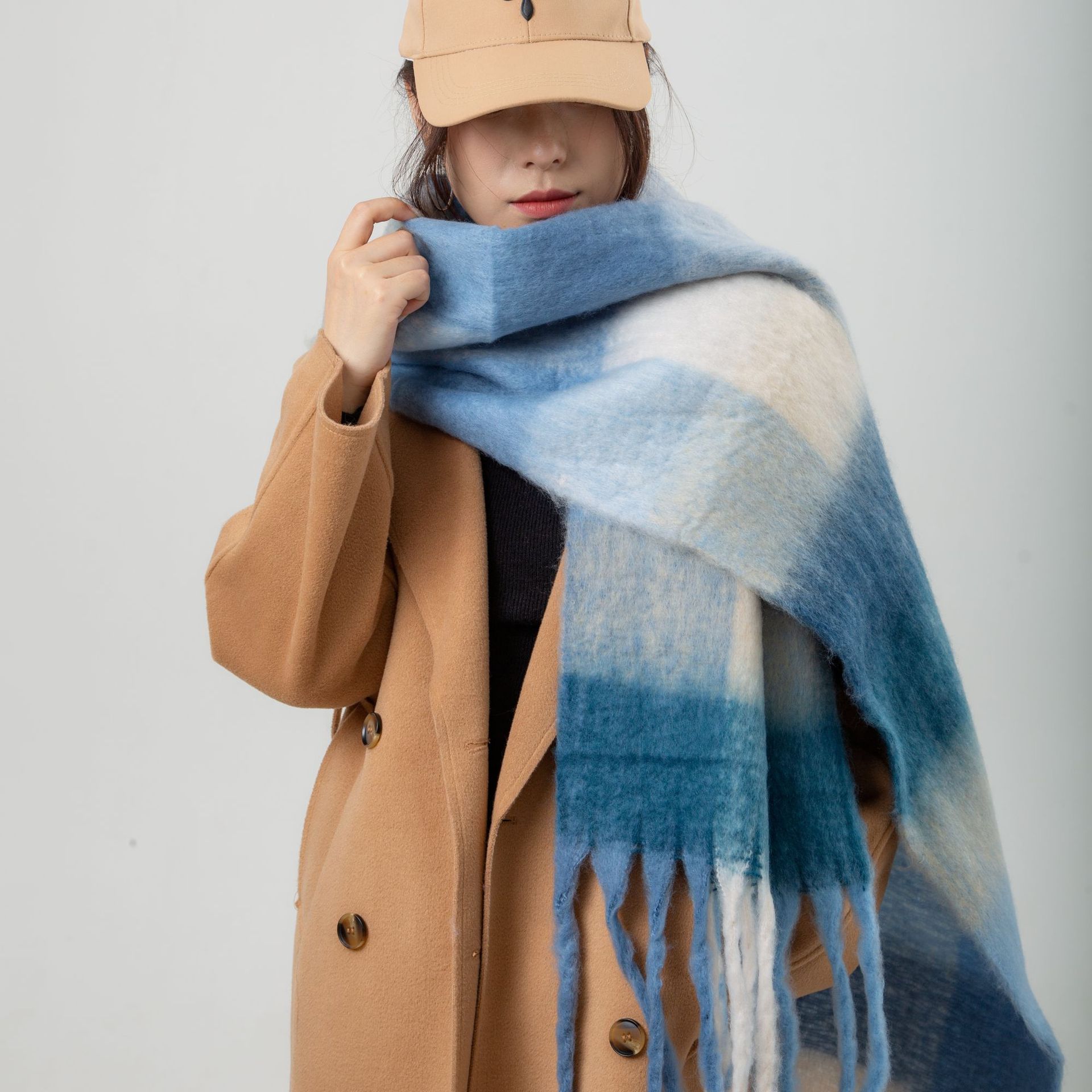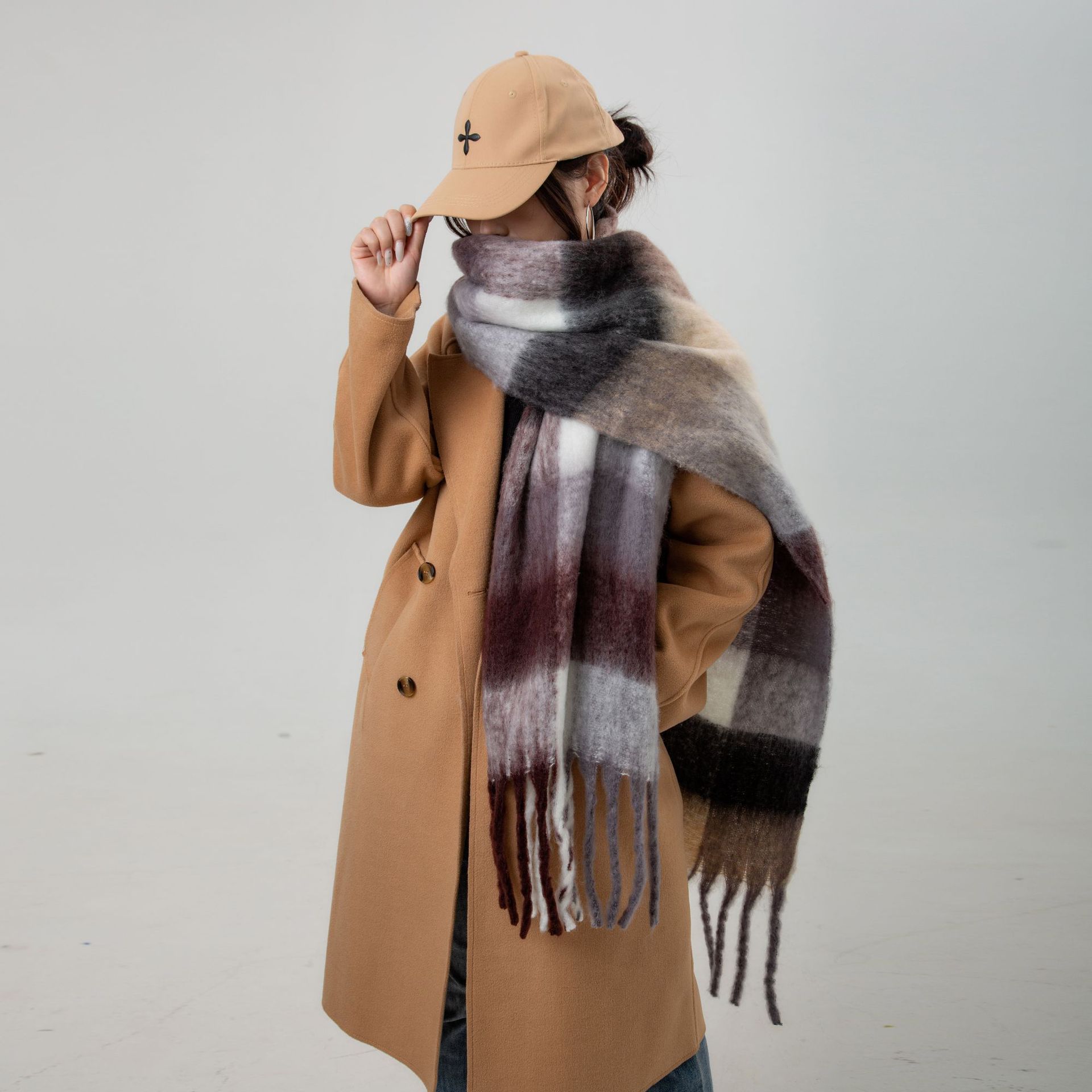 얼굴을 깊이 넣을 수 있는 대형 스카프, 커플을 위한 레트로 솔리드 컬러 모헤어 스카프, 겨울에 따뜻하게 유지하기에 다재다능합니다.스토어 가기