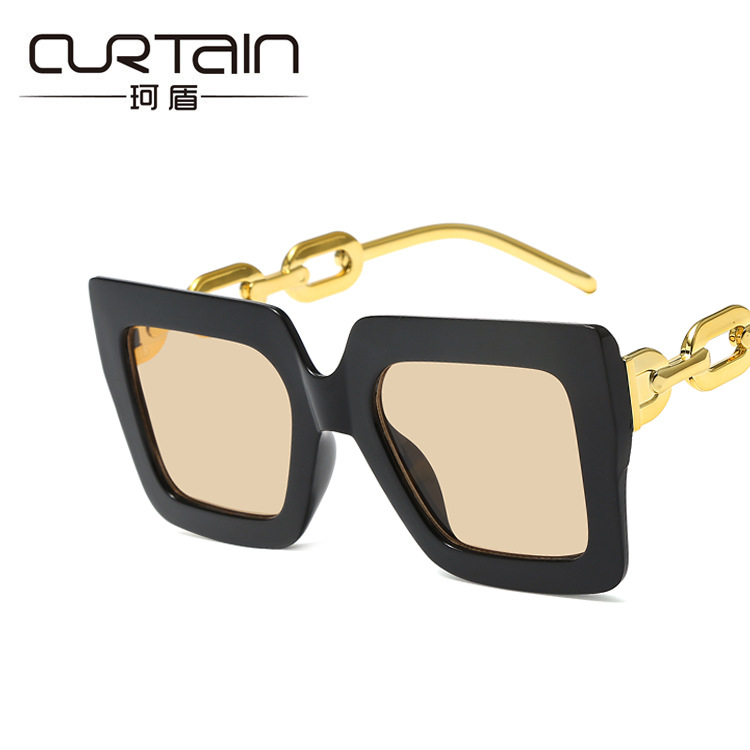 유럽과 미국의 프레임 체인 선글라스 2022 새로운 트렌드 대형 프레임 스트리트 샷 선글라스 맞춤형 선글라스 오목한 모양