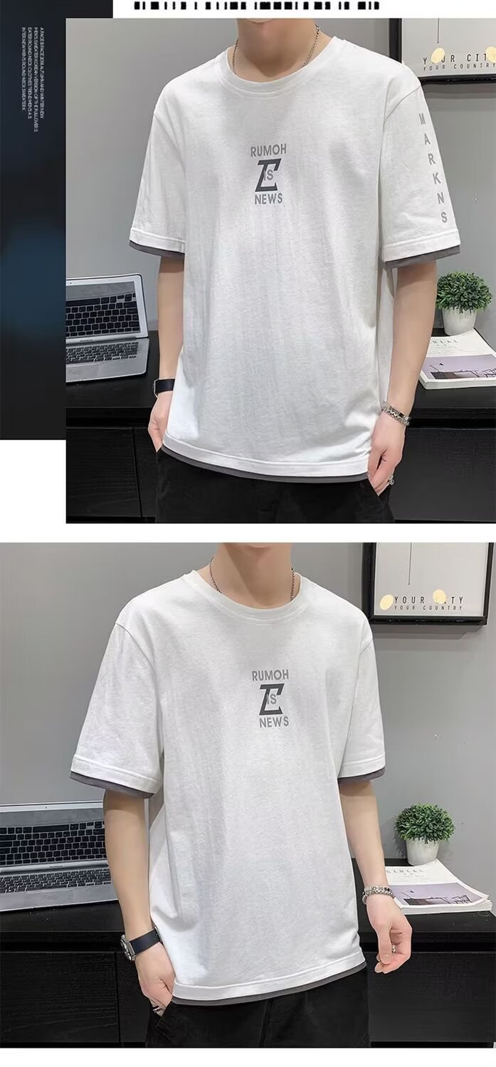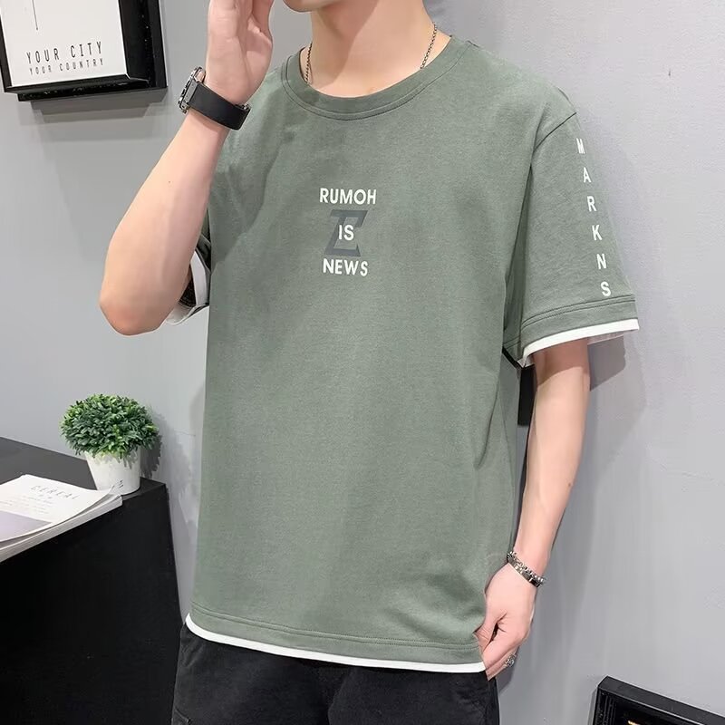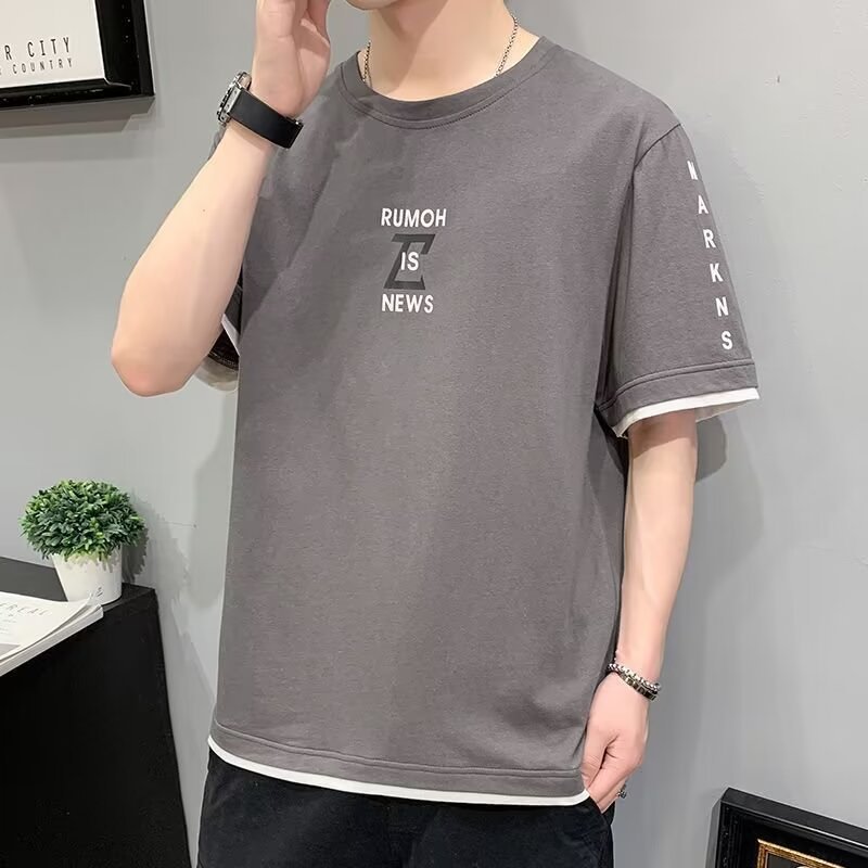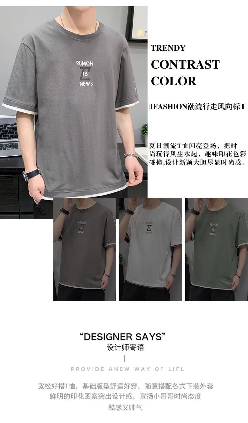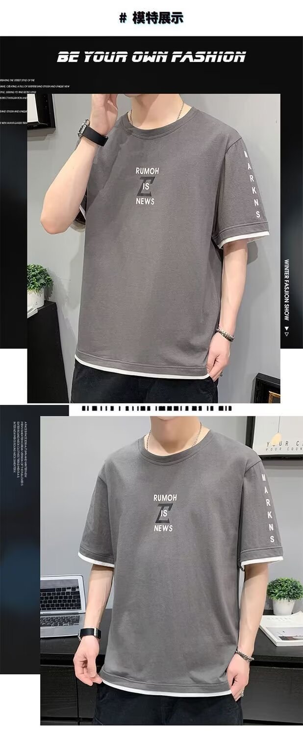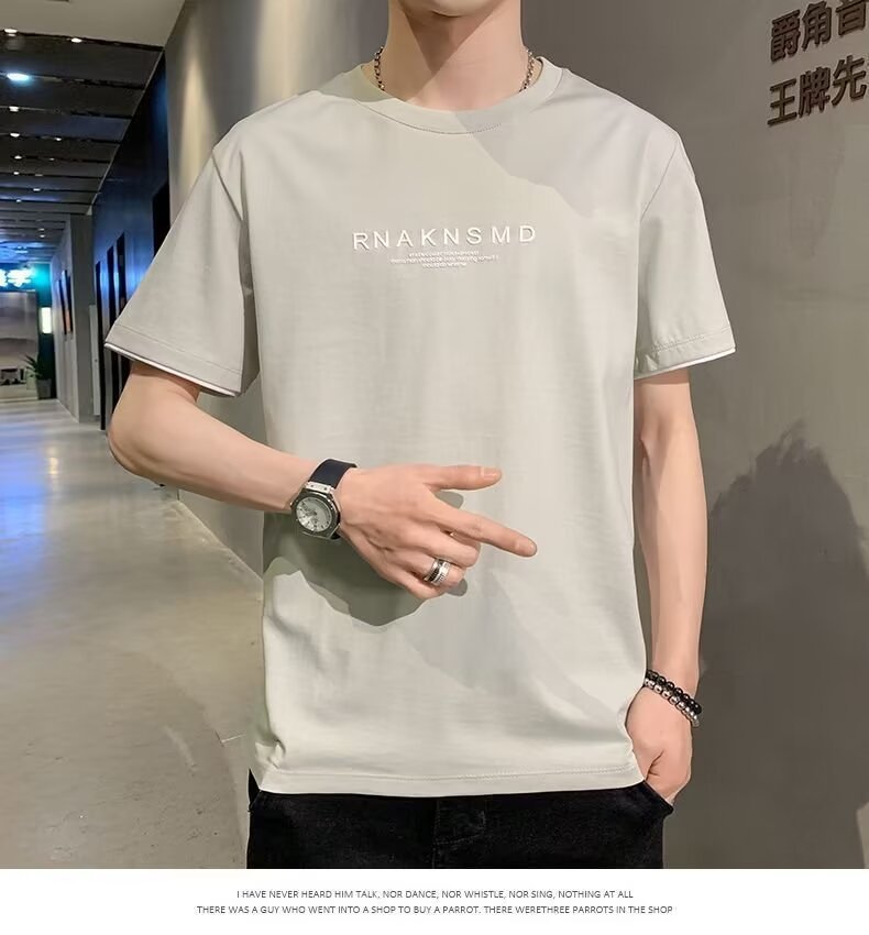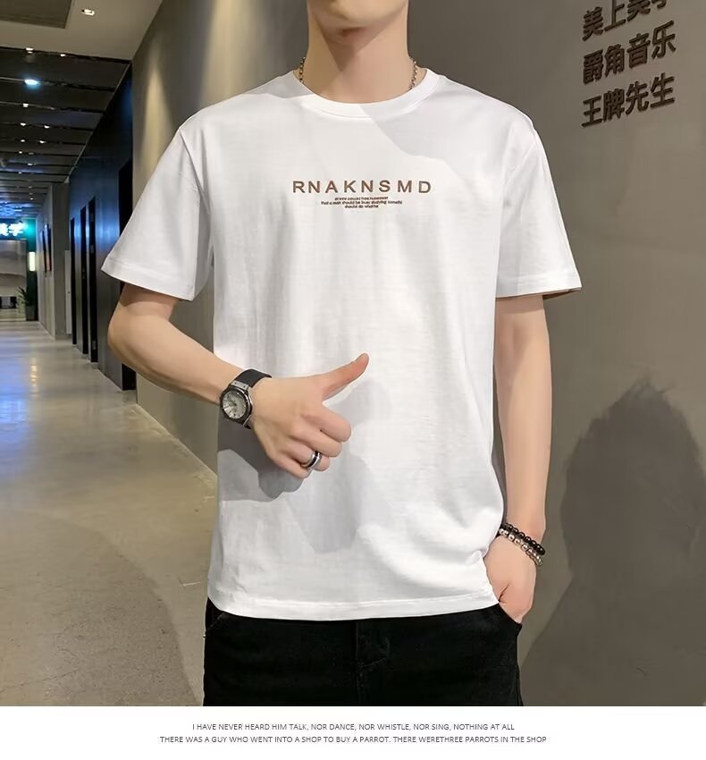 2024 뉴 여름 남성 반팔 티셔츠 순수 코튼 프린트 트렌디 남성 반팔 바디 셔츠 탑 의류스토어 가기