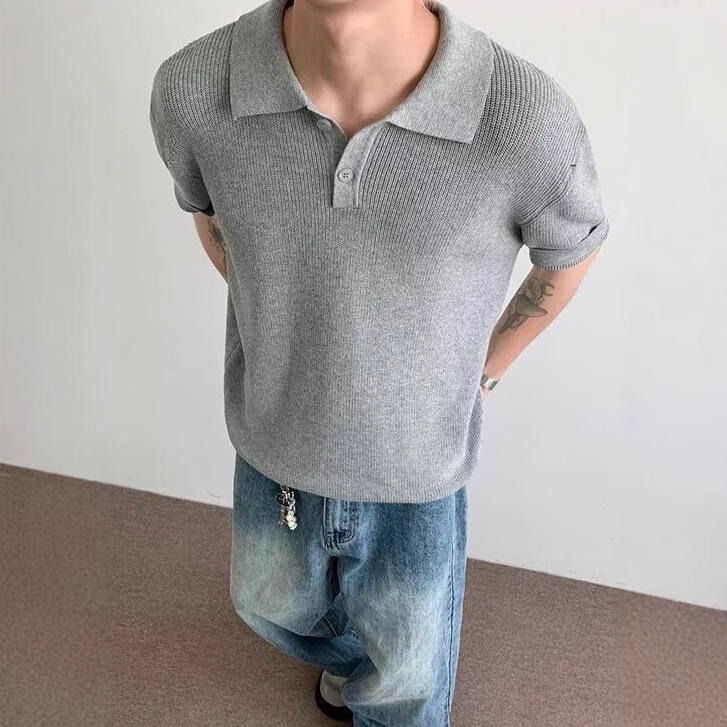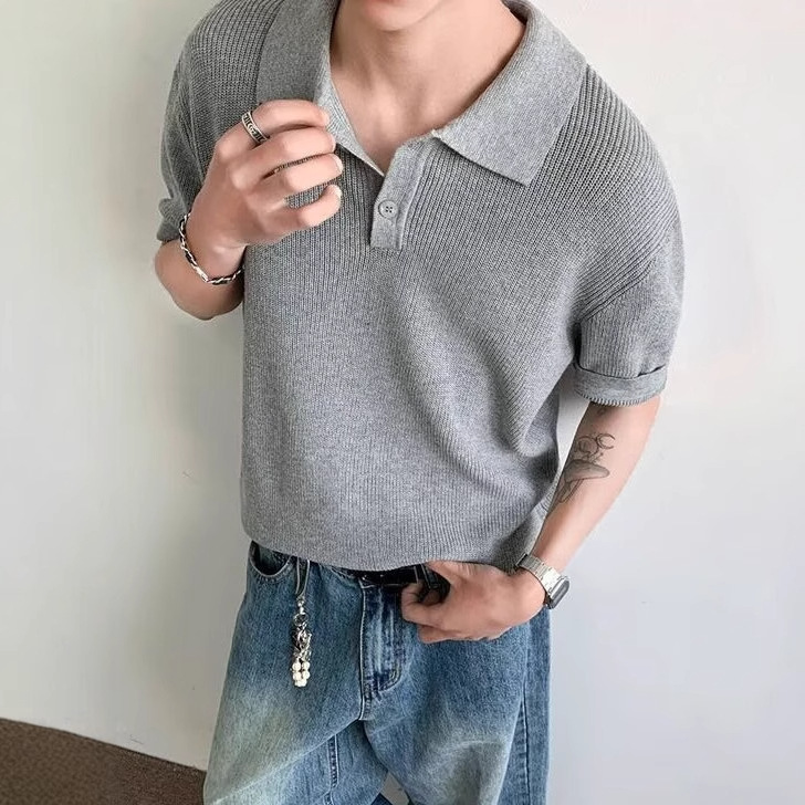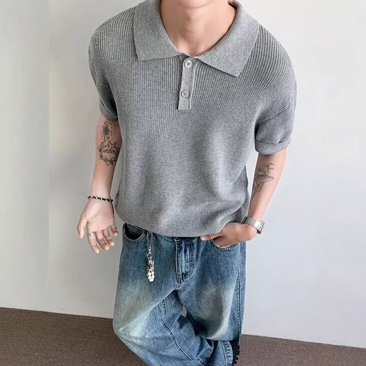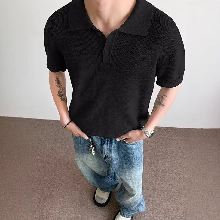 아메리칸 스몰 폴로 셔츠 2025 신상 여름 퓨어 화이트 티셔츠 라펠 오른쪽 어깨 반팔 다용도 탑스토어 가기