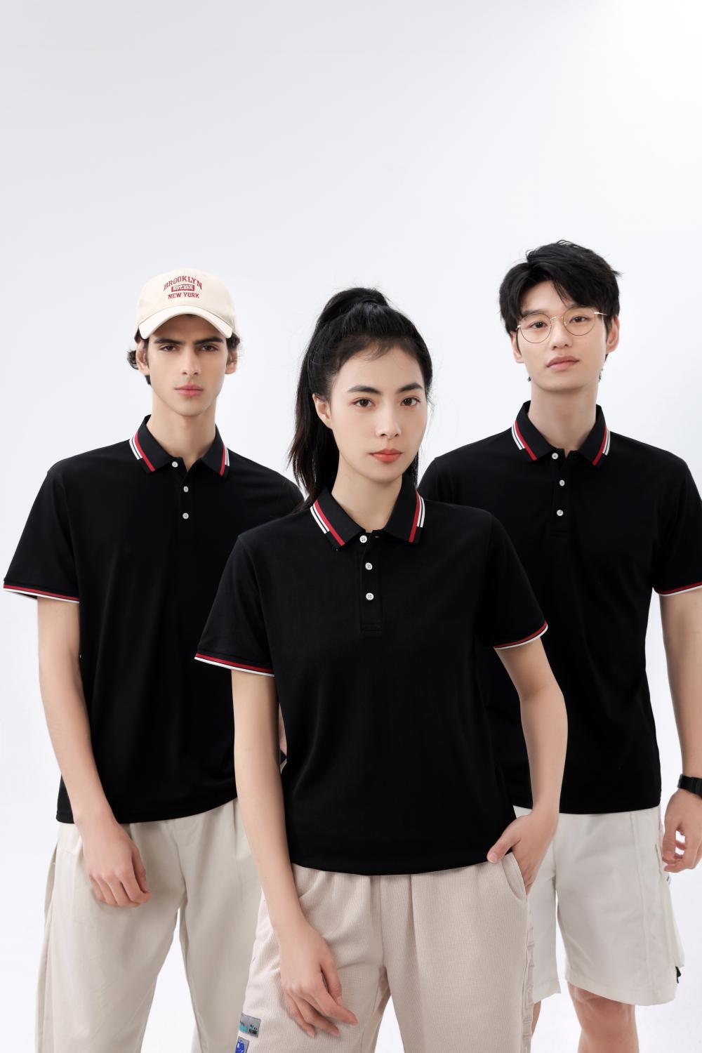 精纺棉间色领翻领短袖工作服刺绣文化衫工衣装印字
