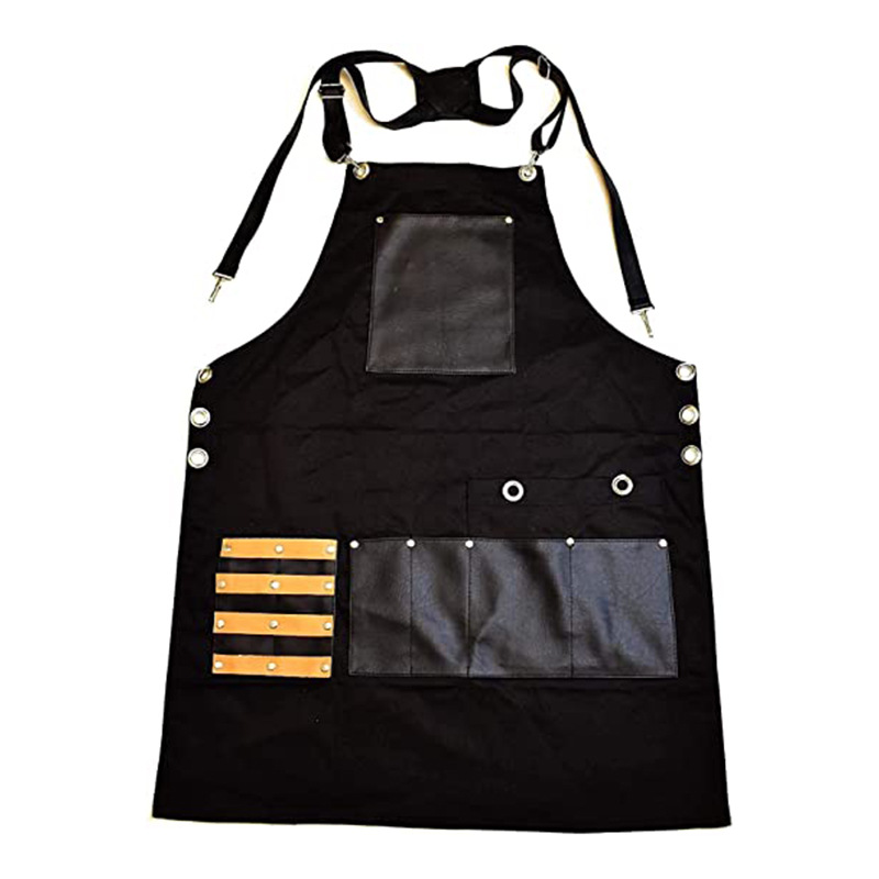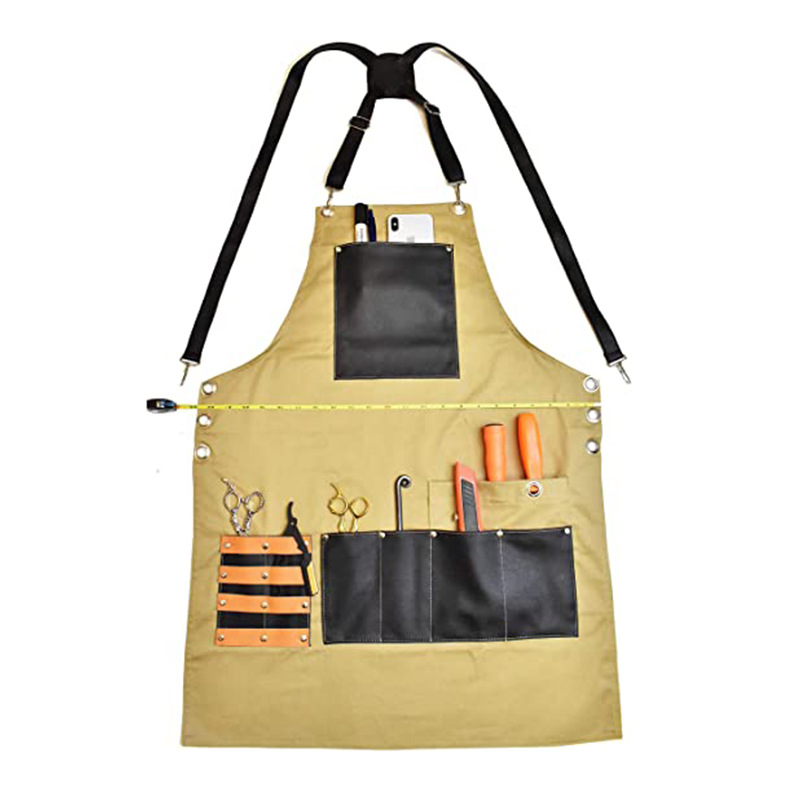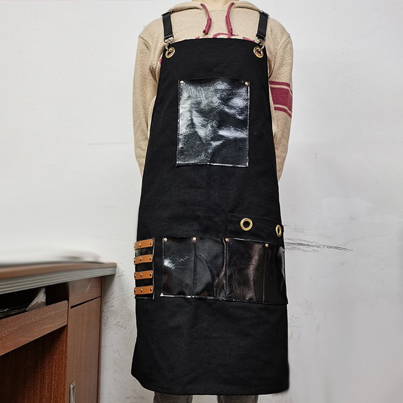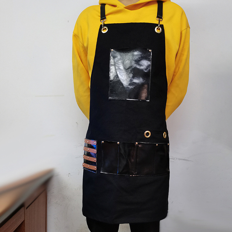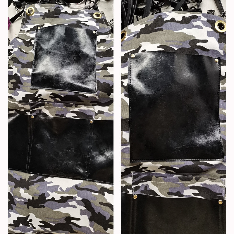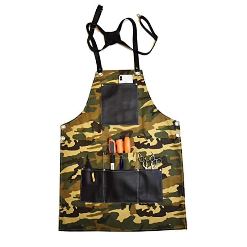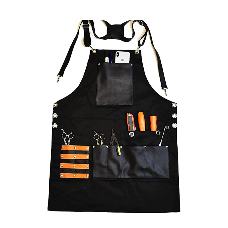 아마존 두꺼운 캔버스 앞치마 인쇄 로고 이발사 앞치마 포켓 PU 가죽 다기능 앞치마 공장 도매
