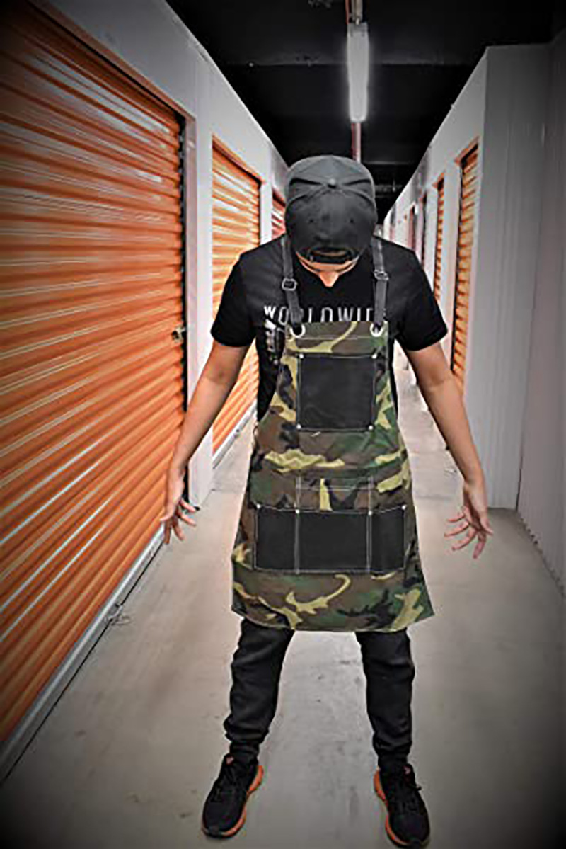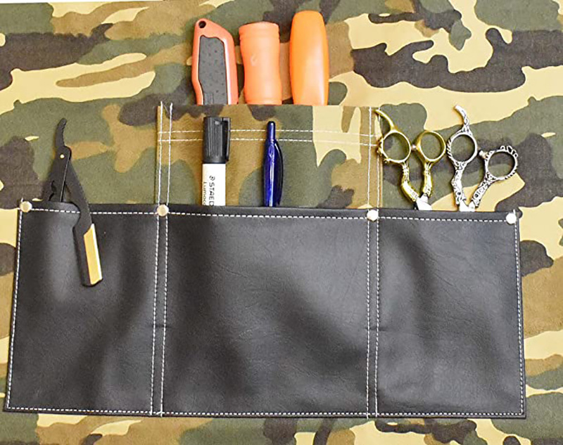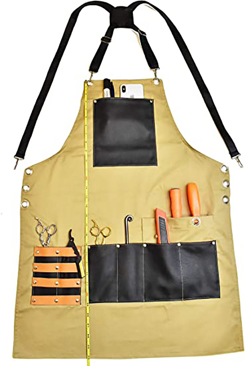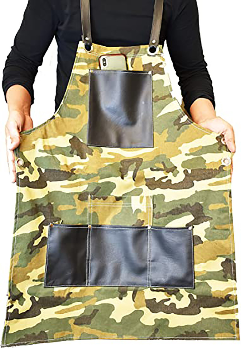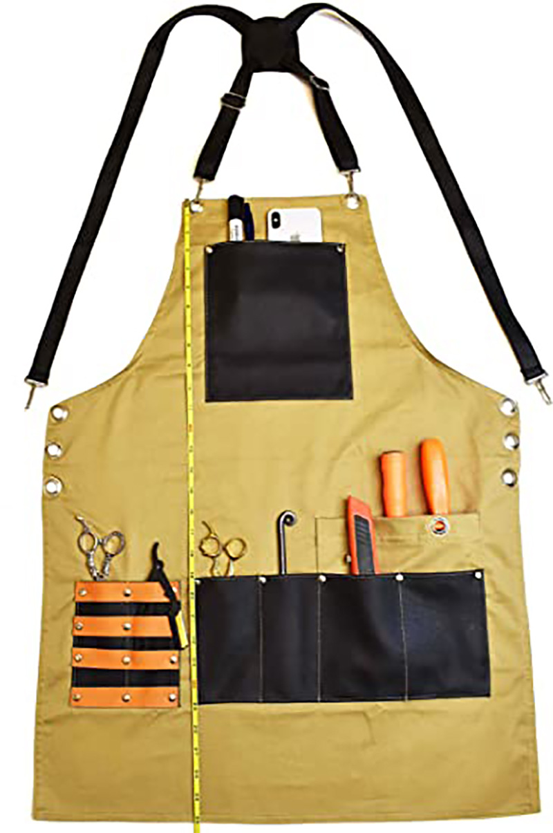 아마존 두꺼운 캔버스 앞치마 인쇄 로고 이발사 앞치마 포켓 PU 가죽 다기능 앞치마 공장 도매