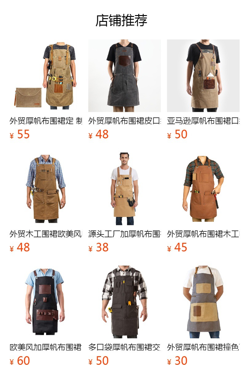 아마존 두꺼운 캔버스 앞치마 인쇄 로고 이발사 앞치마 포켓 PU 가죽 다기능 앞치마 공장 도매스토어 가기