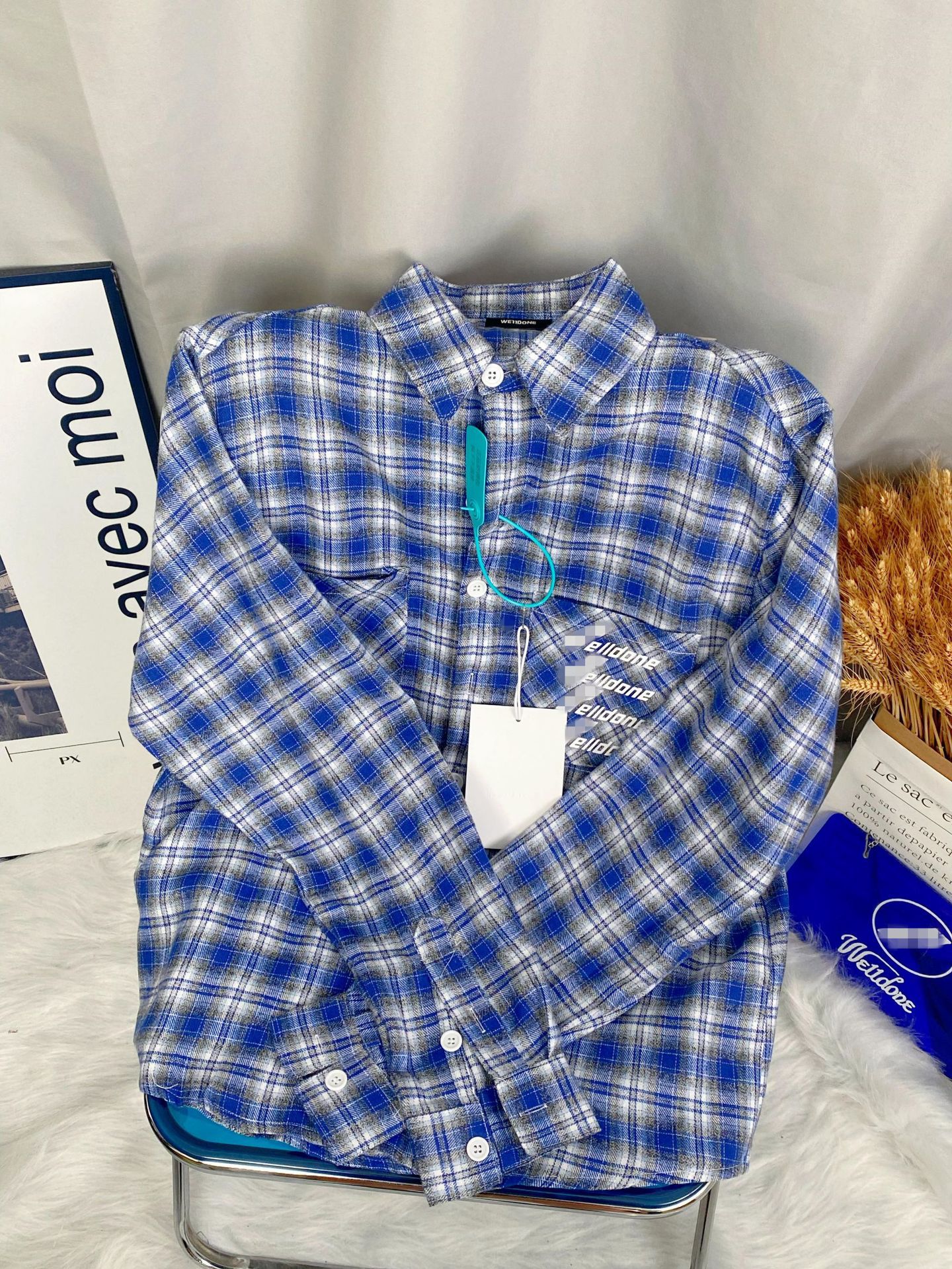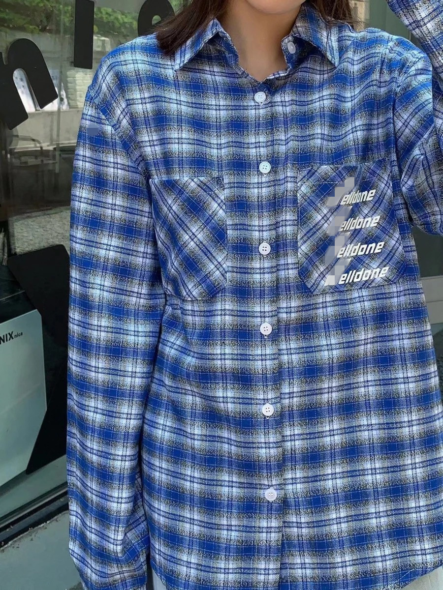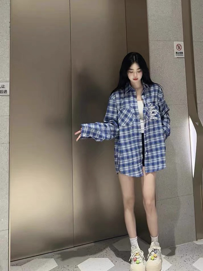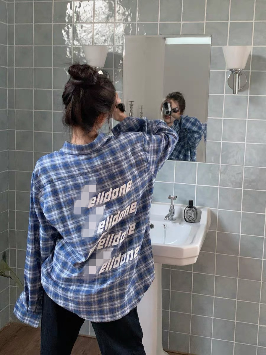 经典数据款弹幕字母LOGO印花蓝色格子衬衫休闲宽松外套外贸批发스토어 가기