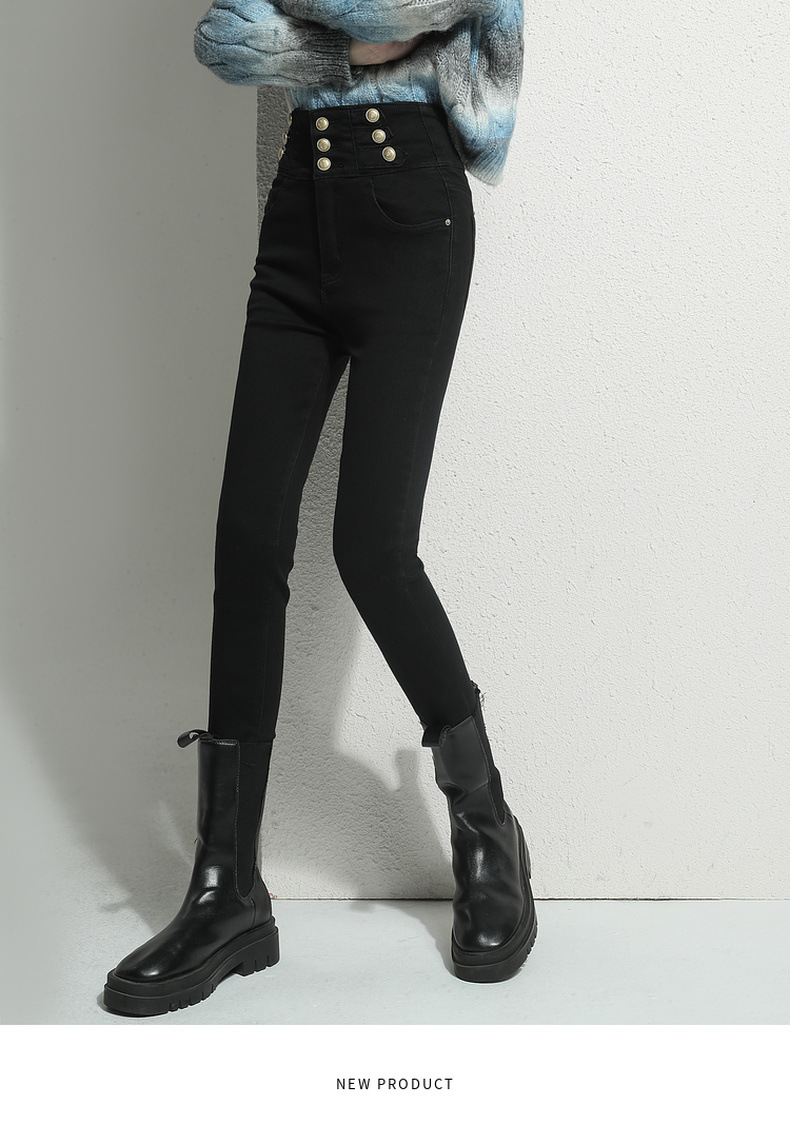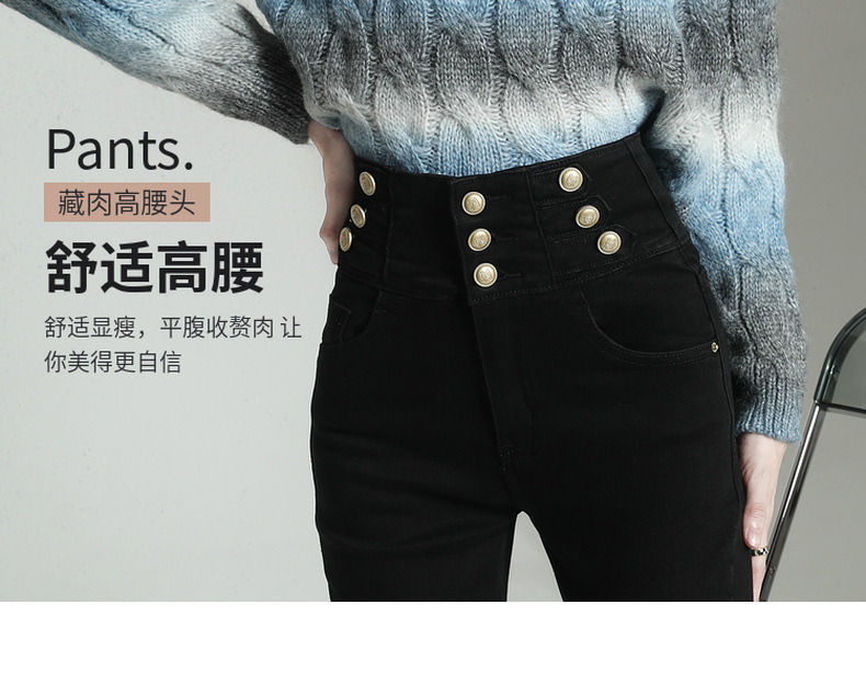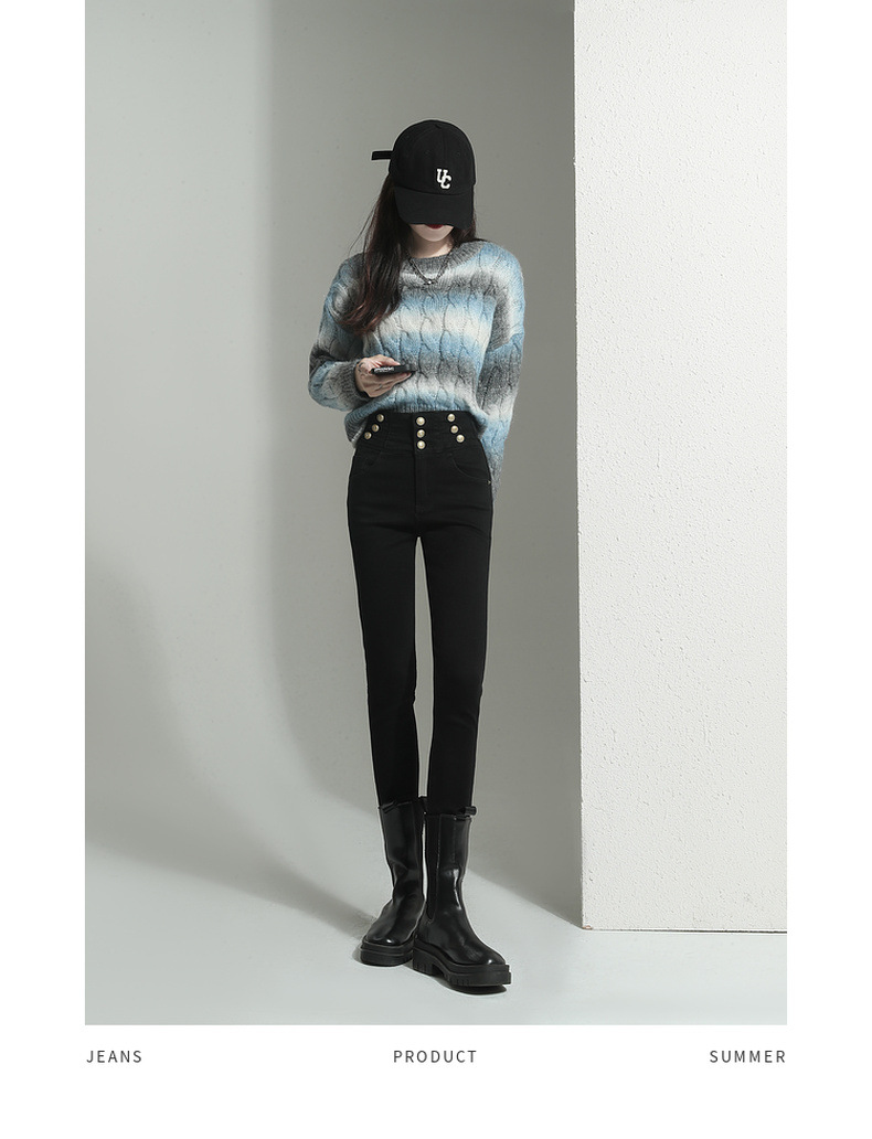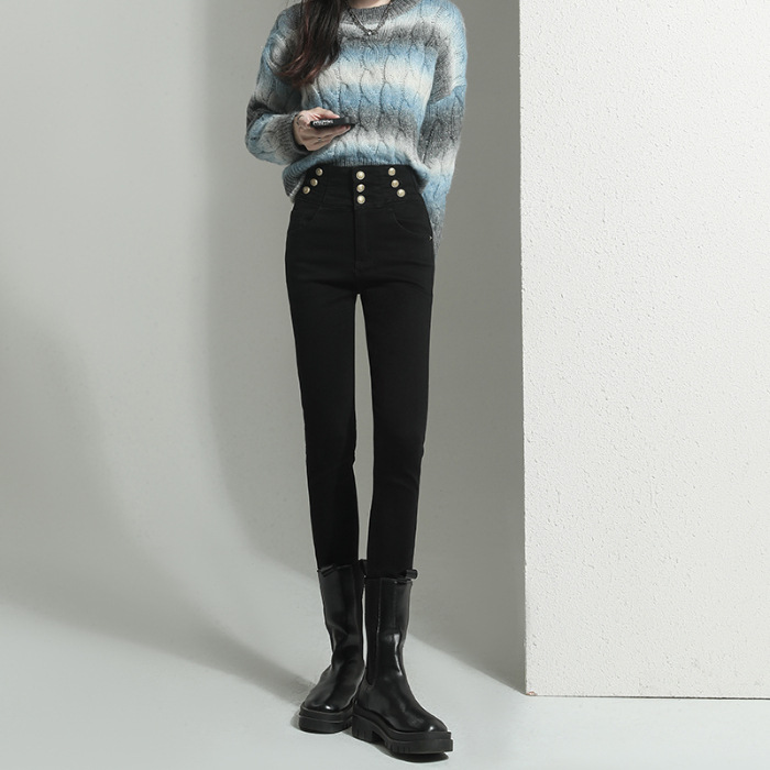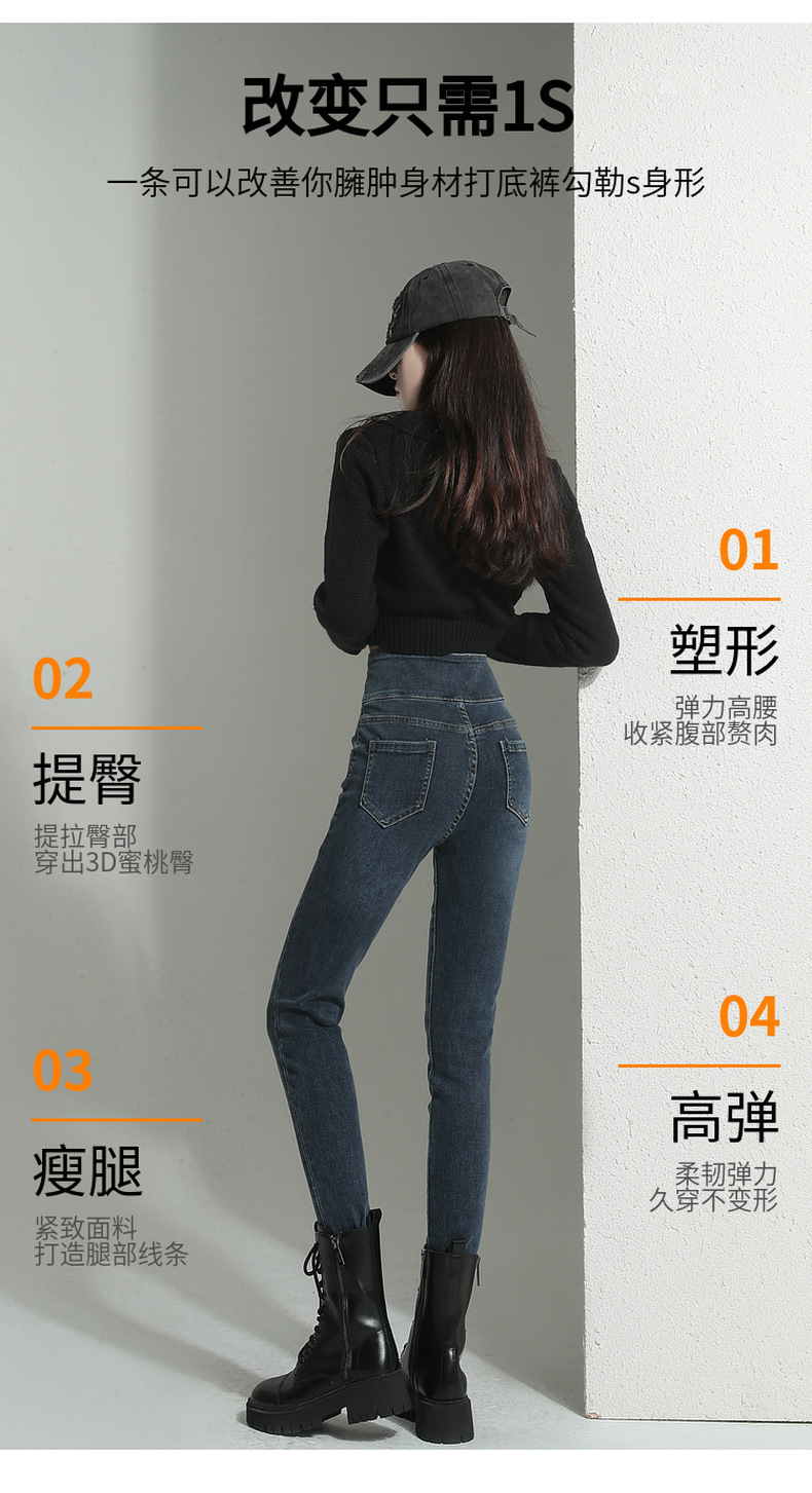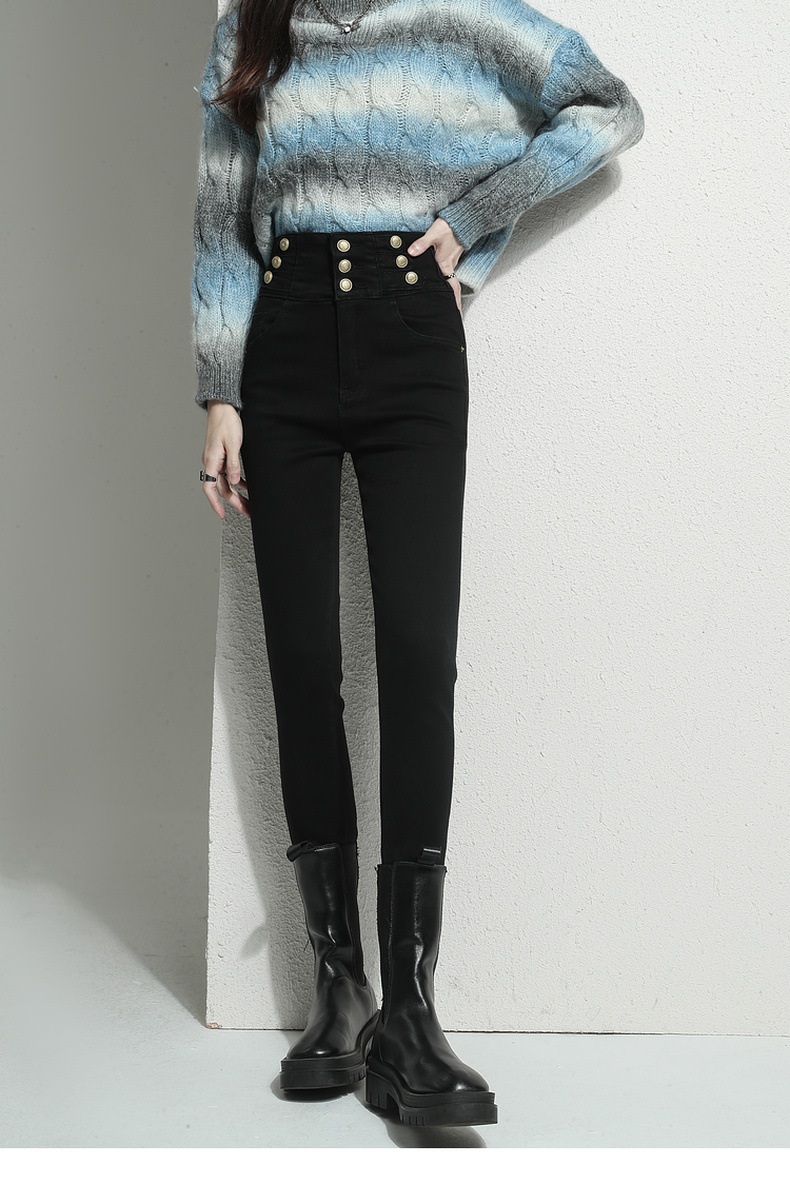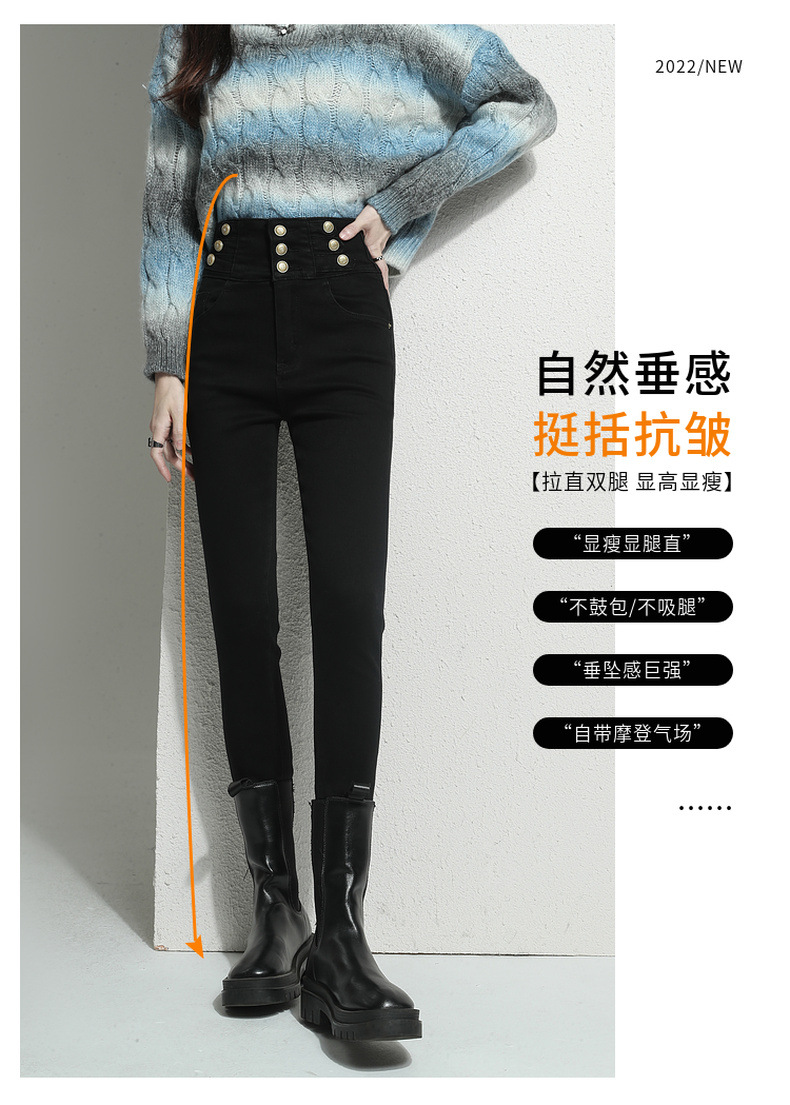 검은 청바지 여성용 스키니 팬츠 2023 새로운 봄과 가을 높은 허리 슬리밍 겨울 스트레치 기모 바지스토어 가기