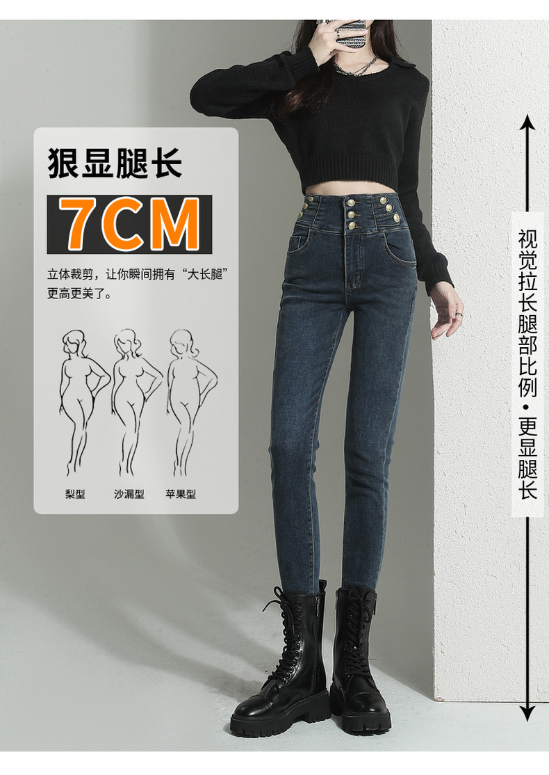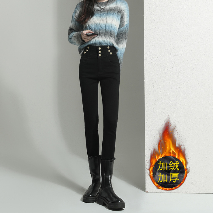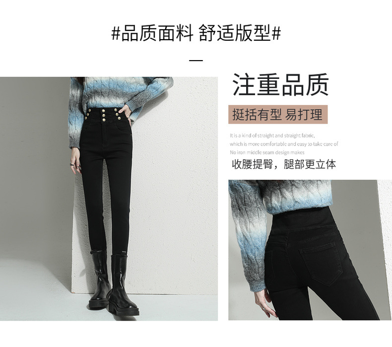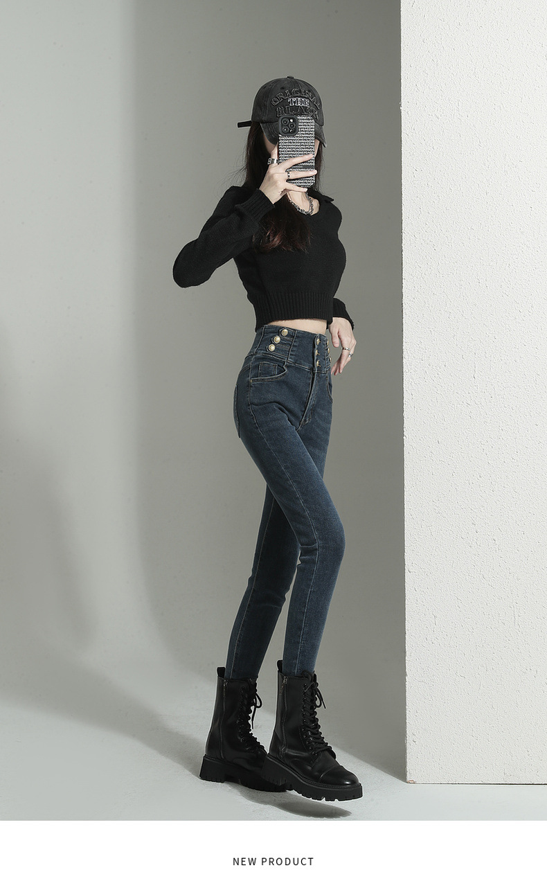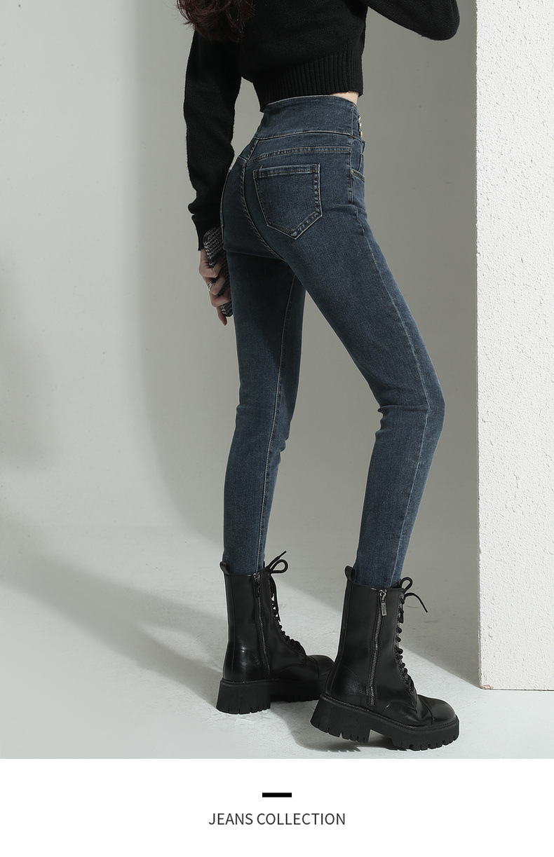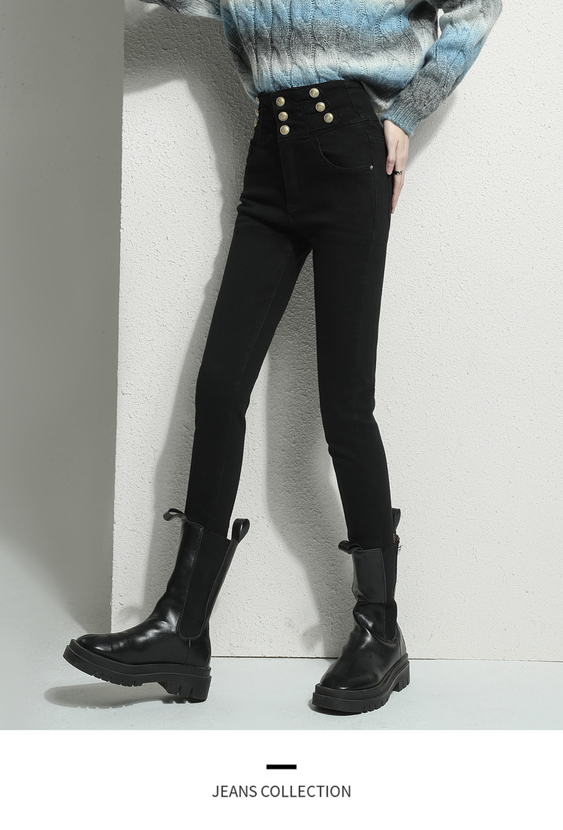 검은 청바지 여성용 스키니 팬츠 2023 새로운 봄과 가을 높은 허리 슬리밍 겨울 스트레치 기모 바지스토어 가기