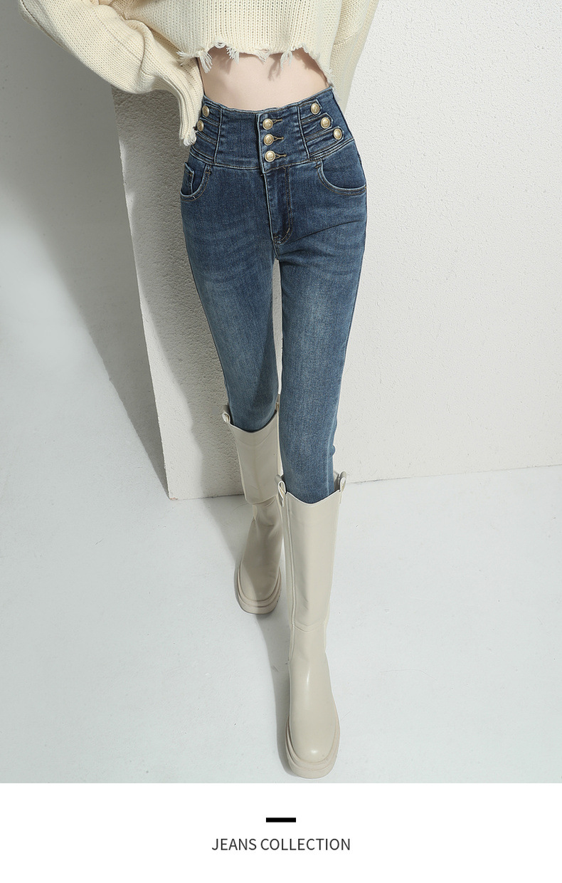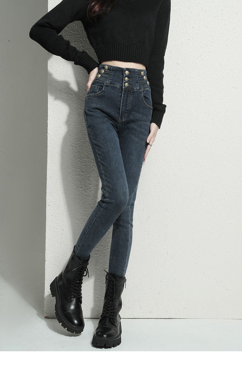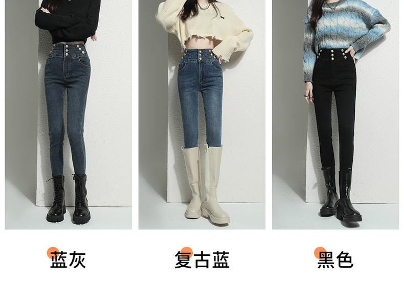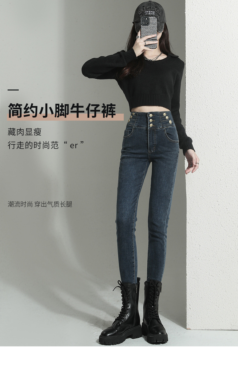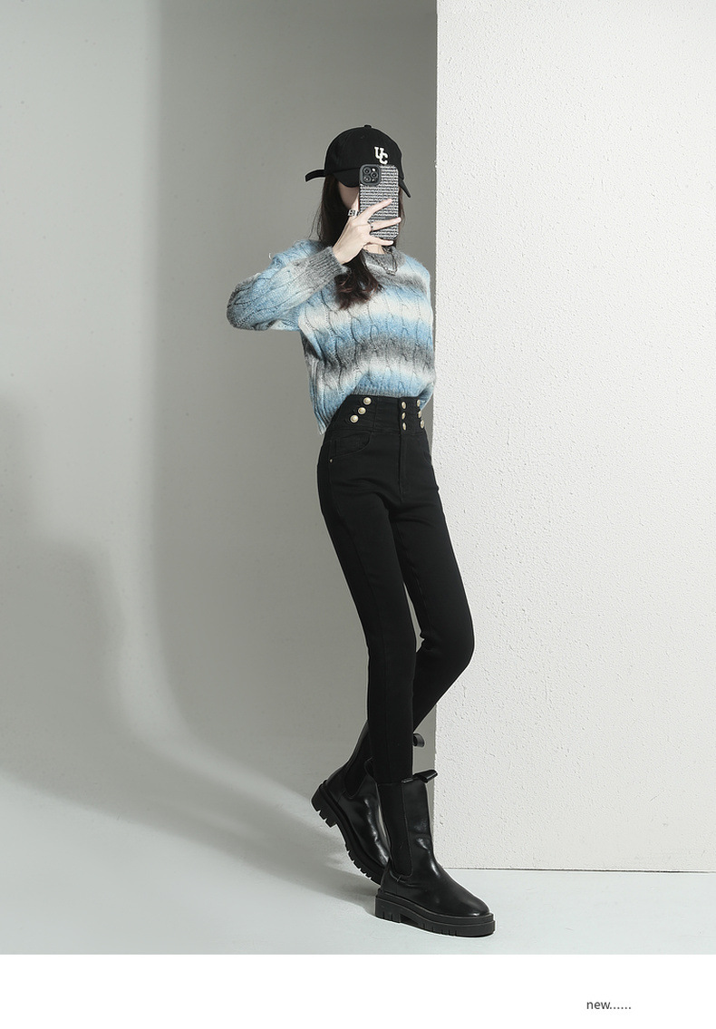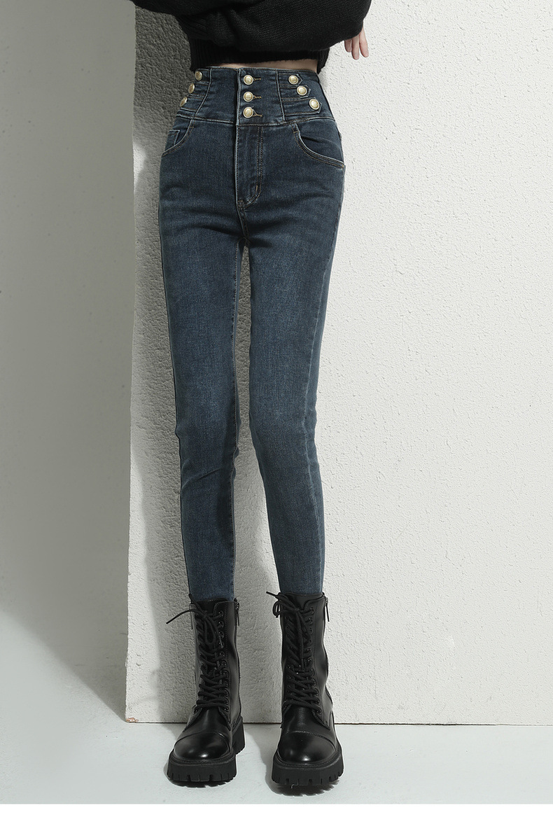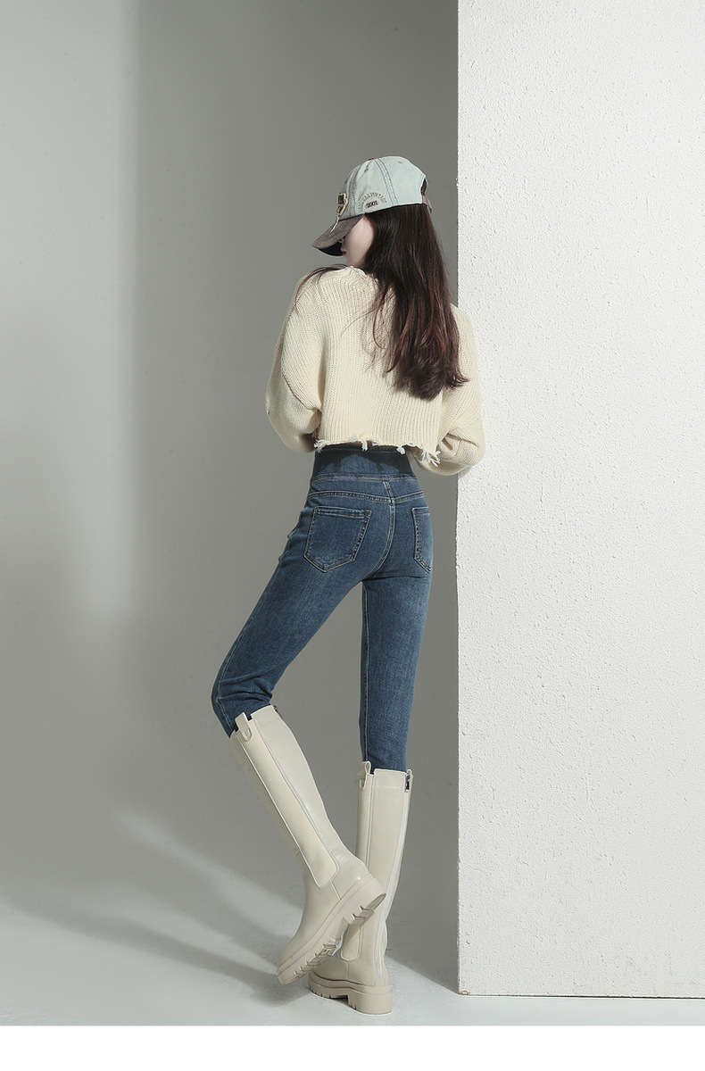 검은 청바지 여성용 스키니 팬츠 2023 새로운 봄과 가을 높은 허리 슬리밍 겨울 스트레치 기모 바지스토어 가기