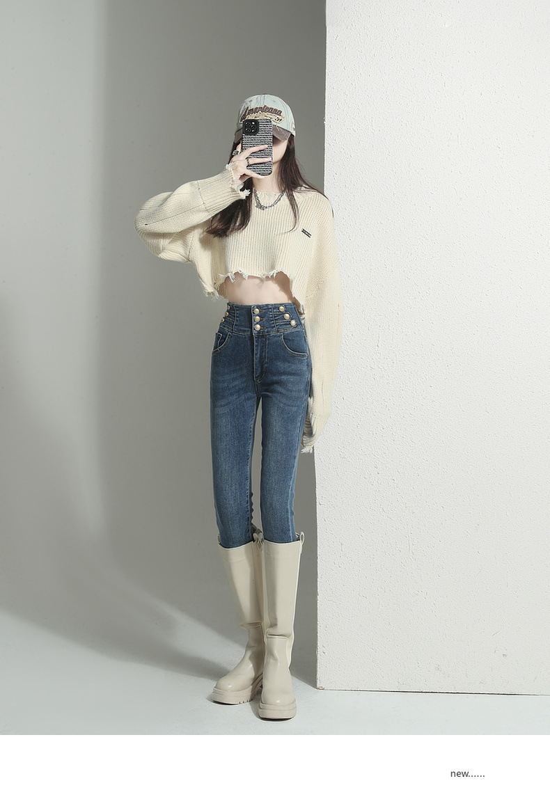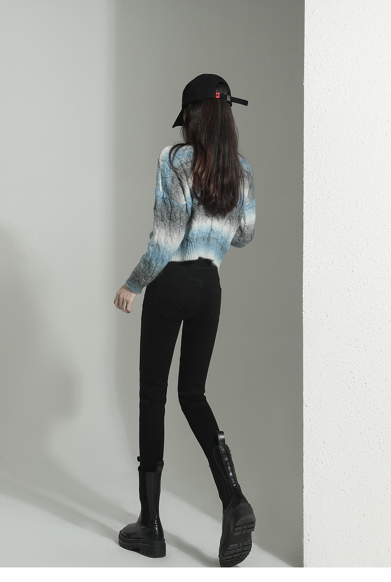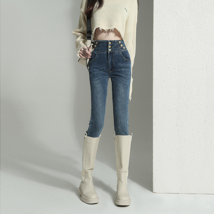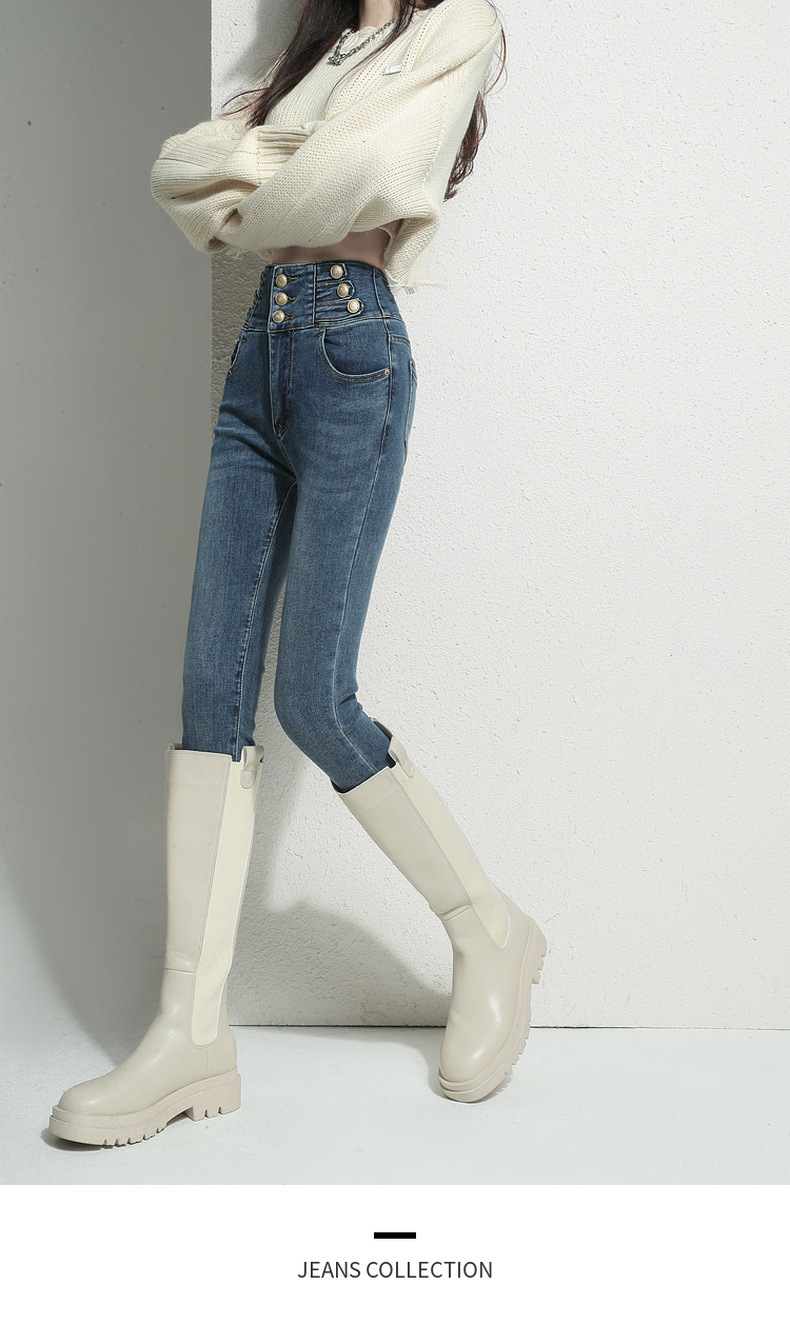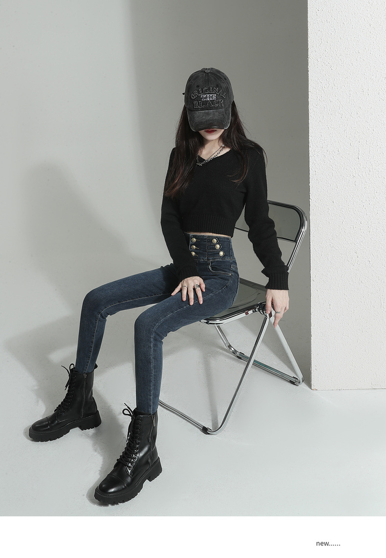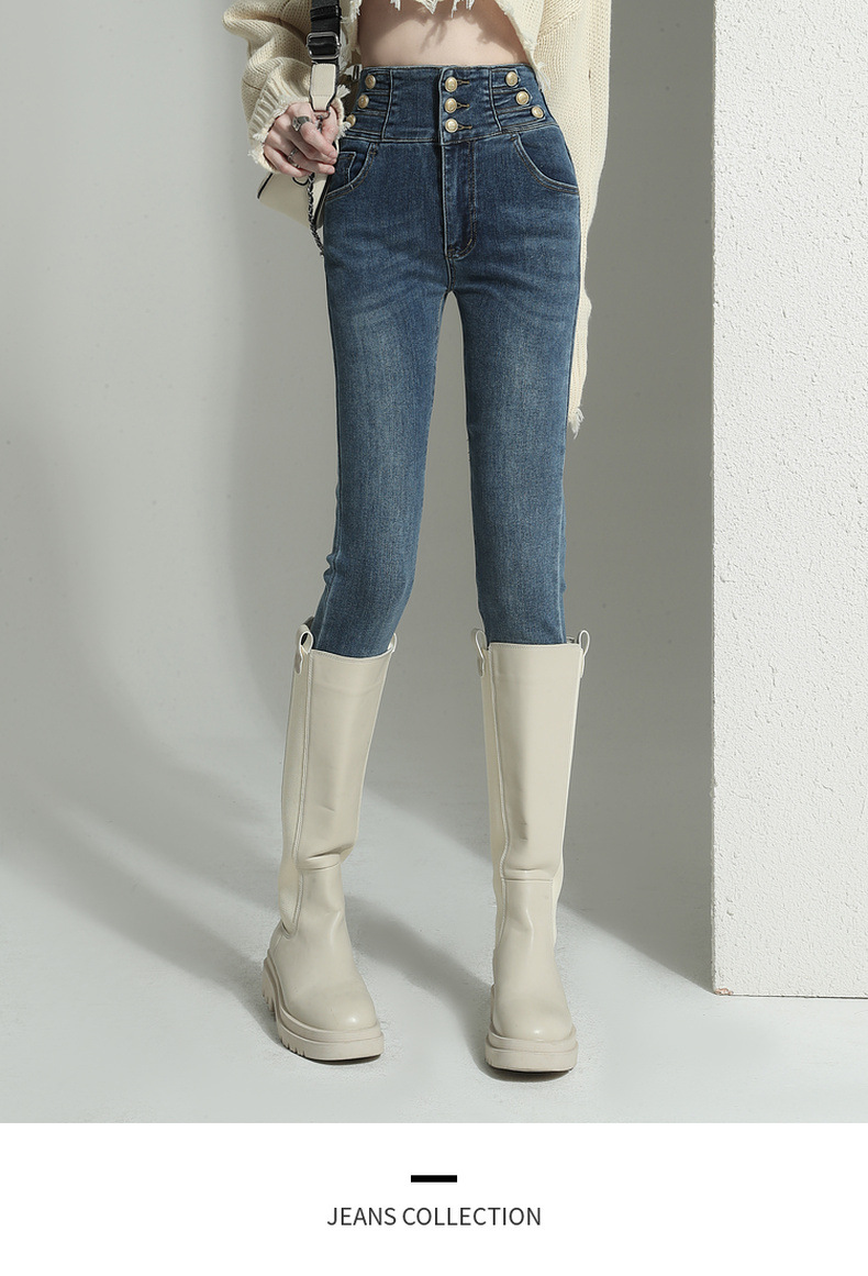 검은 청바지 여성용 스키니 팬츠 2023 새로운 봄과 가을 높은 허리 슬리밍 겨울 스트레치 기모 바지스토어 가기