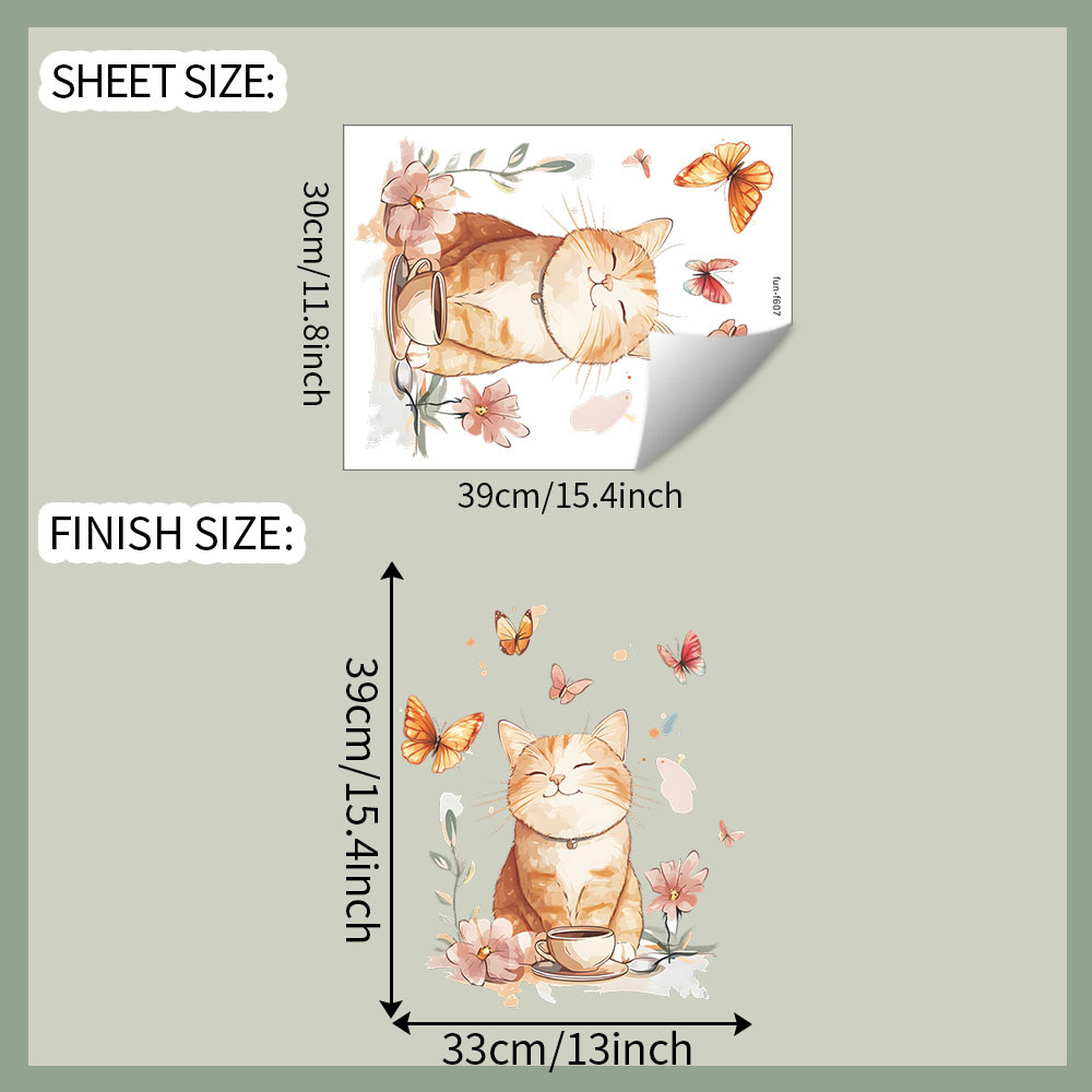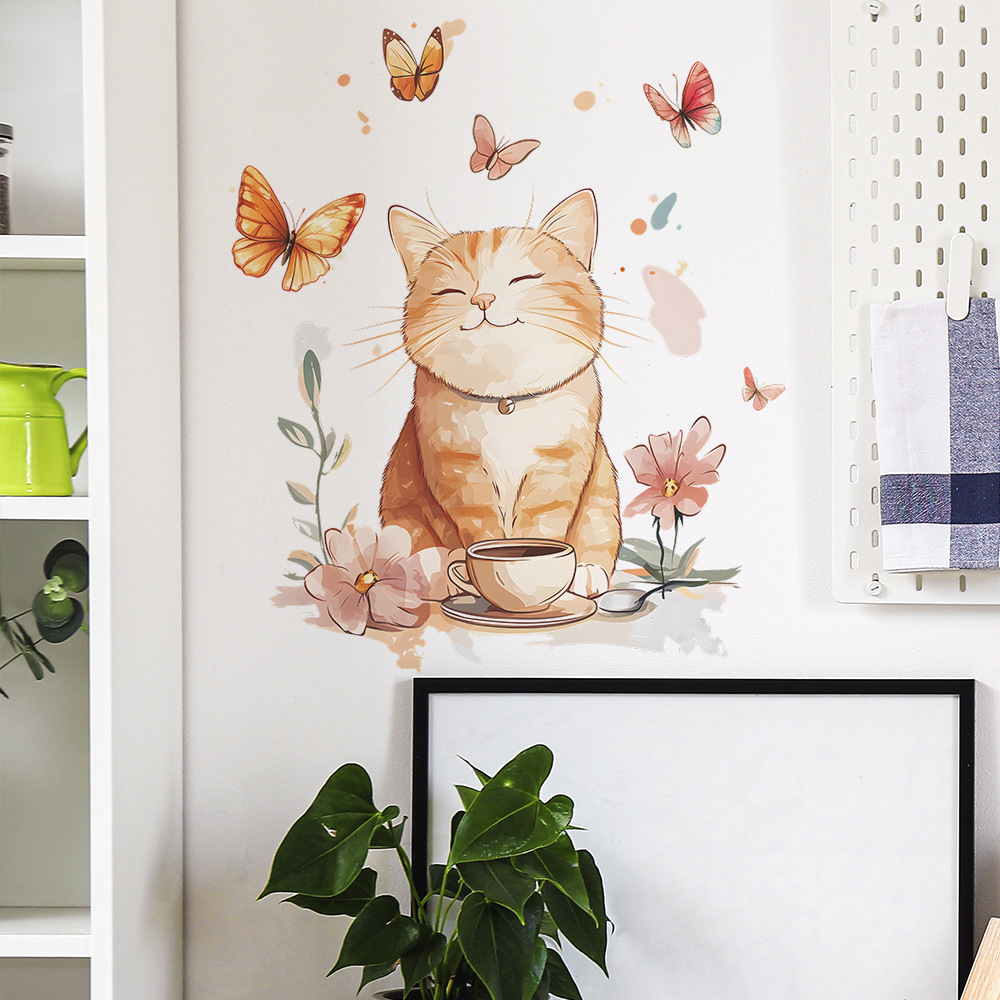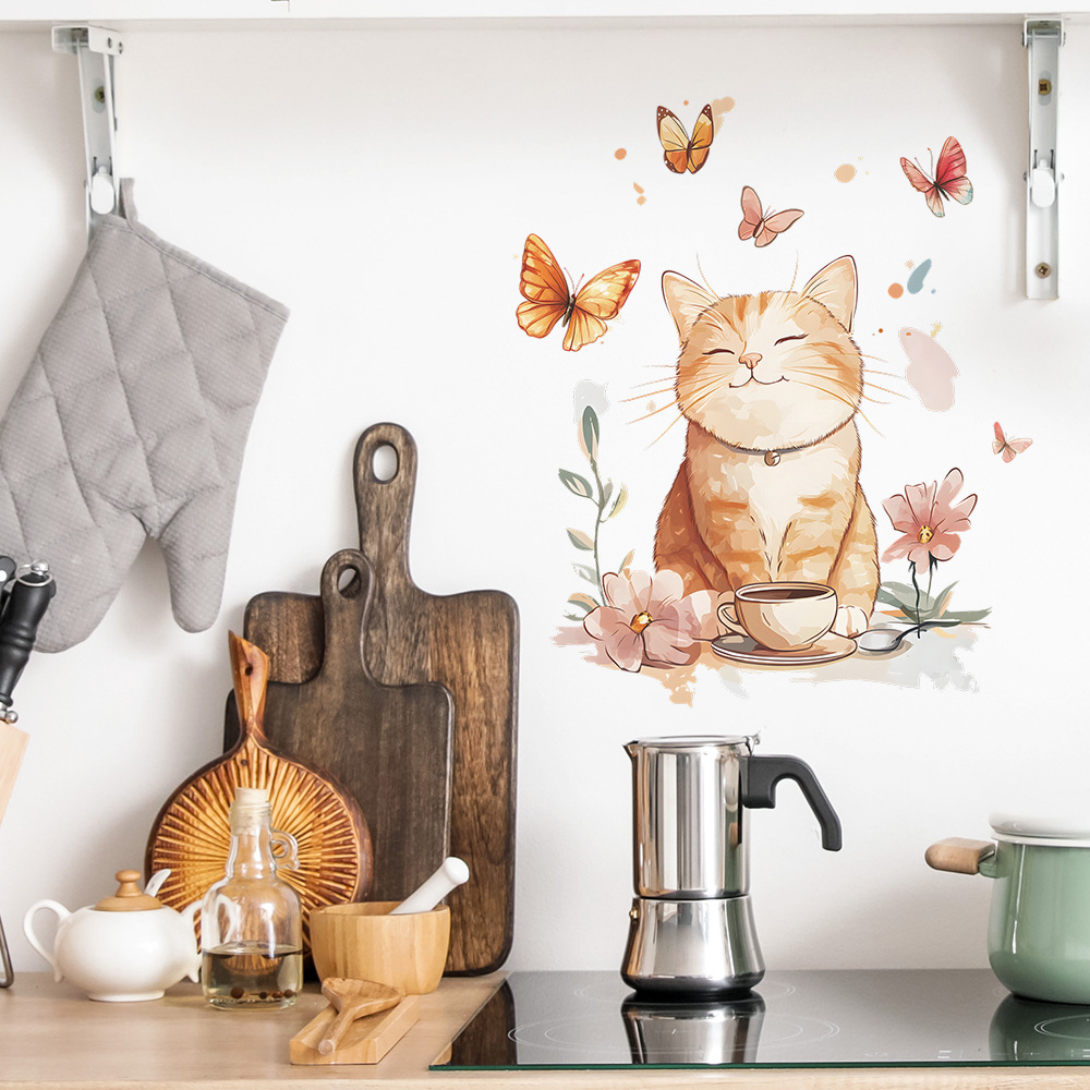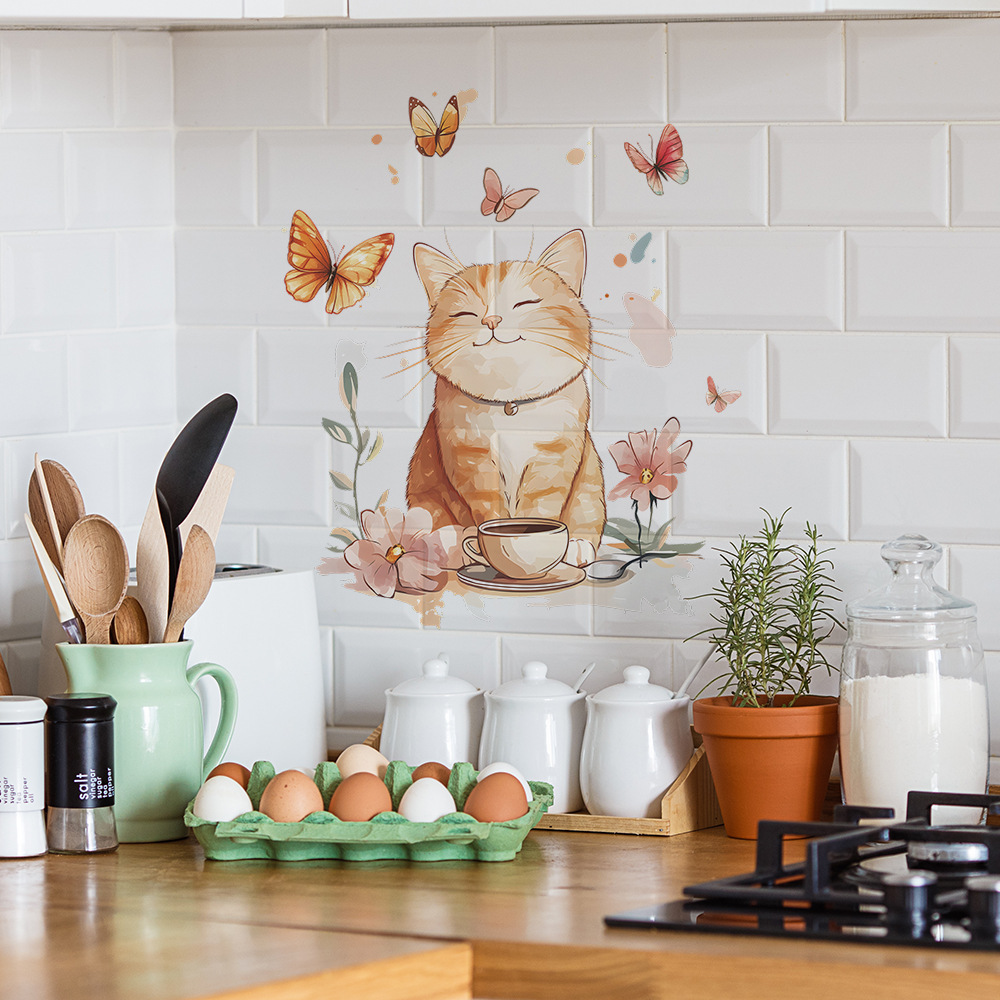 Fun-f607 통통한 오렌지 고양이 나비 주방 레스토랑 홈 벽 배경 미화 장식 벽 스티커 국경 간스토어 가기