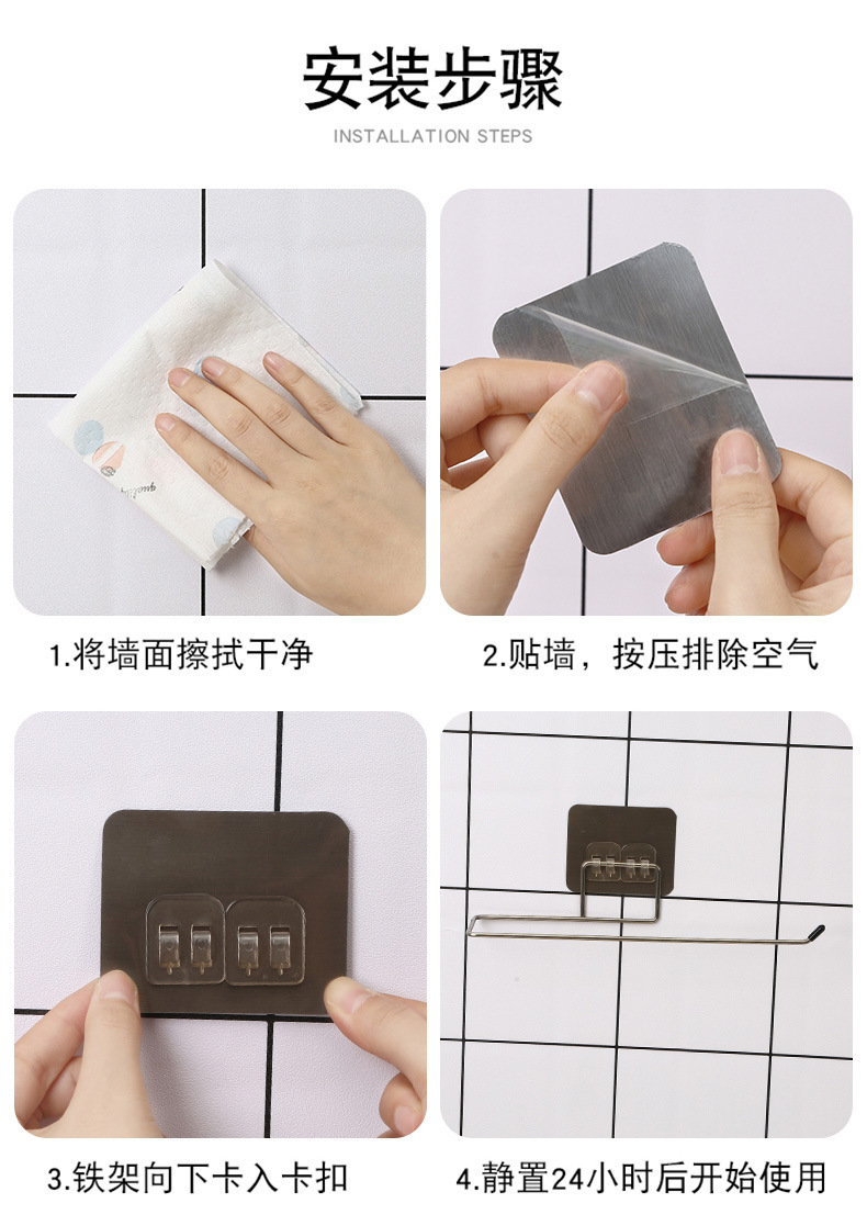 주방 종이 타월 홀더, 펀치 없는 캐비닛 롤 종이 홀더, 접시 수세미 홀더, 접착 필름 걸레 보관 걸이