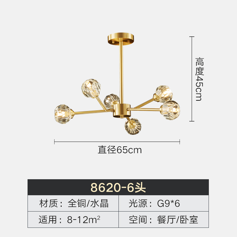 모든 구리 거실 샹들리에 북유럽 인터넷 유명 크리스탈 램프 콩줄기 램프 간단한 현대 빛 고급 침실 다이닝 룸 중산 램프