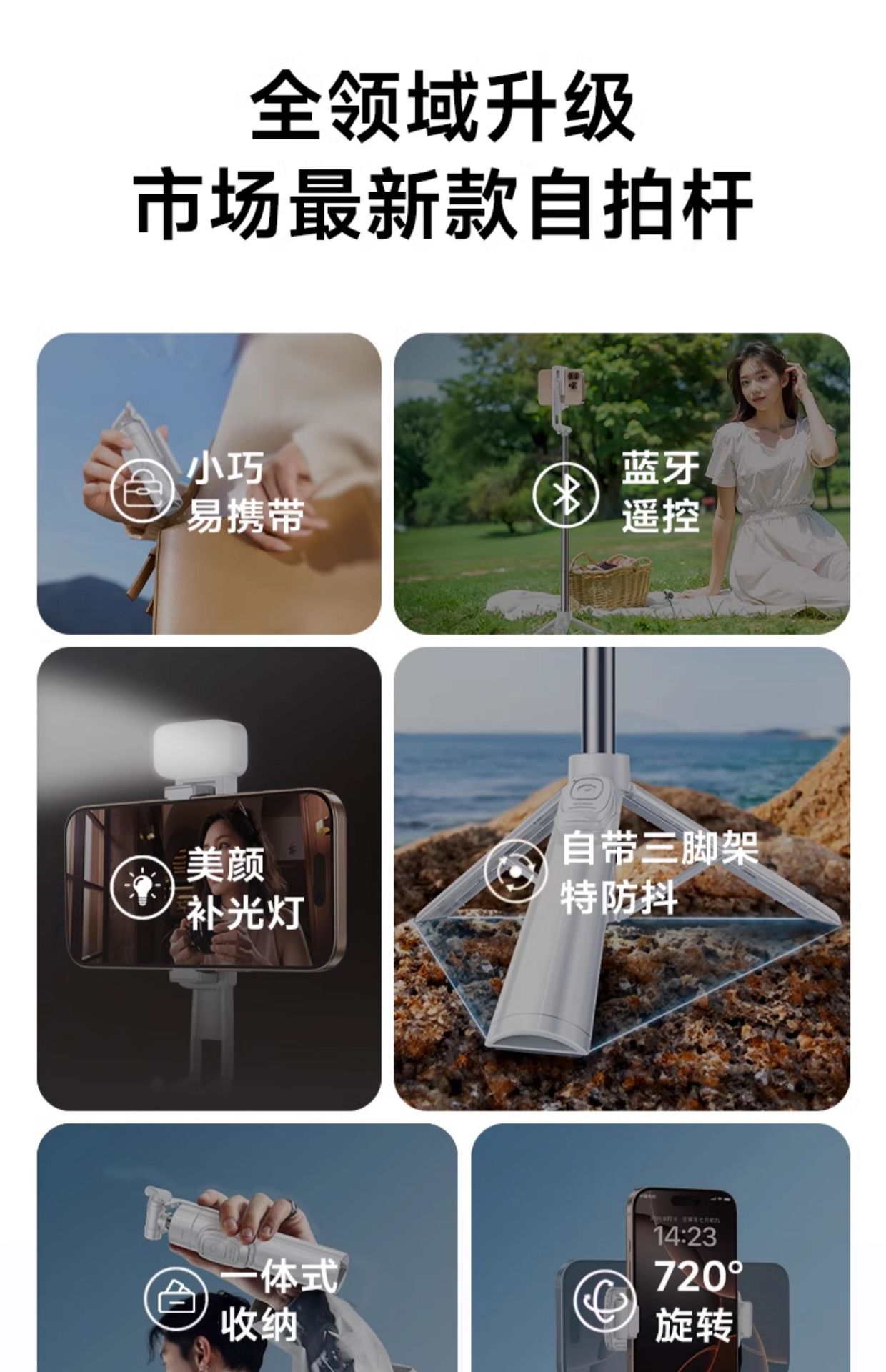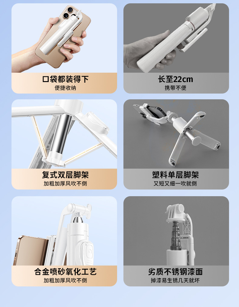 미니 셀카봉 2025 새로운 여행용 휴대용 삼각대 사진 유물 범용 휴대폰 360도 회전스토어 가기