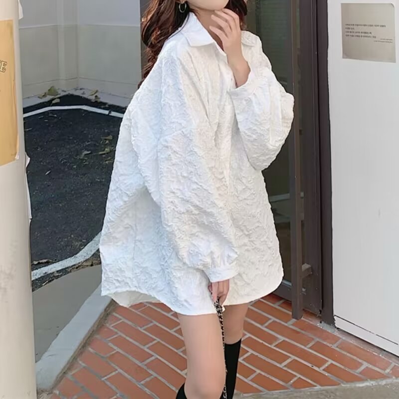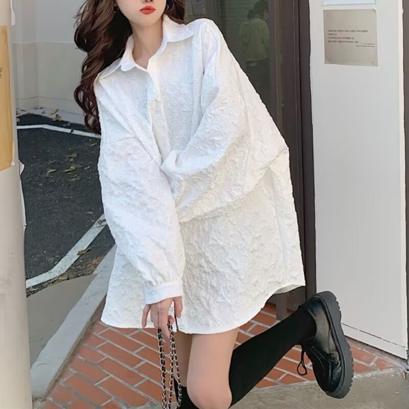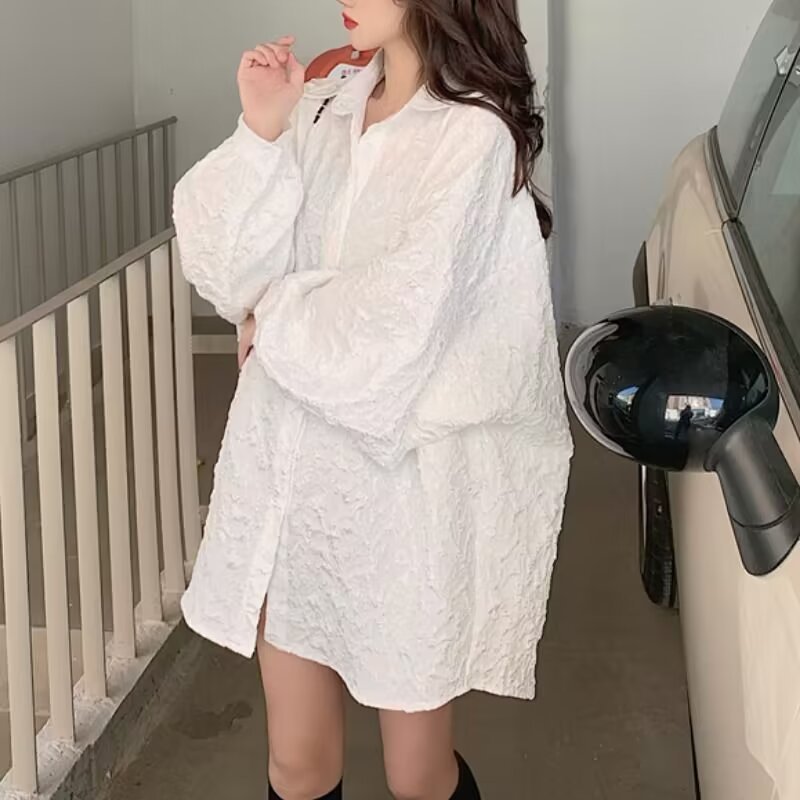 흰색 셔츠 여성 여름 2025 새로운 디자인 틈새 한국 스타일 셔츠 긴팔 자외선 차단 봄, 가을 재킷스토어 가기