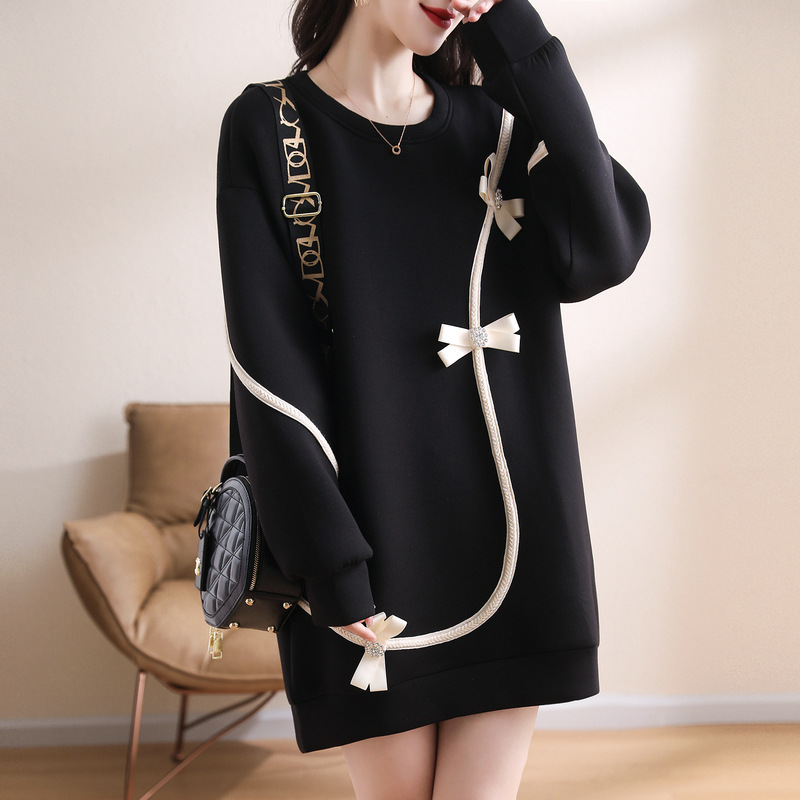 2023 새로운 패션 땀 우아한 활 자수 느슨한 중간 길이 탑