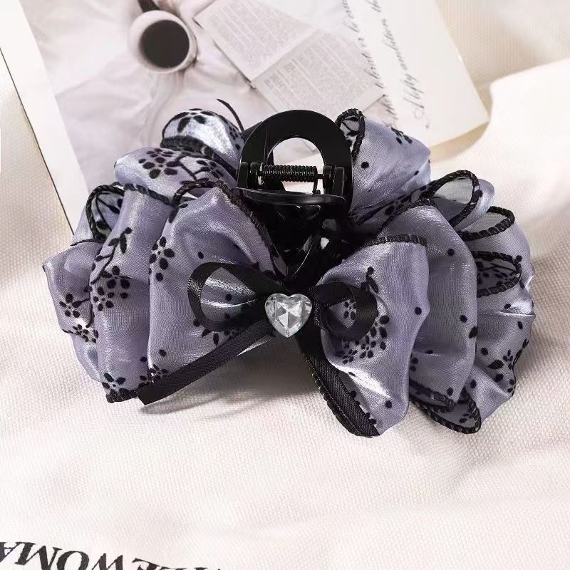 Bowknot Organza 꽃 버드 대형 그랩 클립 클라우드 메쉬 라이트 럭셔리 백 헤드 상어 헤어 핀 여성 우아한 헤어 액세서리