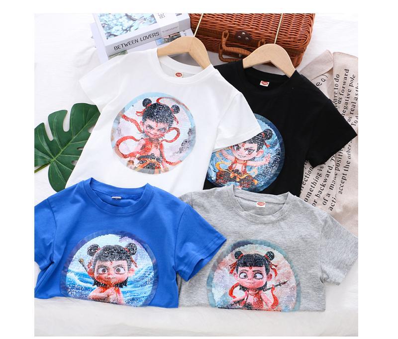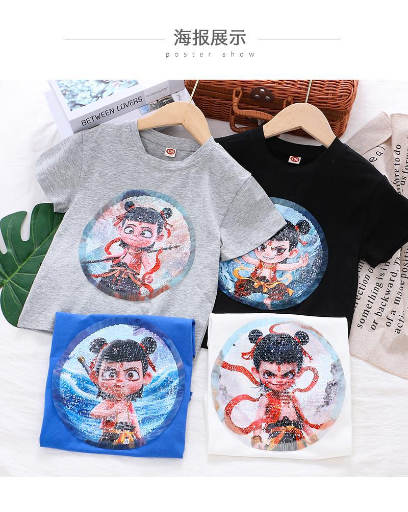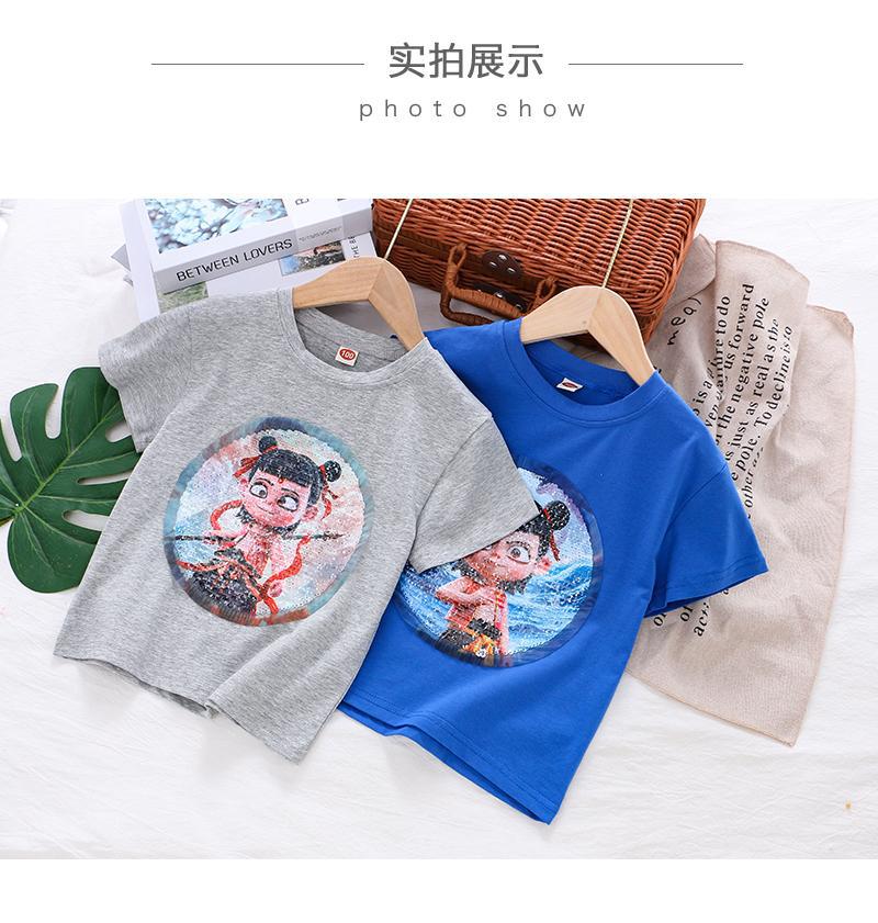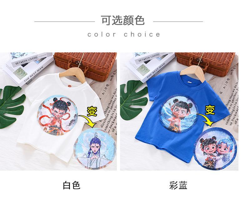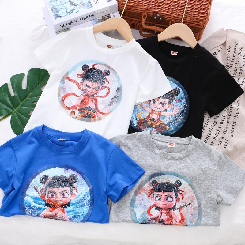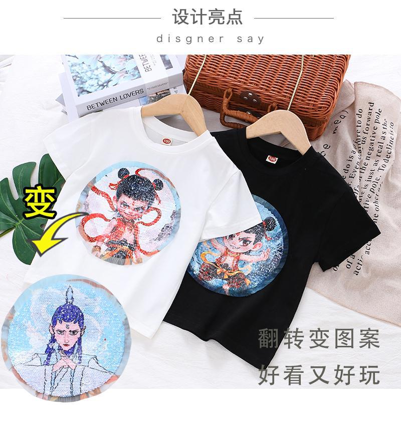 순면 대형 어린이 나하 나하이 짧은 소매 소년과 소녀 여름 새로운 Ao C 색상 변경 속편 어린이 티셔츠
