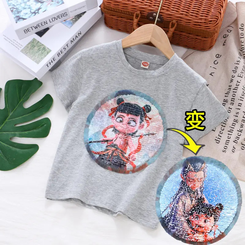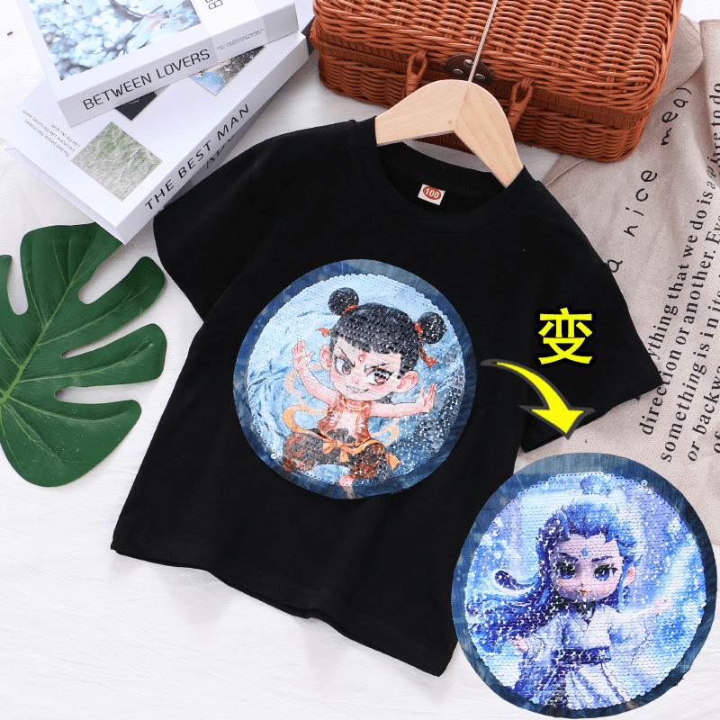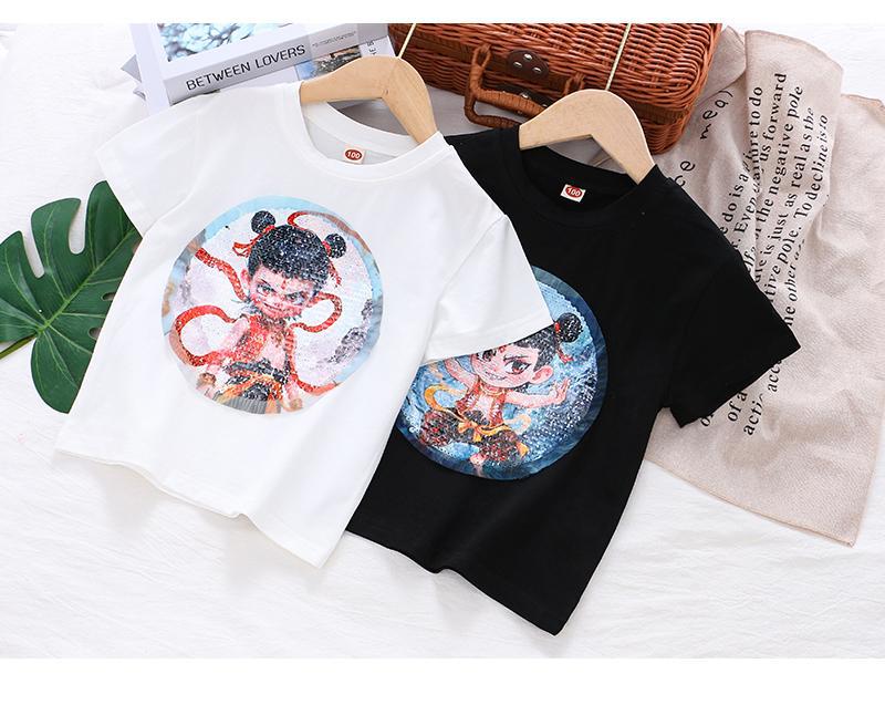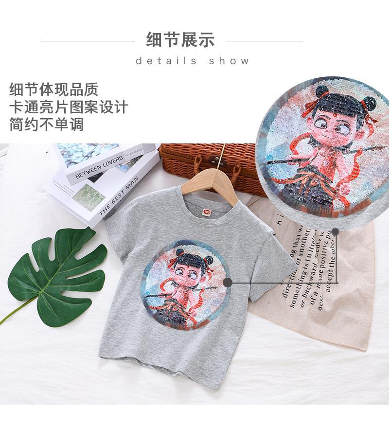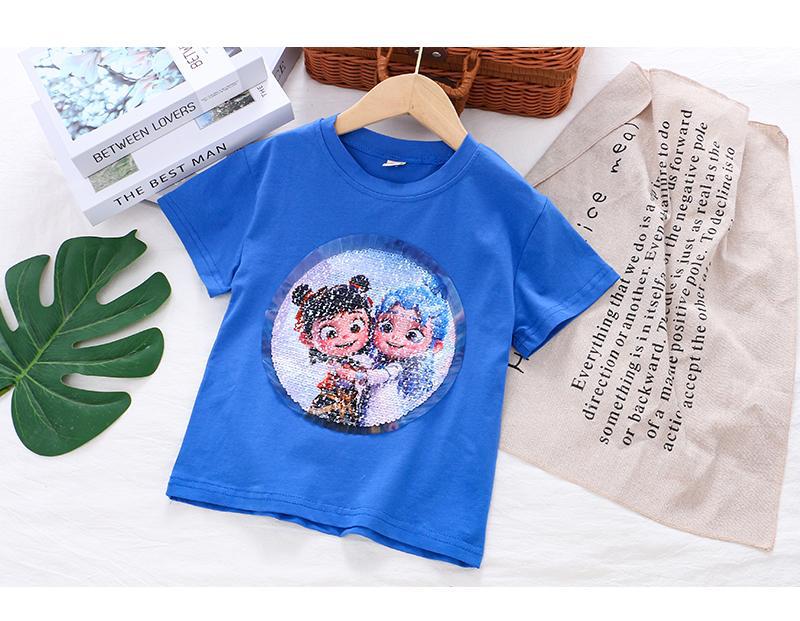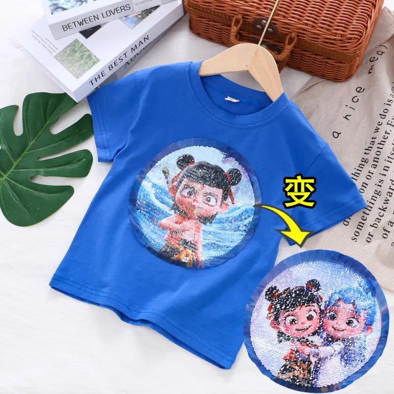 순면 대형 어린이 나하 나하이 짧은 소매 소년과 소녀 여름 새로운 Ao C 색상 변경 속편 어린이 티셔츠