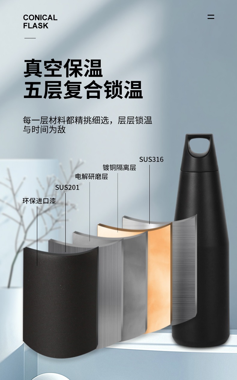 국경 작은 입 손잡이 원추형 병 스테인리스 등산 여행 찻잔 야외 대용량 열 절연 주전자스토어 가기