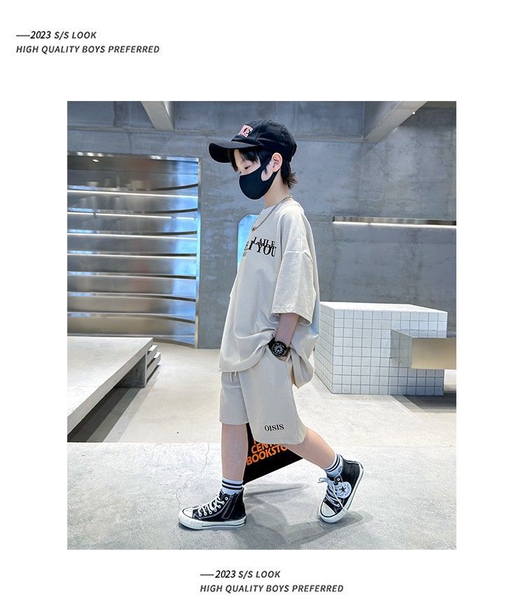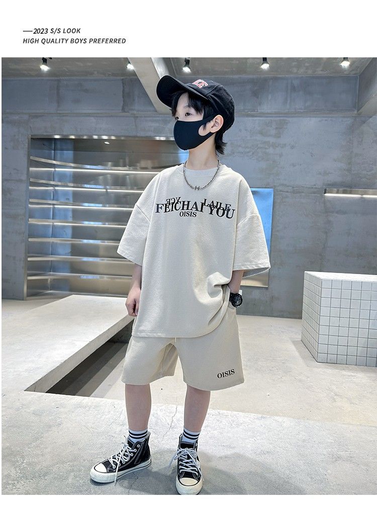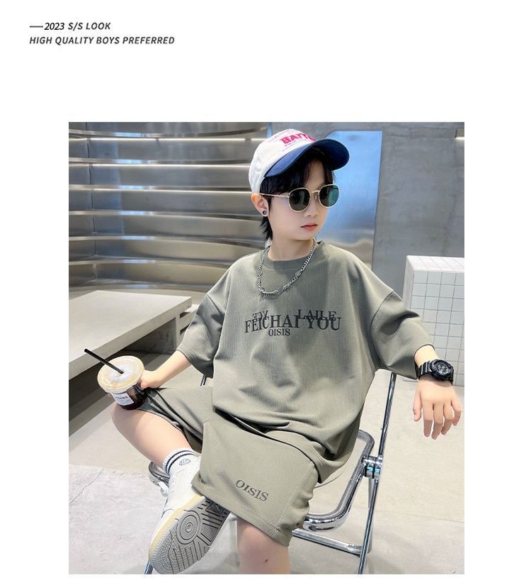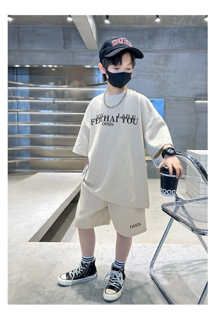 6535 면 생선 비늘 + 뒷가방] 남아 여름 정장 2025 신작 아동복 여름 반팔 티셔츠 투피스 세트스토어 가기