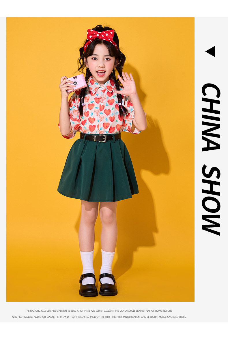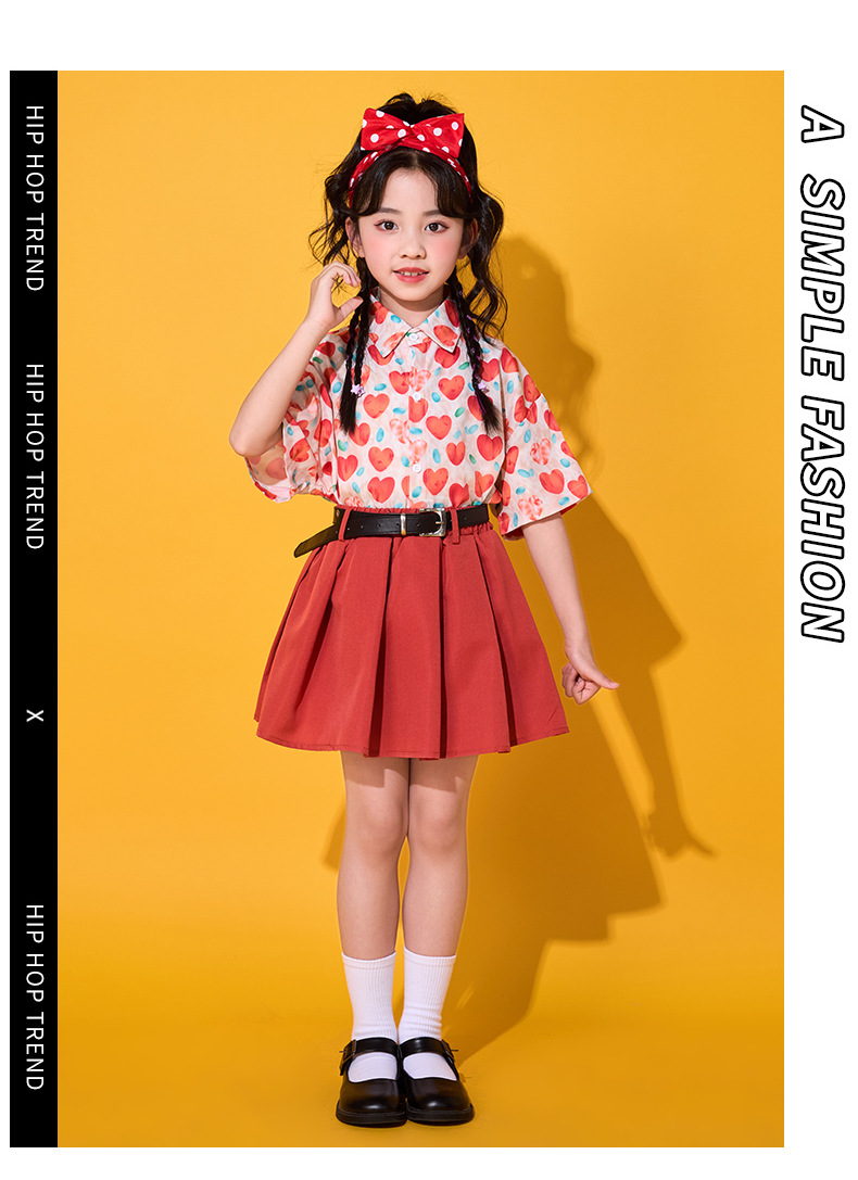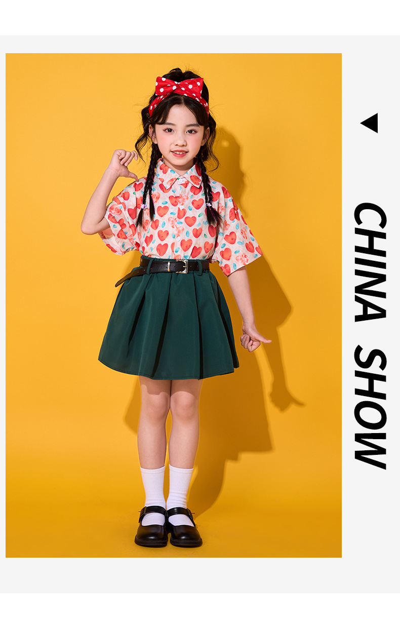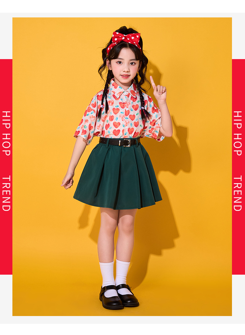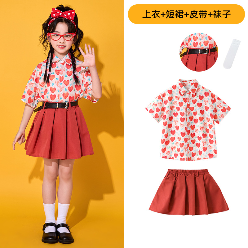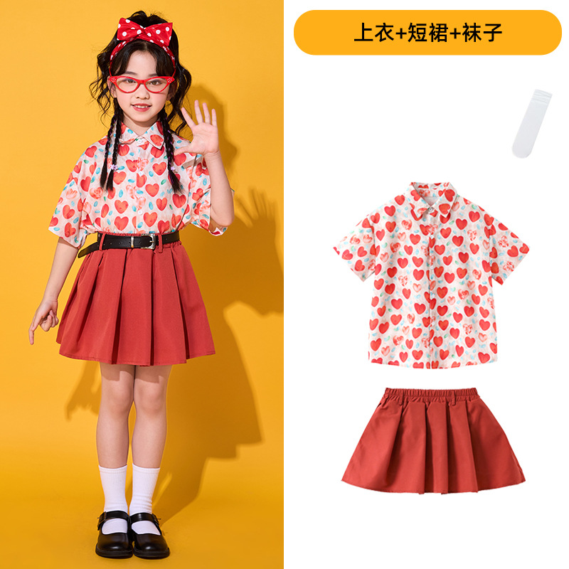 6 월 1 일 어린이를위한 어린이 치어 리더 세트, 유치원을위한 초등학생 스포츠 세트 레트로 사랑 홍콩 스타일 셔츠 세트