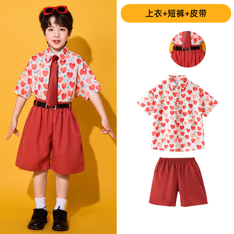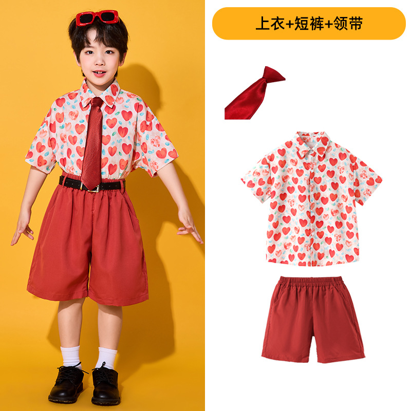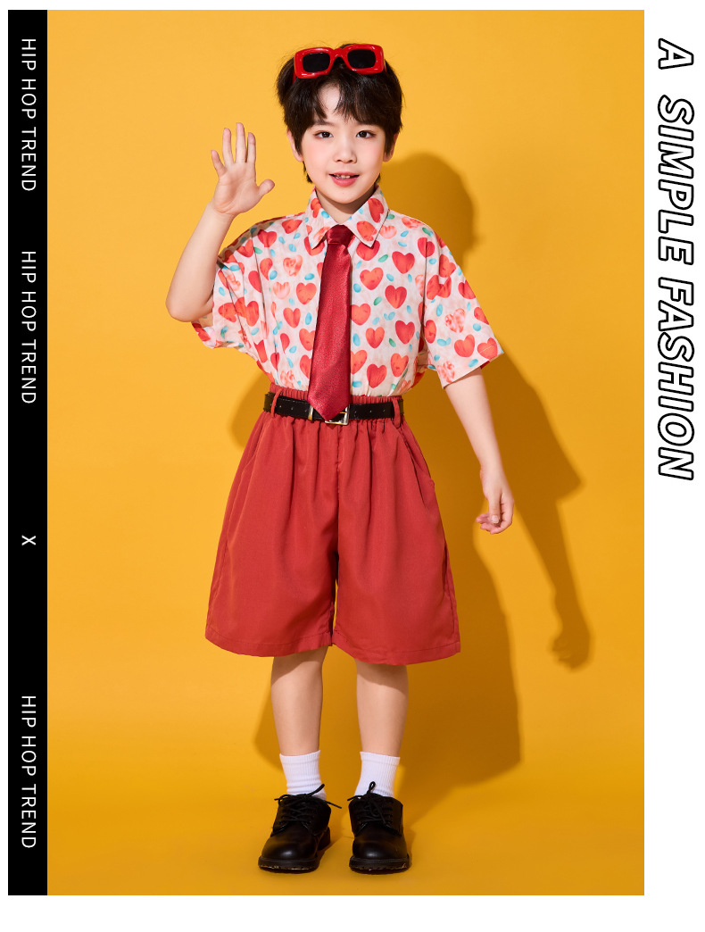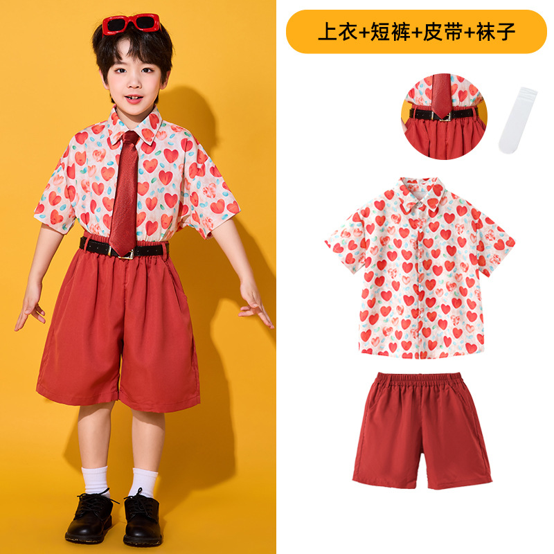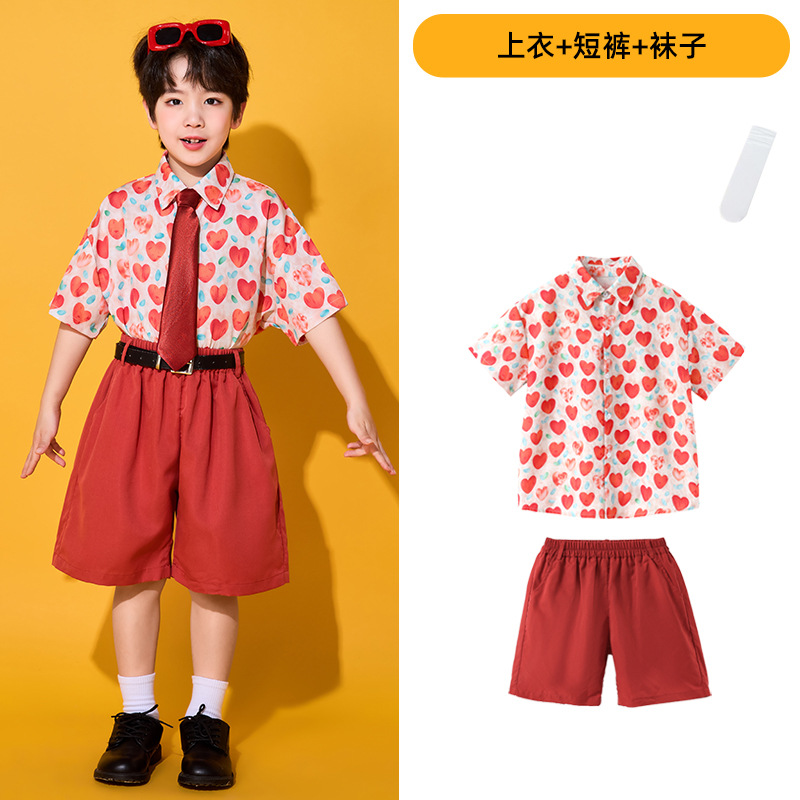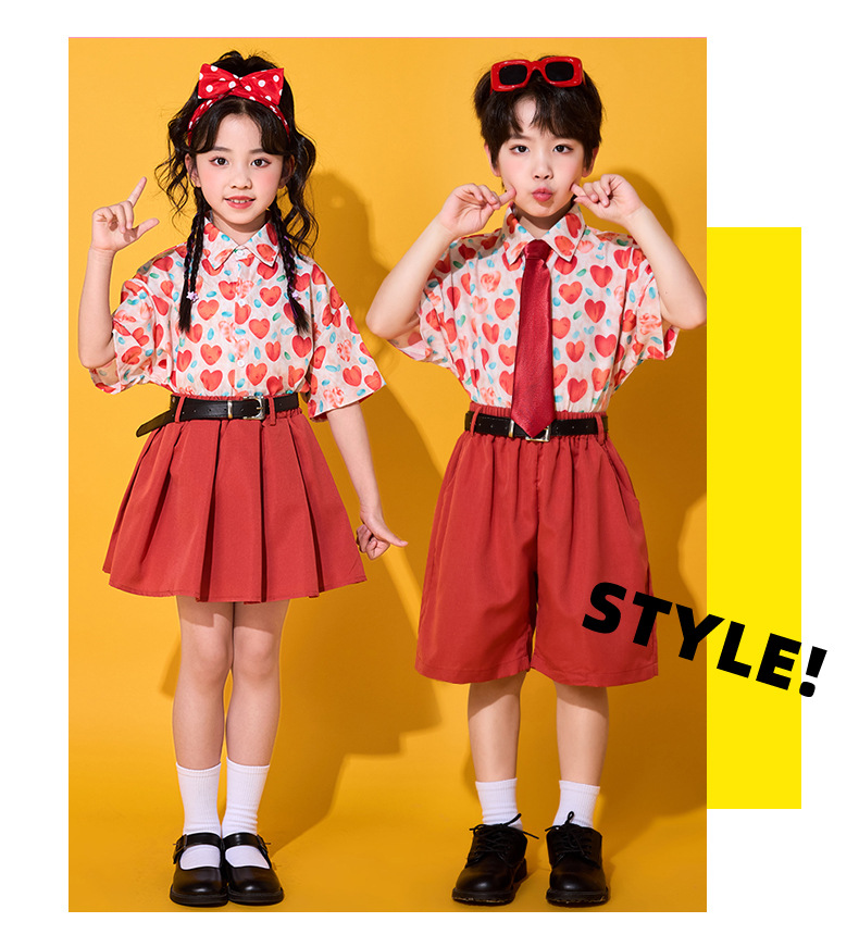 6 월 1 일 어린이를위한 어린이 치어 리더 세트, 유치원을위한 초등학생 스포츠 세트 레트로 사랑 홍콩 스타일 셔츠 세트스토어 가기